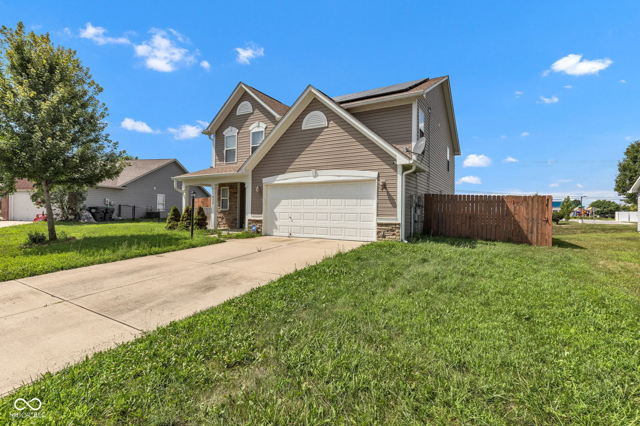 Nestled at 672 Rocky Meadow DR, GREENWOOD, IN, this single-family residence offers an inviting home, ready to move in and start creating lasting memories. The living room, complete with a fireplace, presents a warm and welcoming space where you can envision cozy evenings spent in comfort. Shaker cabinets and a kitchen peninsula define the kitchen, creating a functional and stylish area for culinary endeavors. The bathroom offers a refreshing start to each day, featuring a double vanity and a walk-in shower. The fenced backyard provides a private outdoor space, perfect for relaxation and recreation. With the added convenience of a laundry room, daily chores become a breeze. A porch adds to the home’s charm, providing a spot to enjoy the outdoors. This two-story home includes four bedrooms and two full bathrooms, along with a half bathroom, offering ample space for comfortable living within its 2426 square feet. Constructed in 2006, the residence sits on a 9148 square feet lot. It has solar panels This home offers a blend of comfort and convenience, making it a truly desirable property.