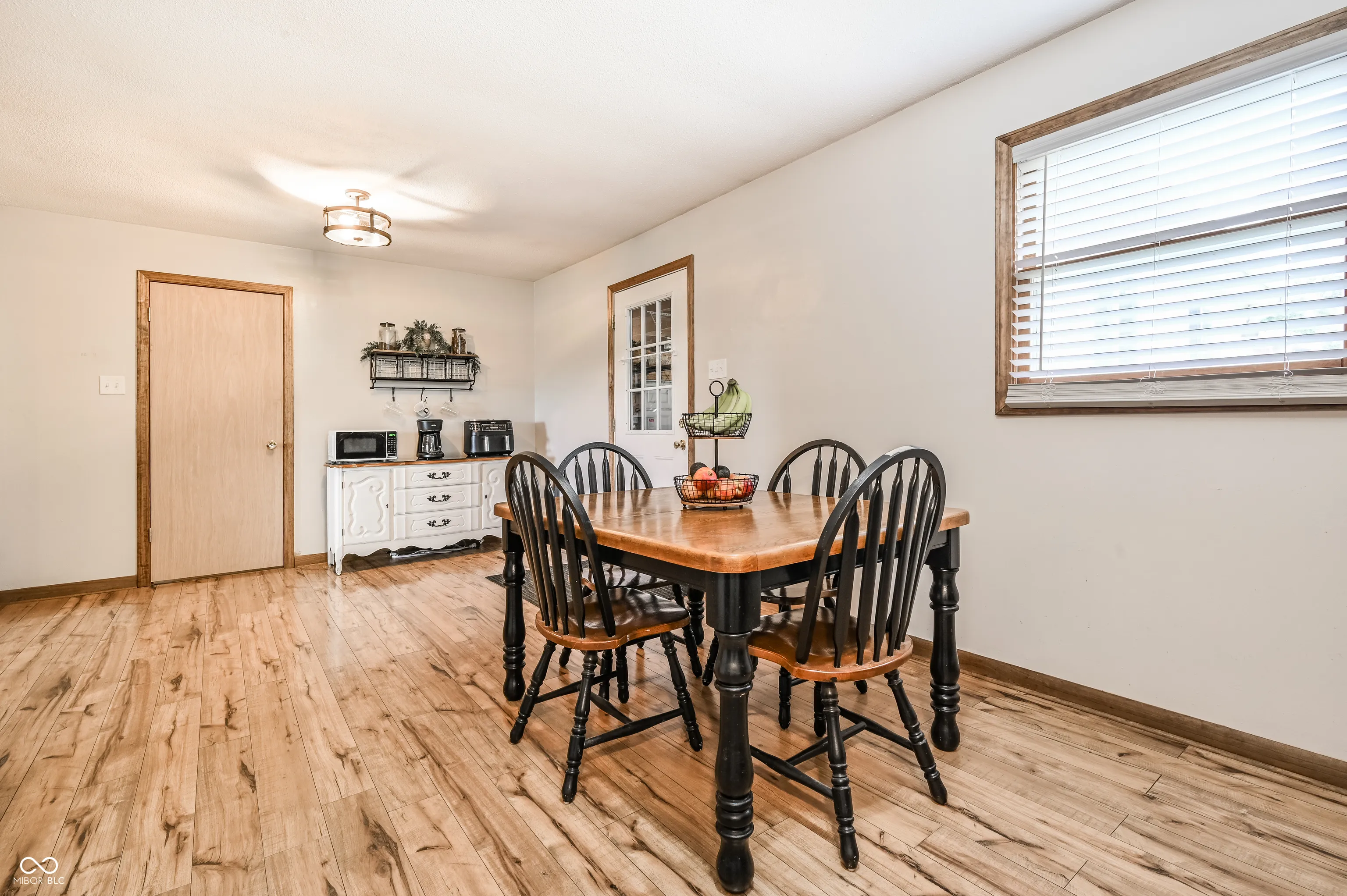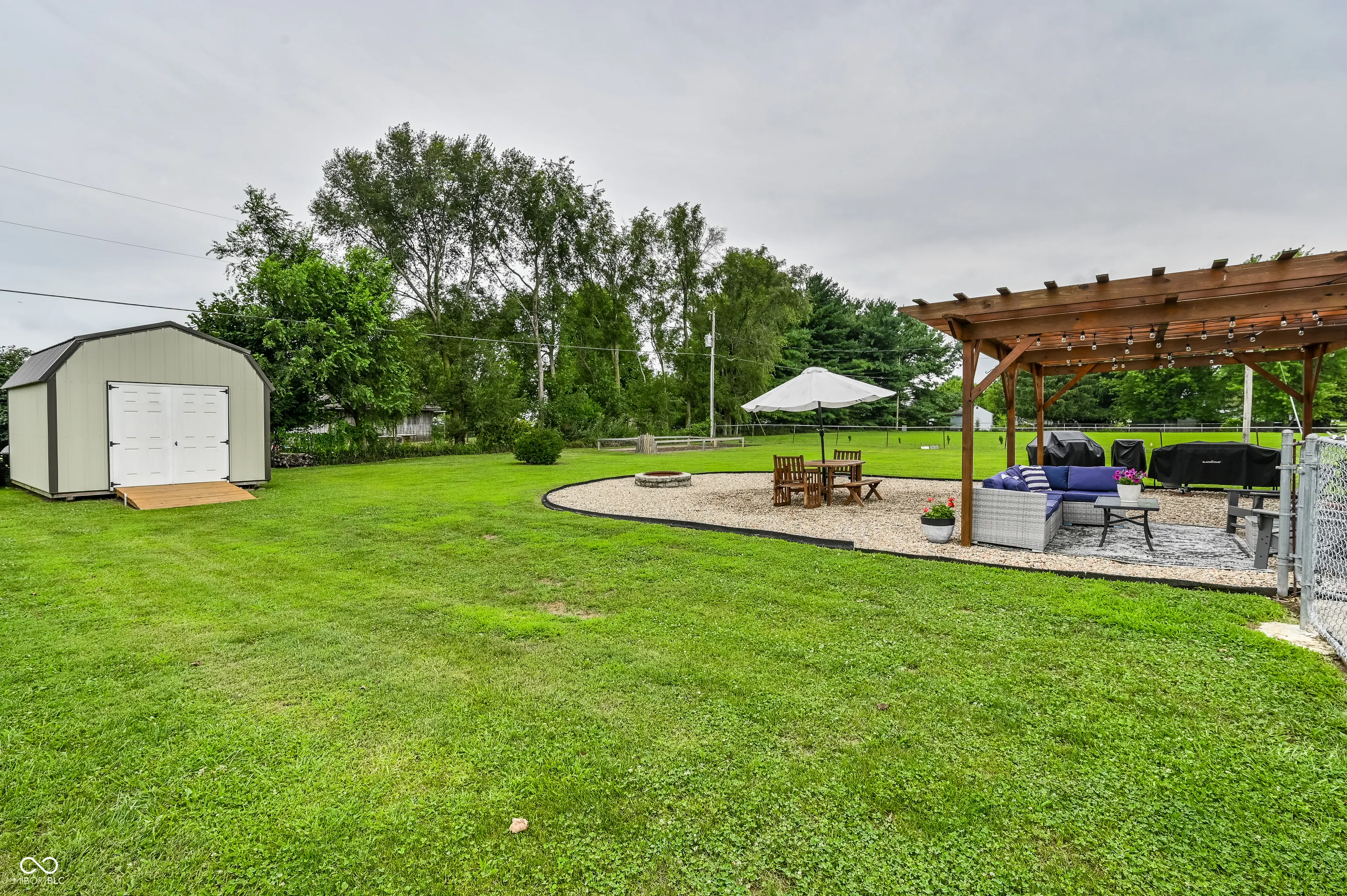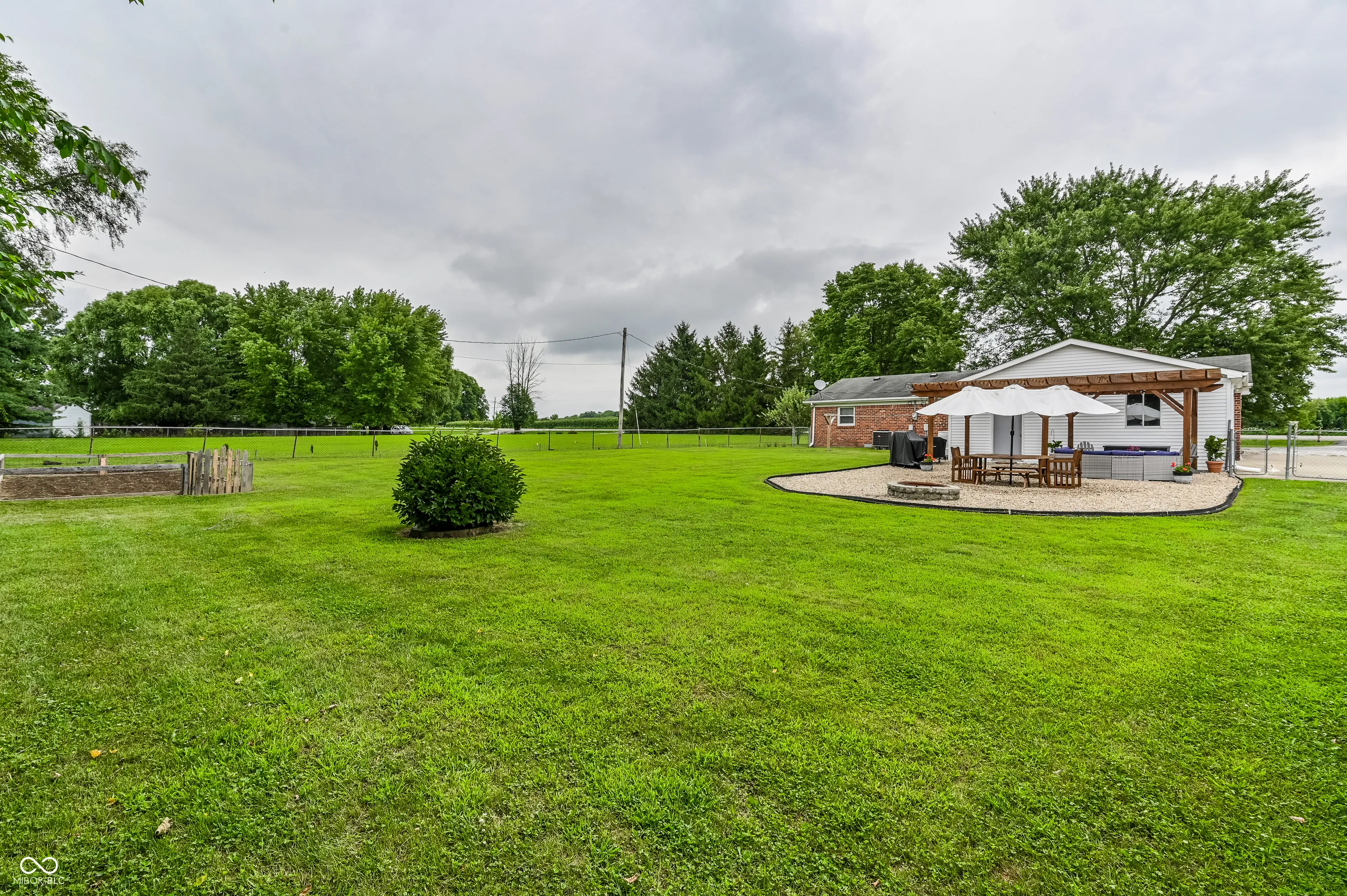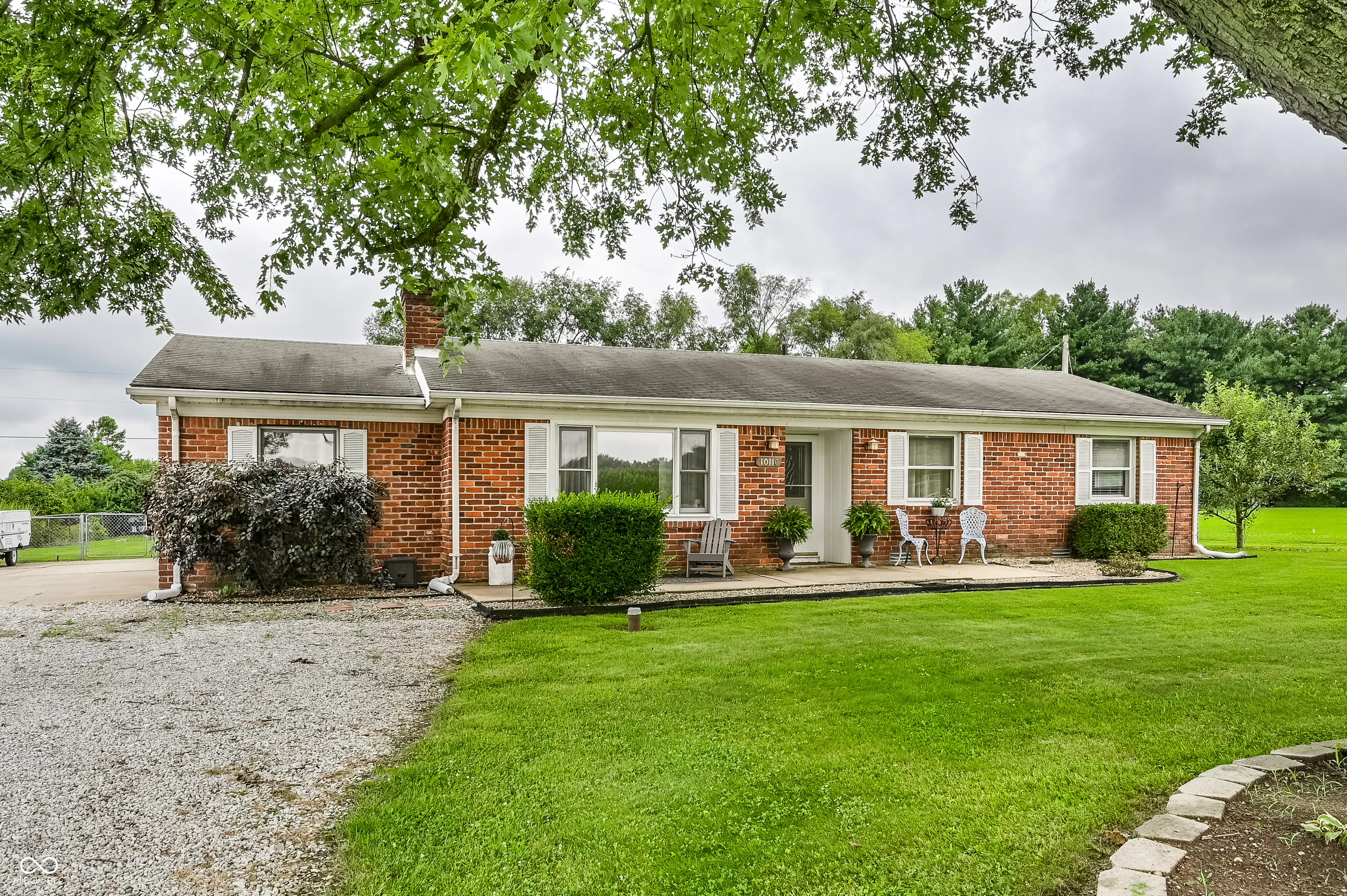 Enjoy some quiet country living in this terrific brick home with big side load garage (with lots of extra space for storage), mini barn and fenced backyard with an apple tree. Split floor plan. Brick fireplace is perfect for chilly evenings! Kitchen is open with lots of room for entertaining. All kitchen appliances + washer and dryer are included in the sale. Lots of updates over the last couple of years: Laminate flooring installed throughout the home in 2016, back patio & pergola added 2020, new shed added 2021, new garage door openers 2024 & 2025, both bathrooms updated 2021, HVAC replaced 2023, water softener replaced 2023, Septic pumped 2024, and roof replaced 2025. This home is move-in ready and easy to show!