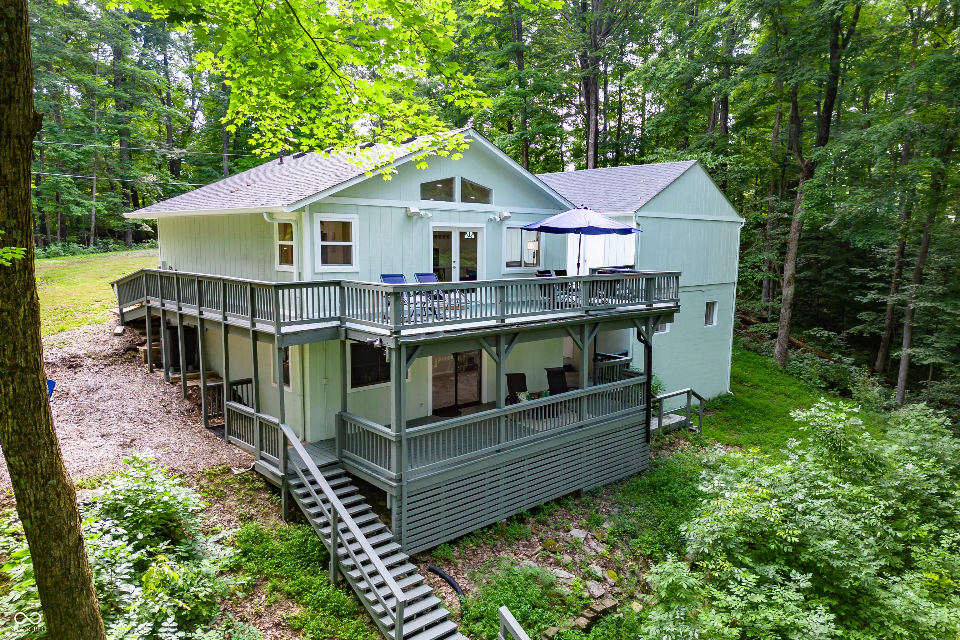 Welcome to 7028 Eel Drive, a beautifully updated lake home offering comfort, functionality, and the perfect backdrop for relaxed lake living. Nestled on nearly 2/3 of an acre across four private lots at the end of Eel Dr., this serene setting offers 185 feet of lakefront, a 35-foot dock, and a peaceful, tucked-away location. Inside, the main level welcomes you with vaulted whitewashed tongue-and-groove ceilings, new LVP flooring, and an open-concept layout. The KraftMaid kitchen shines with granite countertops, white cabinetry, stainless steel appliances, a large walk-in pantry with power, and newer LED lighting fixtures. The bright and inviting living area flows seamlessly into the space, enhanced by new windows and a built-in stereo system for easy entertaining. The primary bedroom features over 11×11 sq ft, a spacious closet, and a fully renovated bath with dual sinks and a 3×6 tiled shower. Downstairs, you’ll find a second bedroom, a generous 15×16+ family room with sliding doors to the covered lower deck, a wet bar area, and a second full bathroom. There’s also a utility room and a cleverly tucked King Murphy bed area that provides additional sleeping space without sacrificing room to relax. Major system updates include a newer roof, interior/exterior paint, heat pump HVAC and water heater, Aquasauna UV filtration system, R-60 attic insulation, and more-making this home truly move-in ready. Outside, enjoy nearly 900 sq. ft. of freshly painted decking across both levels, a fire pit area, and an extra-large two-car garage with a finished 672 sq. ft. floor, plus an additional 336 sq. ft. finished room below-ideal for storage, a workshop, or more functional space. Whether you’re looking for a year-round residence or the ultimate lake getaway, 7028 Eel Drive blends modern comfort with effortless lakeside enjoyment-lake living made easy.