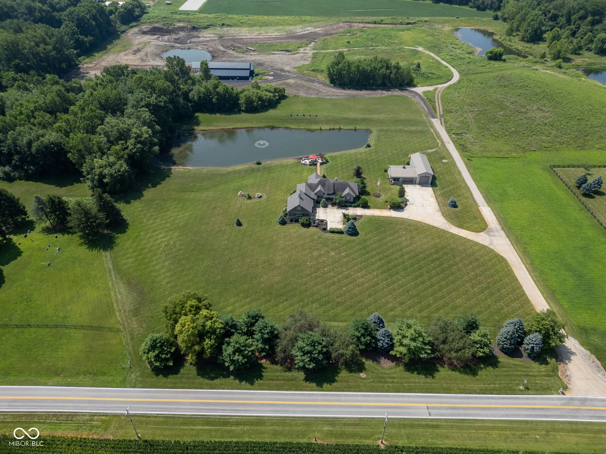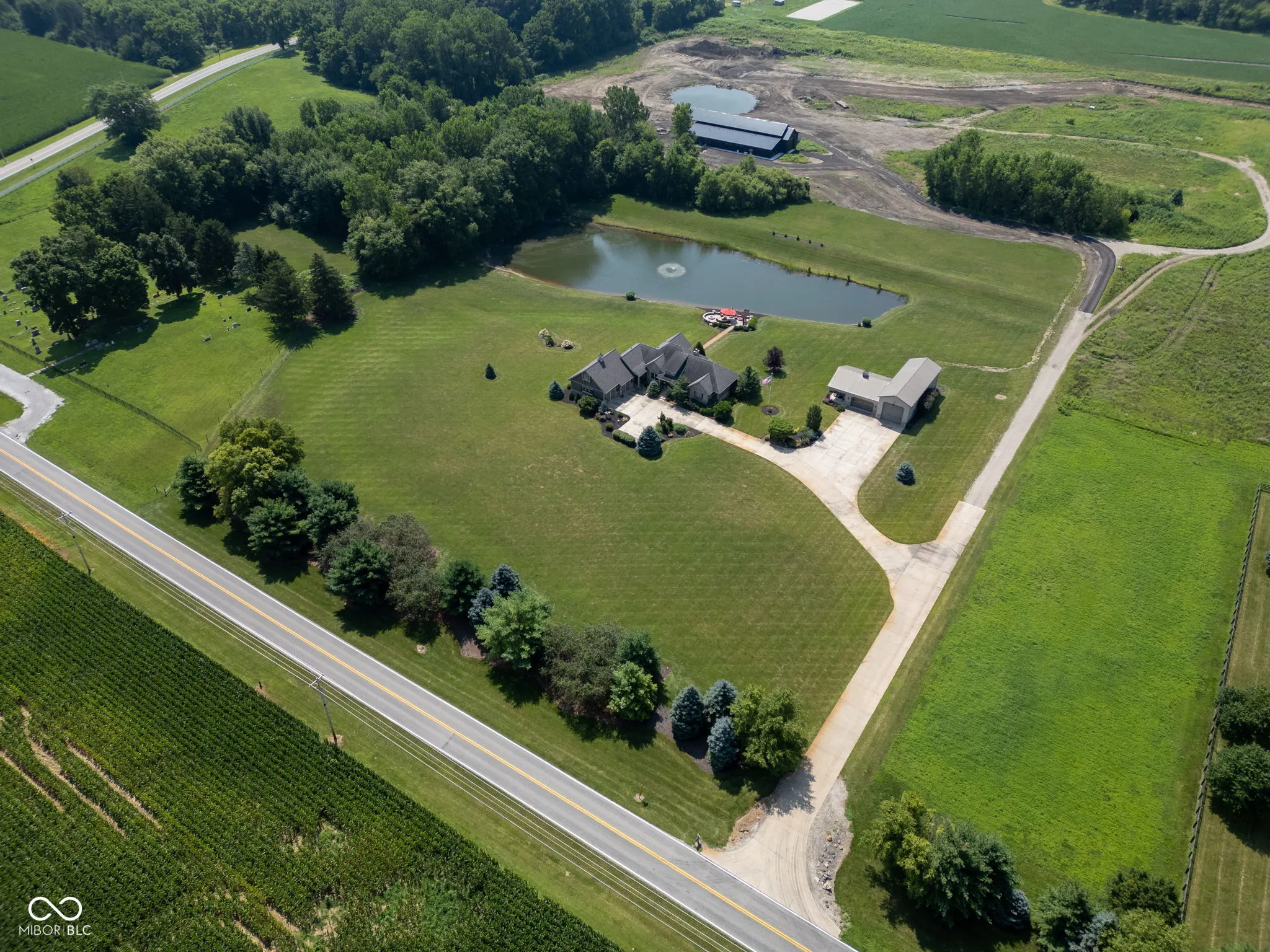 Luxury home built in 2008 and situated on a partially wooded 10 acre lot, offers a unique floor plan, amazing attention to detail, and more amenities than most. Custom ranch on a finished basement with over 4,000 finished sq ft., 3 bedrooms and 2.5 baths including an entire wing on the main floor dedicated to the primary bedroom for added privacy. Functionality is smooth with living room, kitchen, formal dining room, sunroom and laundry all on the same level. The split floor plan offers 2 bedrooms downstairs as well as a family room, a second kitchen, full bathroom, storage area and storm shelter. Hardwood floors through the living areas of the main floor, Travertine stone, beamed ceiling in living room, tray ceiling in master, gas fireplace, top-of-the-line custom kitchen cabinets, granite countertops, built-in grill, his/her vanities, walk-in tile shower, functional centerpiece in vast master closet, spacious laundry room, his/her coat closets in the back foyer, epoxy floors in both garage & pole barn and a generator just to highlight a few of the additional features. Outside you’ll find a stocked pond; a stunning stone patio w/ built-in fire pit and swing; pole barn has finished interior that offers 2 car garage, a 56′ RV bay, office area and tool storage; enormous driveway and a nice sized garden. With the well-manicured lawn, jaw-dropping landscape, spectacular views, plus all the outstanding comforts and conveniences this property offers, it’s an incredible family estate and the absolute best place to entertain and host gatherings. If you are looking for a place located between Purdue and Indy or maybe easy access to Brownsburg, Whitestown, Zionsville, Lebanon or Crawfordsville, this would be a great choice!! Don’t miss this once in a lifetime opportunity to own an original Downham Custom Home, especially one with all the bells and whistles. The only way to grasp the awe-inspiring, high end finishes and quality construction is to see it for yourself!