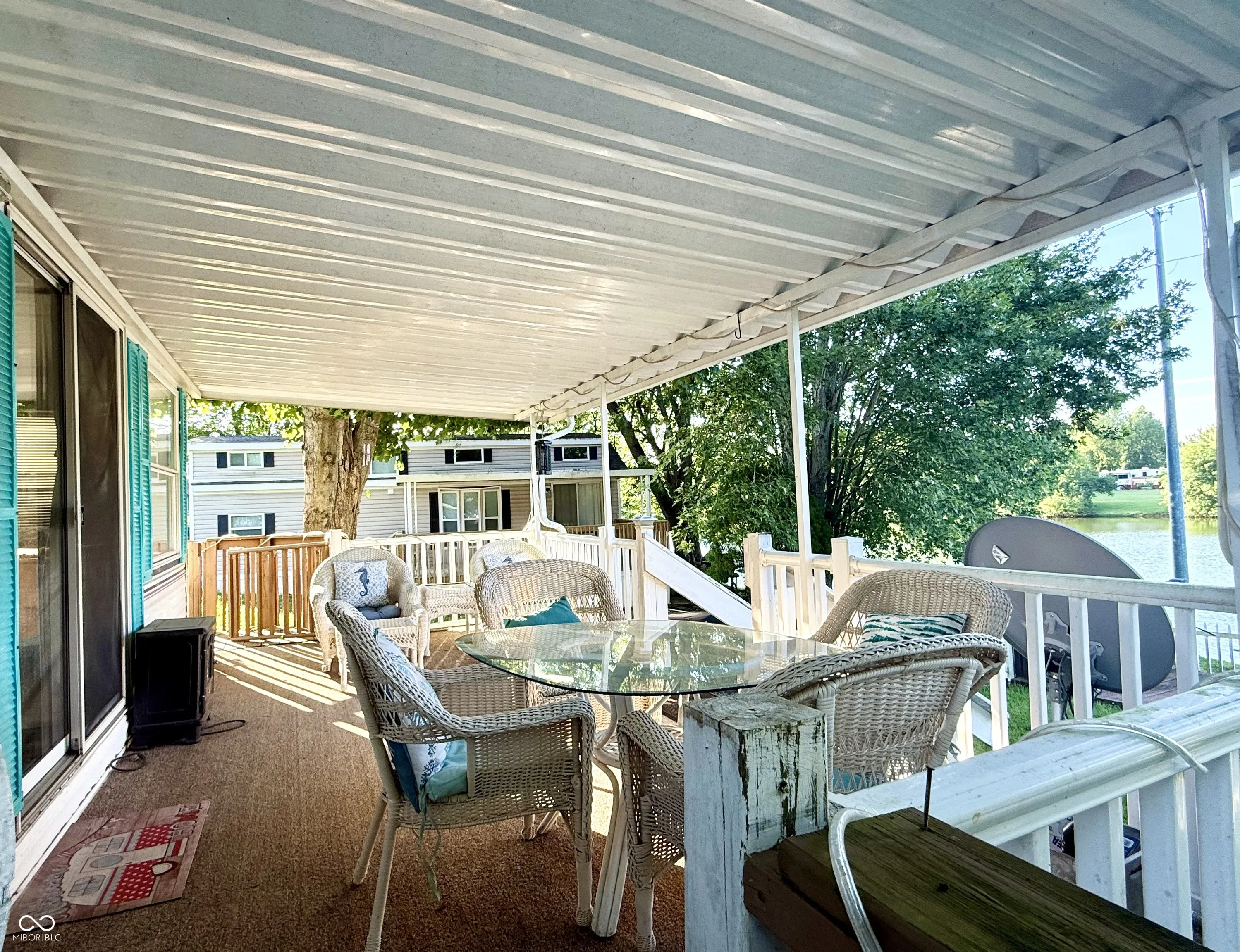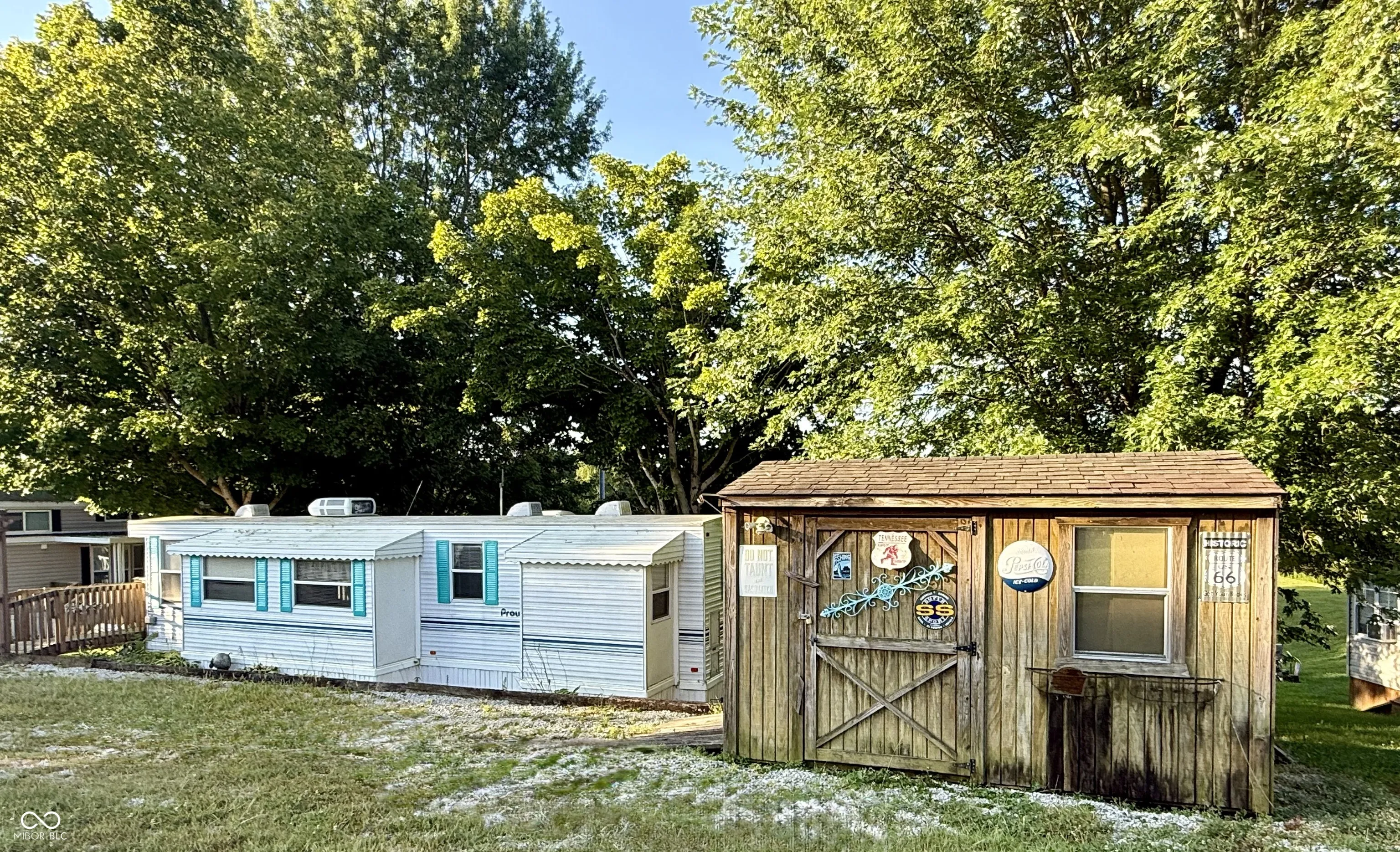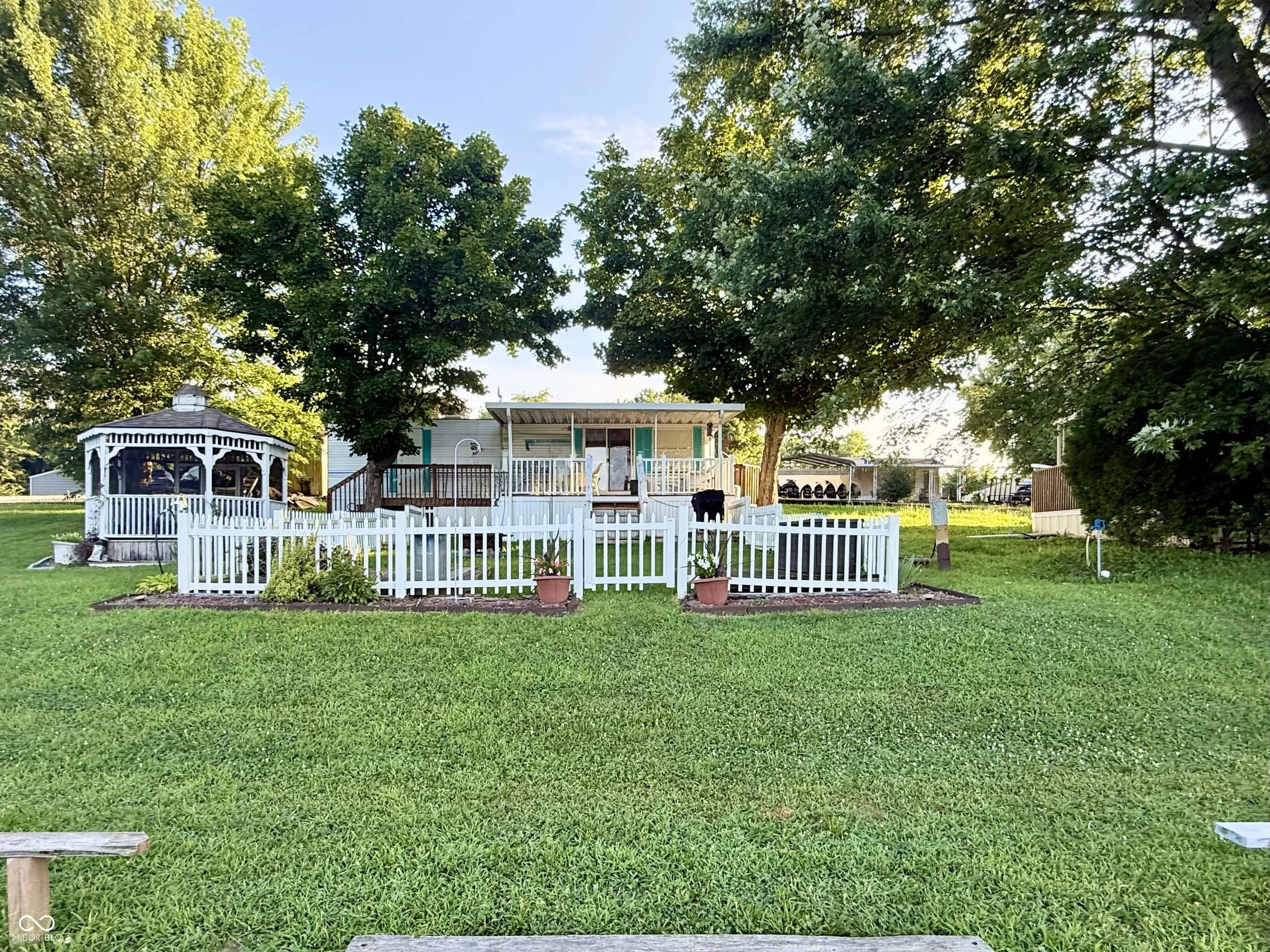 Tucked away in Heritage Hills, you will find lots 3-21 and 3-22. This seasonal home offers an inviting space that’s ready for you to move right in and start living the good life, or lake life if you prefer, as Brookville Lake is nearby. Step outside onto the cozy covered deck to simply unwind after a long day while taking in the water view and nature that surrounds you, or enjoy entertaining on the gazebo, fishing from the private dock, or enjoying water activities on the water. With so many inviting outside spaces, this property has so much to offer. The spacious double lot is enclosed with a white picket fence, adding that extra layer of safety for children or pets. A handy shed provides storage for all your outdoor essentials. This clean, cozy 418 square-foot manufactured home, built in 2001, features one bedroom and one full bathroom, a full kitchen and comfortable living room. Park amenities include a pool, tiki bar, snack bar, club house with game room, breakfast shop, and numerous events throughout the season that the whole family can enjoy! Past events have included live bands, car shows, fireworks and much more. This property presents a golden opportunity to embrace a lifestyle of fun, comfort, and convenience.