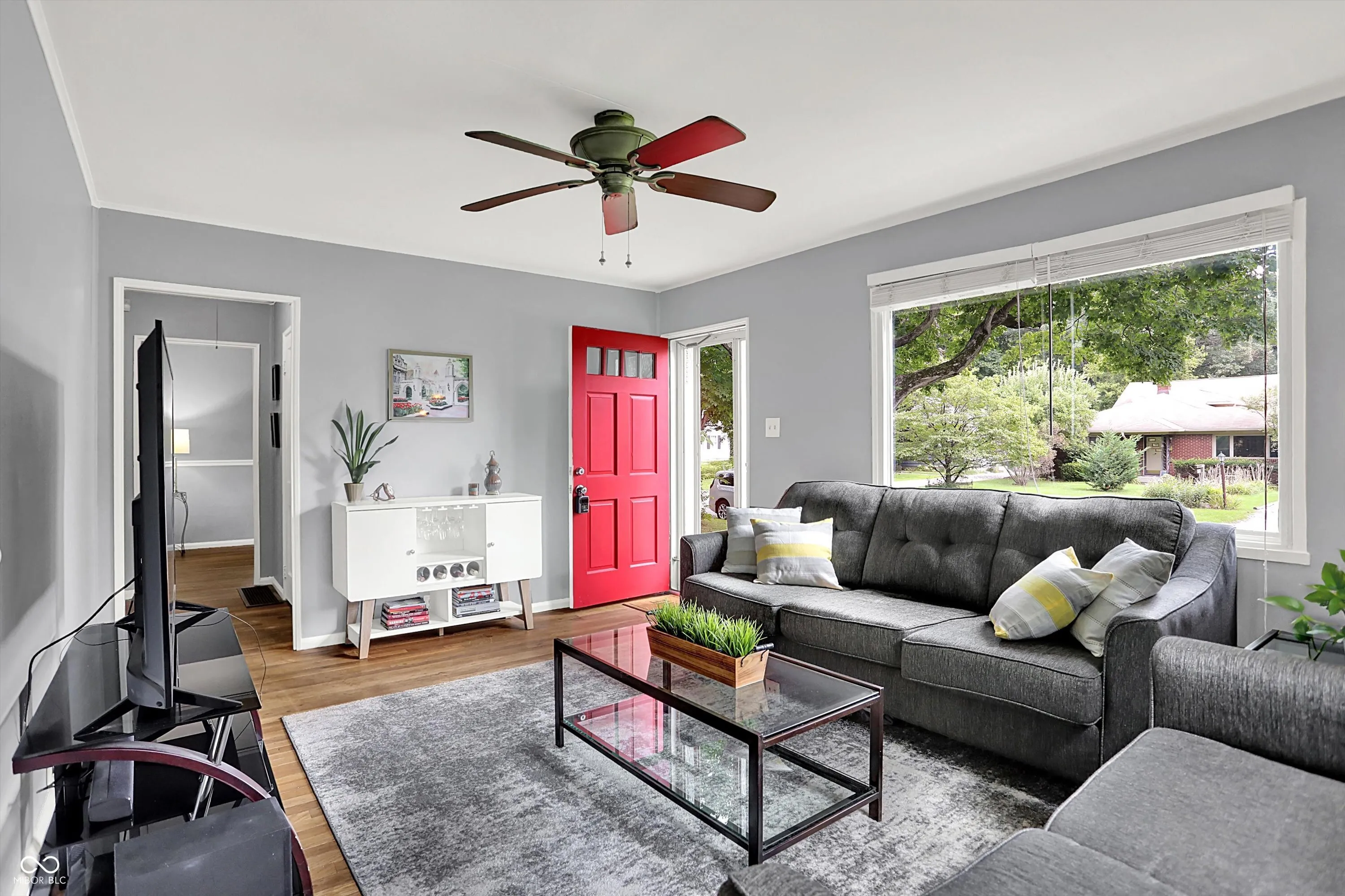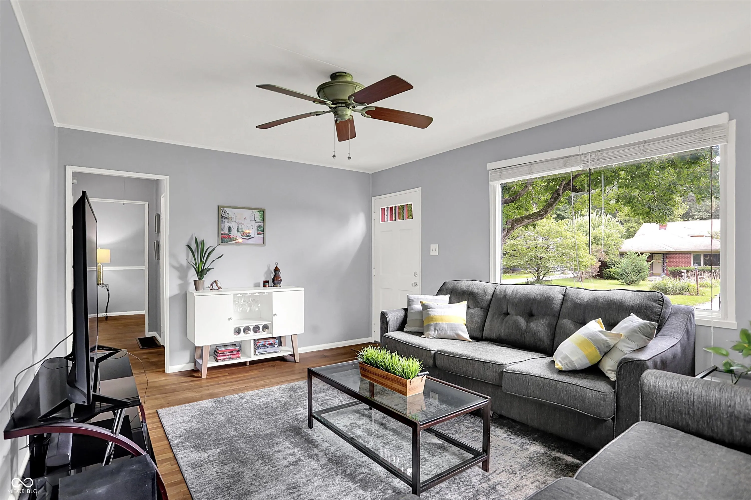 Great first-time Homebuyer or Investment opportunity! Tucked away on a quiet dead-end street, this 3 Bedroom Broad Ripple charmer sits on a private DOUBLE Lot (a rare find in BR) & features Hardwood Floors, fresh Paint throughout (including Doors & Woodwork), new A/C-2025 & newer Furnace-2019. 3rd Bedroom is perfect as a home office for those working from home. Large Basement offers endless possibilities for entertaining, workouts, game night, movie night (Projector & Screen included)…or ALL of the above. Outside enjoy a spacious Concrete Patio (2022), Firepit & a Fenced Backyard – perfect for entertaining Family & Friends and for our furry friends to romp & play. A 2-Car Detached Garage & extended Paved Driveway with Additional Parking adds convenience & security. Just a short walk to Broad Ripple Park & an easy stroll to all the shops, restaurants & energy of Broad Ripple Village including the popular Monon Trail. BONUS-an Electric Vehicle Charging Station included.