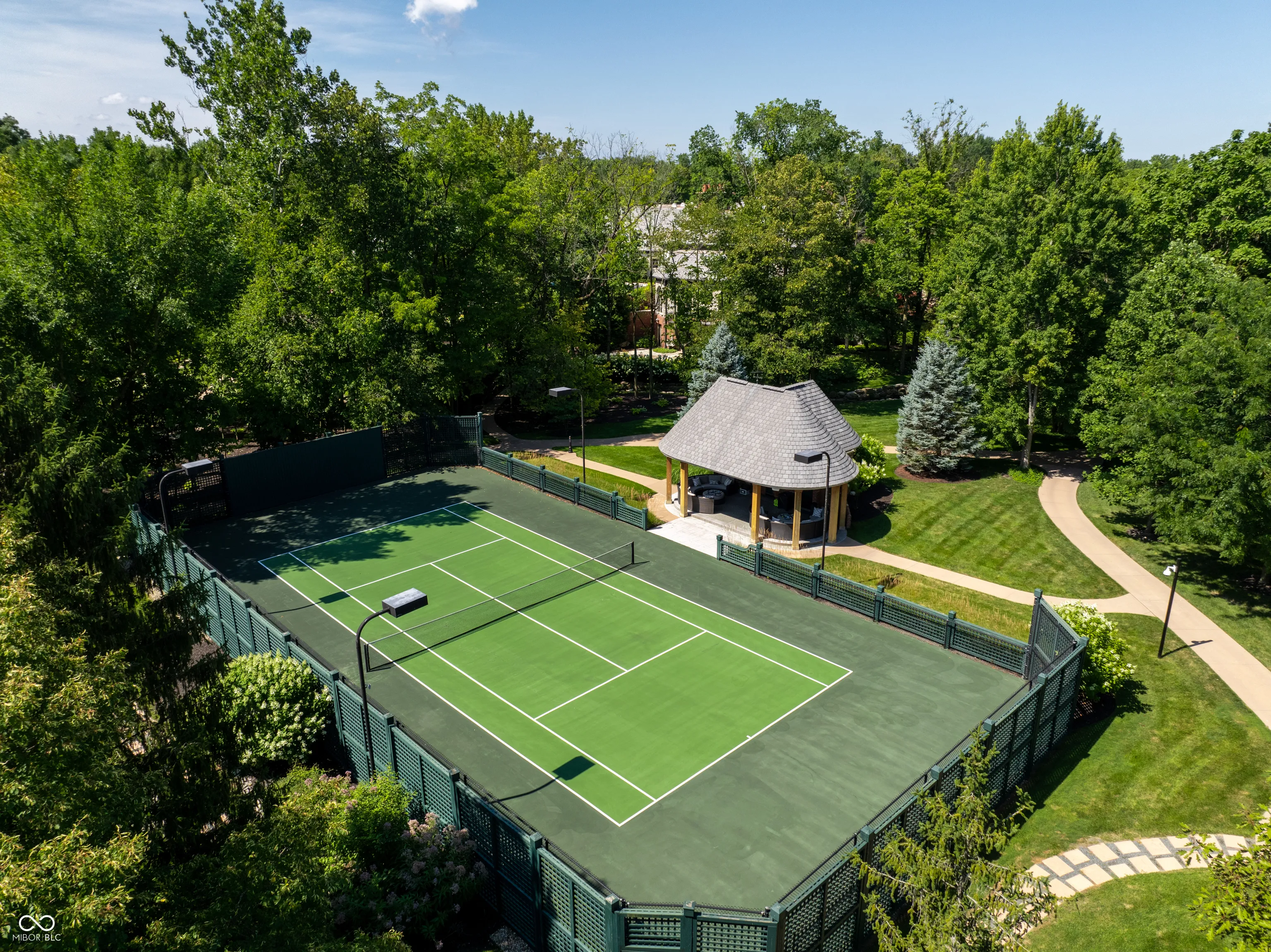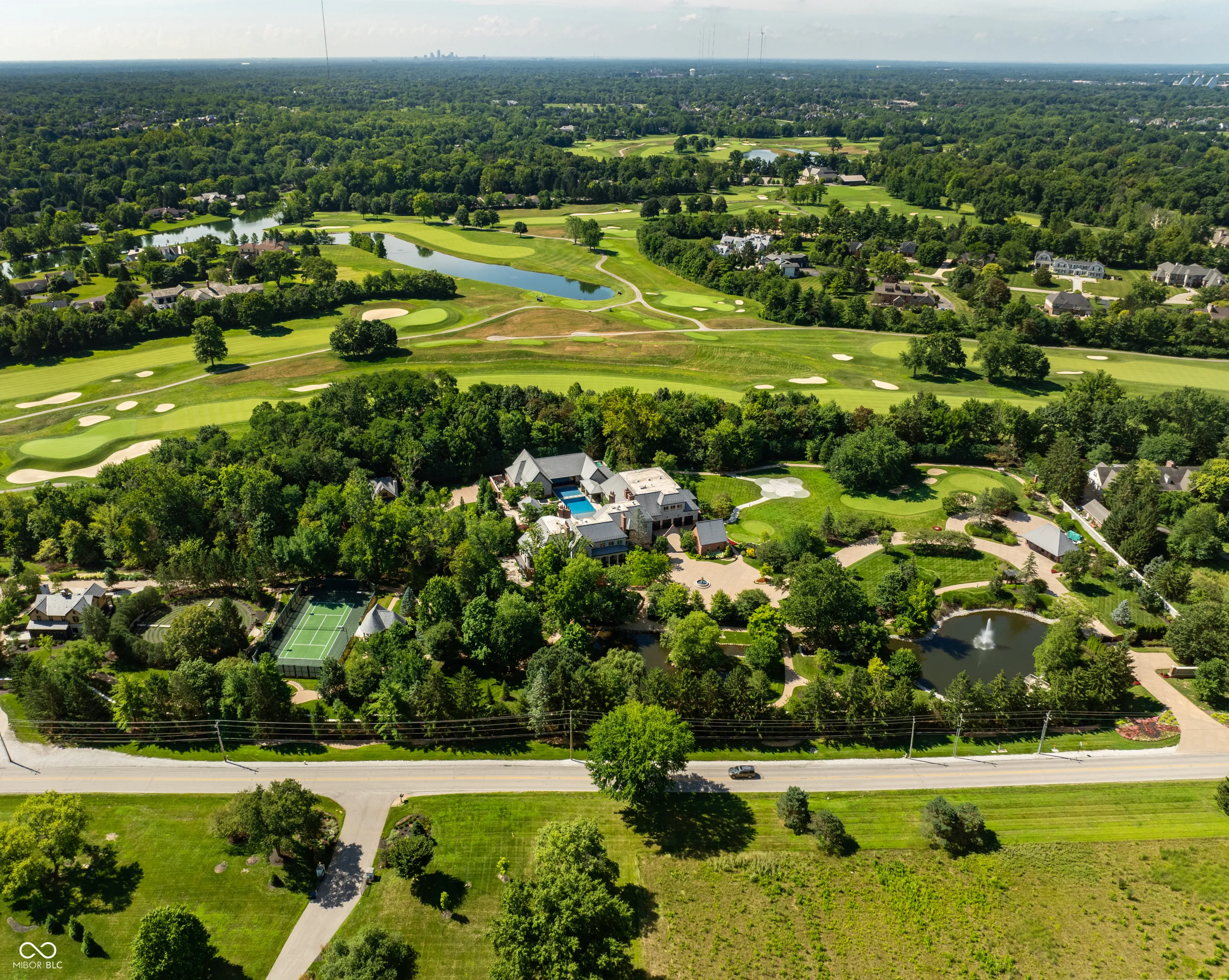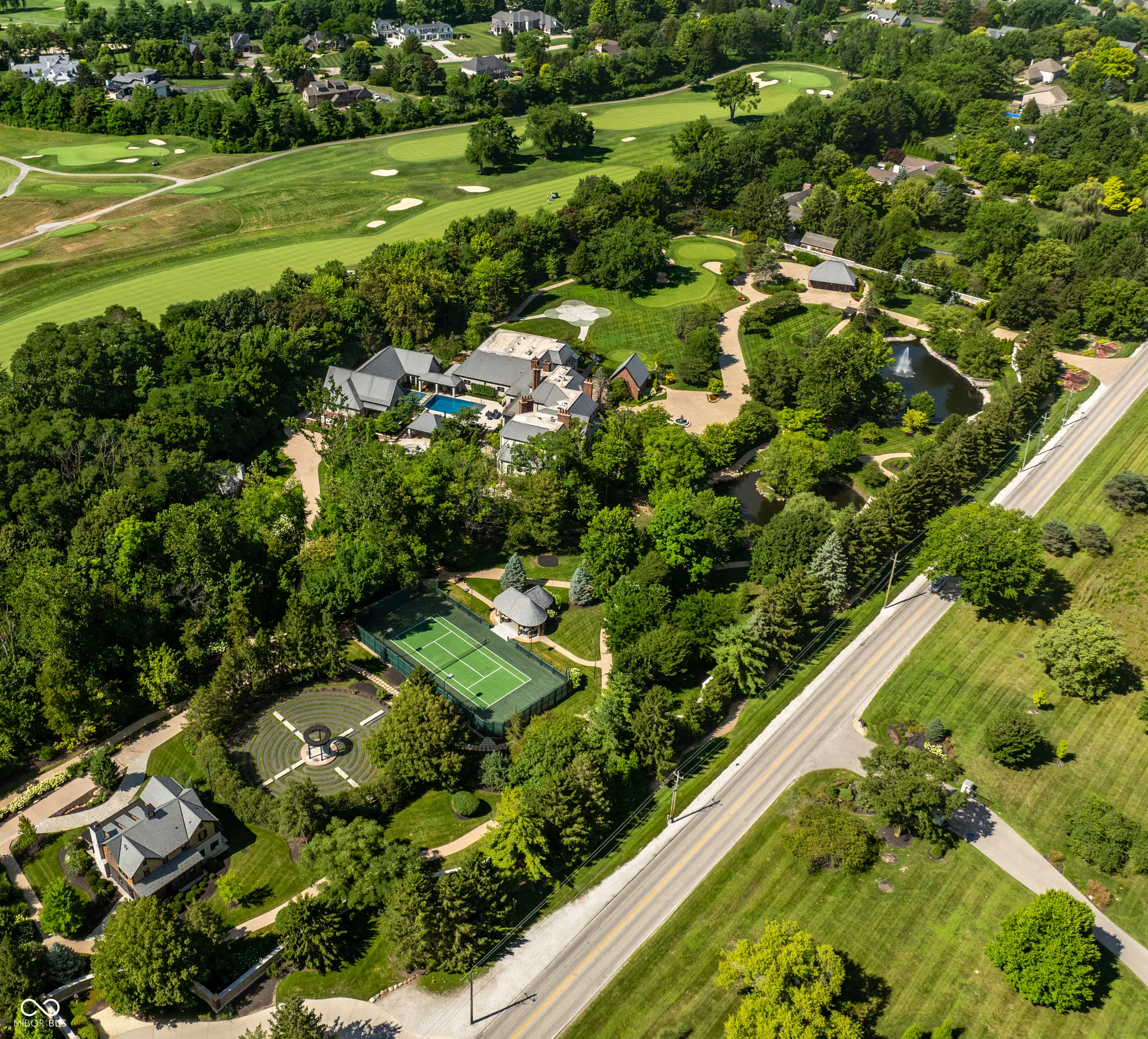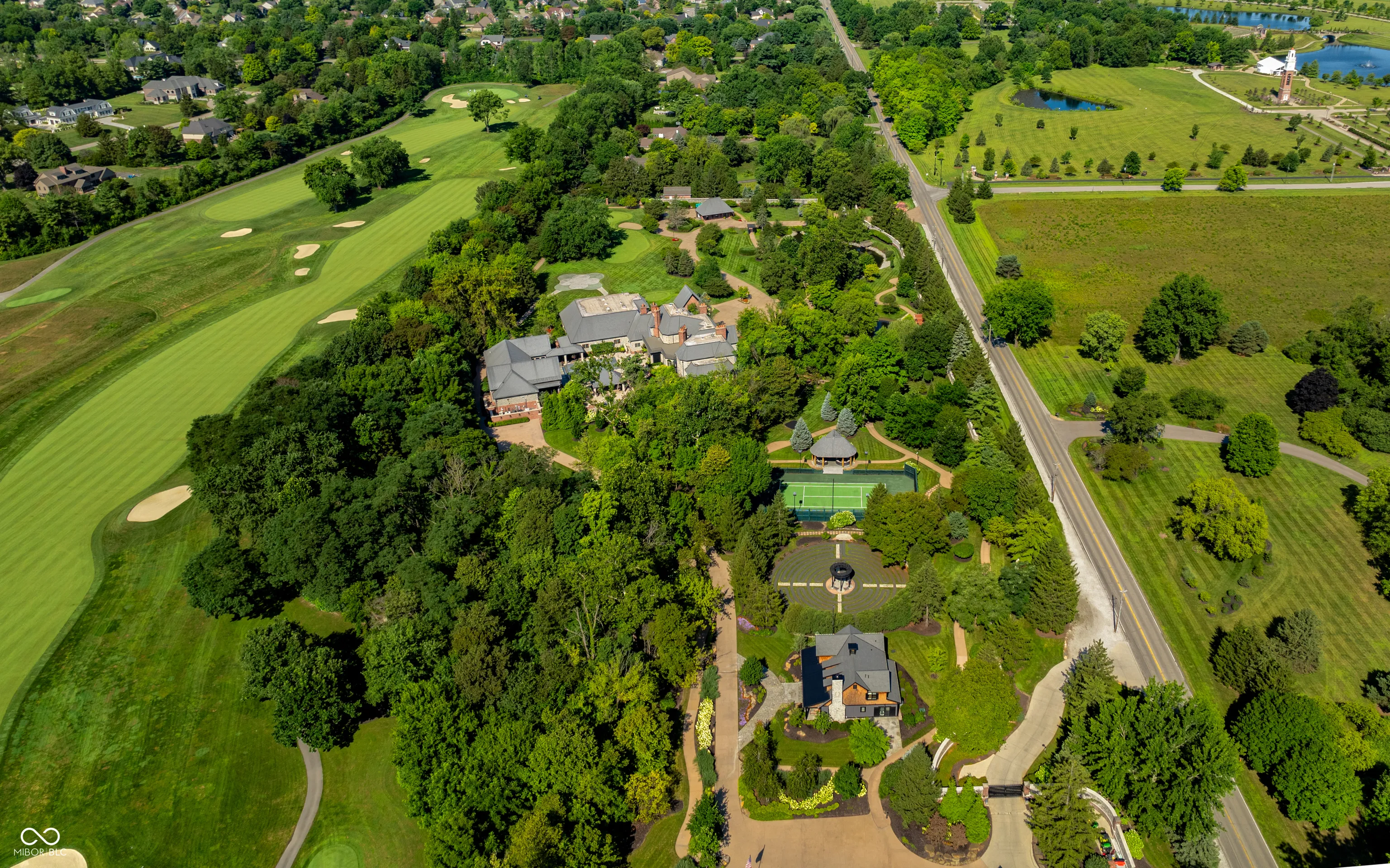 A World-Class Private Estate in the Heart of Carmel. Spanning 9.4 gated acres and bordering the prestigious Crooked Stick Golf Club – a nationally acclaimed Pete Dye-designed course known for hosting major championships – this world-class estate is one of Central Indiana’s most iconic and private residential offerings. Designed for both serenity and grandeur, the property includes a 24,000+ square foot main residence and two standalone guest homes – including The Cabin, a newly built 2,700 sq ft retreat with 3 bedrooms and 3.5 baths, and a second cottage offering 2 bedrooms and 2 bathrooms. From the gated guardhouse to the indoor recreation areas, the estate delivers an unmatched lifestyle of luxury, wellness, and entertainment. Notable features include: Two expansive primary suites (main and upper level) 7 fireplaces, Full nanny’s quarters with kitchen, Indoor pool pavilion, Full-size indoor basketball court, Home theater and speakeasy, Outdoor resort-style pool with an expansive entertaining space, Tennis court with viewing pavilion, Zen garden, Custom children’s play area, Private Par-3 golf hole 6-car garage at the main residence, plus 2-car garage at the gatehouse. Rarely does a property of this scale, provenance, and privacy become available – a true legacy estate in the heart of the Midwest.