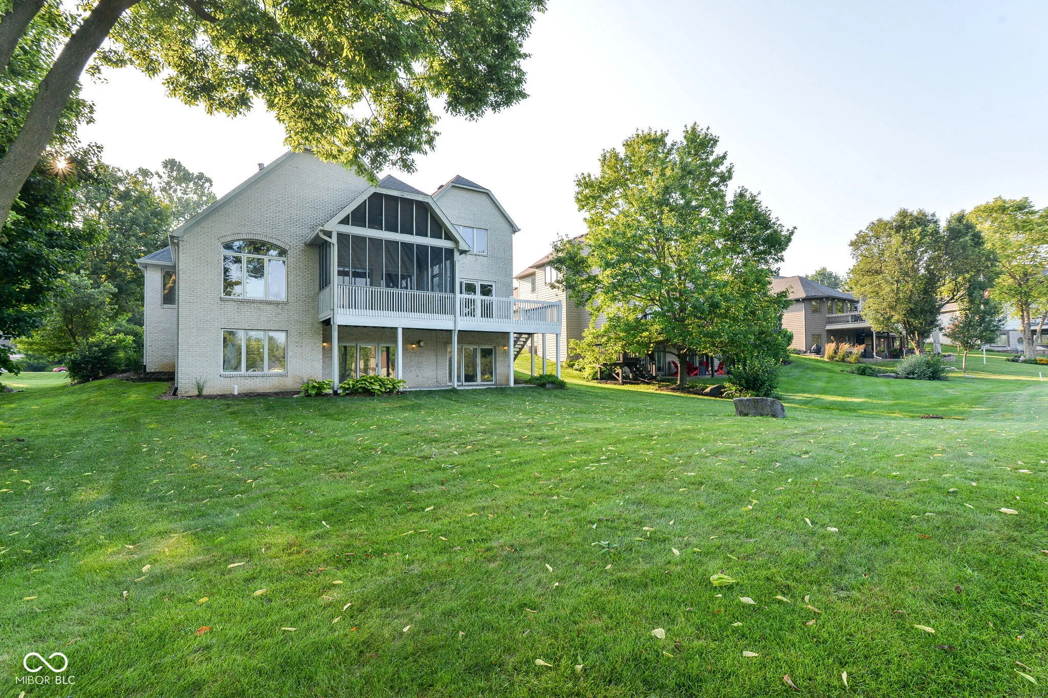 WOW!!! This custom built home is located in one of the most desirable neighborhoods in all of Lawrence. This home sits on one of the Fairways of the private Old Oakland Golf Club with breathtaking views. The home has a beautiful curb appeal and features 6 bedrooms, 4.5 baths, upper deck overlooking the golf course, screened in porch, main level primary bedroom, hardwood floors, full basement with wet bar, 3 car garage, and much more. The home needs some updating, but is a rare find in the desirable Oakland Hills At Geist neighborhood.