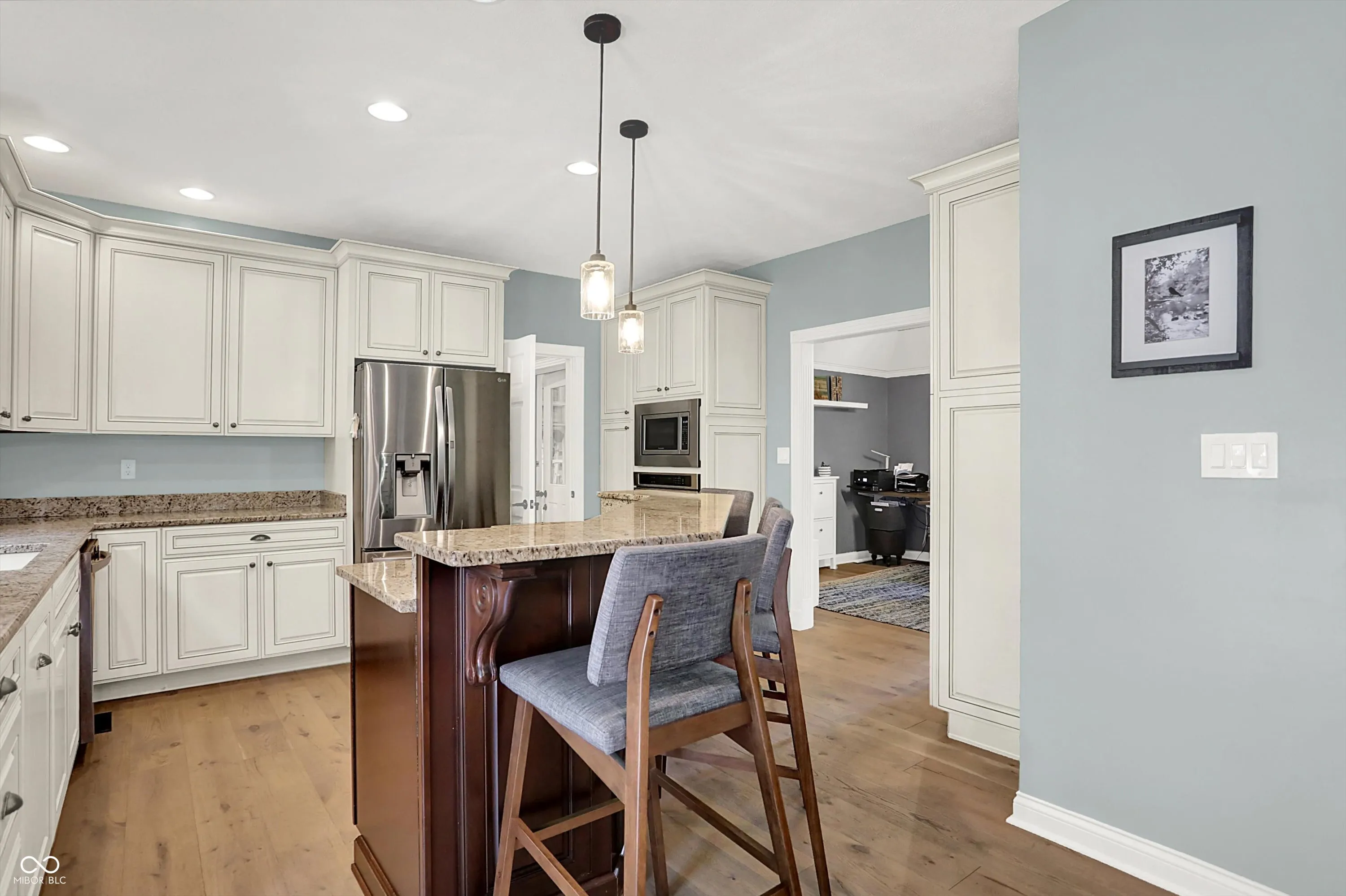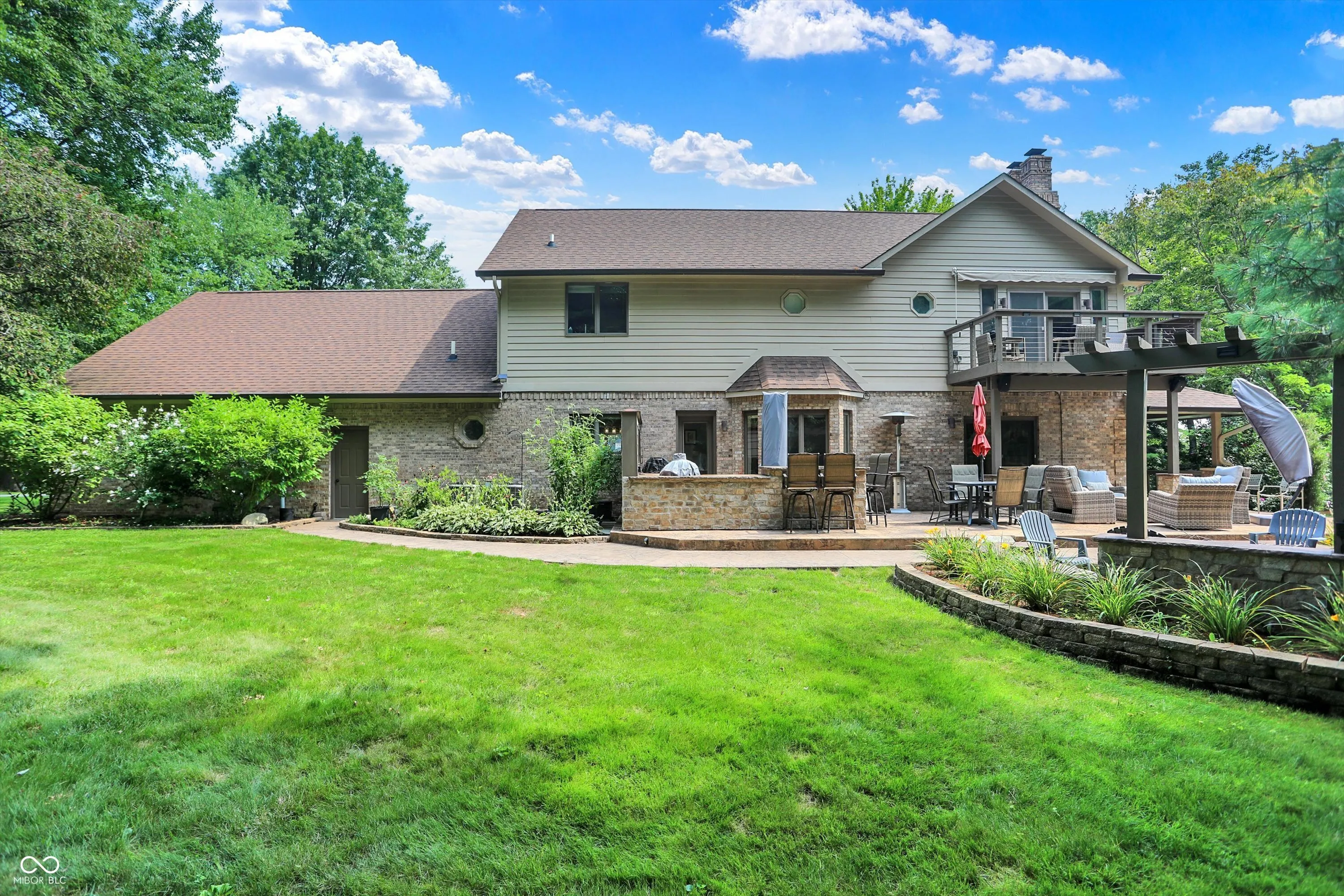 Experience luxury living in this impeccably crafted two-story brick masterpiece with resort-style amenities at your doorstep. Nestled in exclusive Foxcliff North Estates, enjoy world-class amenities including community pool, clubhouse, two scenic lakes for boating and kayaking, tennis courts, playground, and an 18-hole golf course. Gleaming engineered hardwood floors flow throughout the main level, leading to a gourmet kitchen featuring floor-to-ceiling cabinetry, granite countertops, and a spacious island perfect for casual dining. The second floor offers three generous bedrooms, highlighted by a luxurious primary suite with sitting area, private balcony, and spa-inspired bathroom complete with dual vanities, soaking tub, walk-in shower, and expansive closet. The lower level entertainment haven features built-in projection theater, pool table, wet bar, and fitness room. Outside, enjoy a stamped concrete patio with outdoor kitchen, custom fire pit, and charming wrap-around porch. Additional highlights include a custom three-car garage with epoxy floors and upper-level storage. This turnkey estate offers the pinnacle of luxury living, meticulously updated and truly move-in perfect.