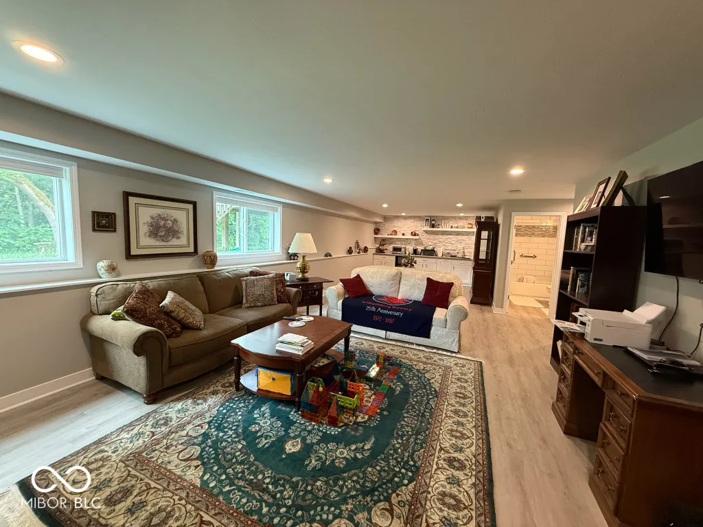 Desirable Fox Hollow neighborhood. Finished basement: kitchenette, laundry hook-up, 1bed/1bath, custom walk-in closet, above-ground windows for natural light and peaceful views. Main level: open concept kitchen/living room, center island, upgraded dishwasher and refrigerator, formal dining room/office space, cozy fireplace, 1bed/1.5bath. Garage w/2nd refrigerator, generous custom wall and ceiling storage. Second level: 4bed/2bath, walk-in closets, loft, laundry room. Unique property features: front yard sunrise, pond view, backyard sunsets, no rear neighbors, driveway/sidewalk/deck treated w/25yr sealants. Space perfect for everyone and multi-generational living – will be move-in ready for you! Select furnishings negotiable.