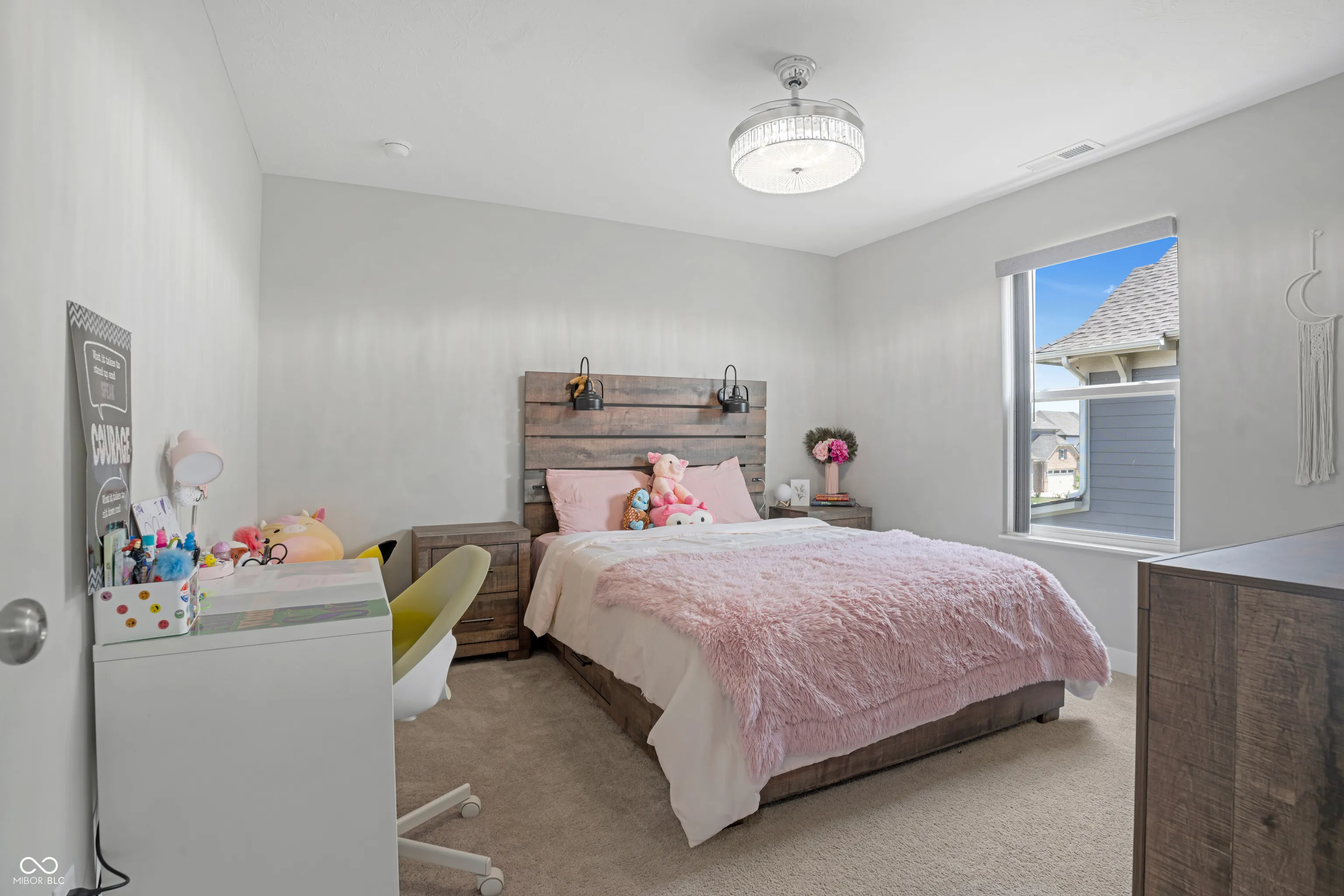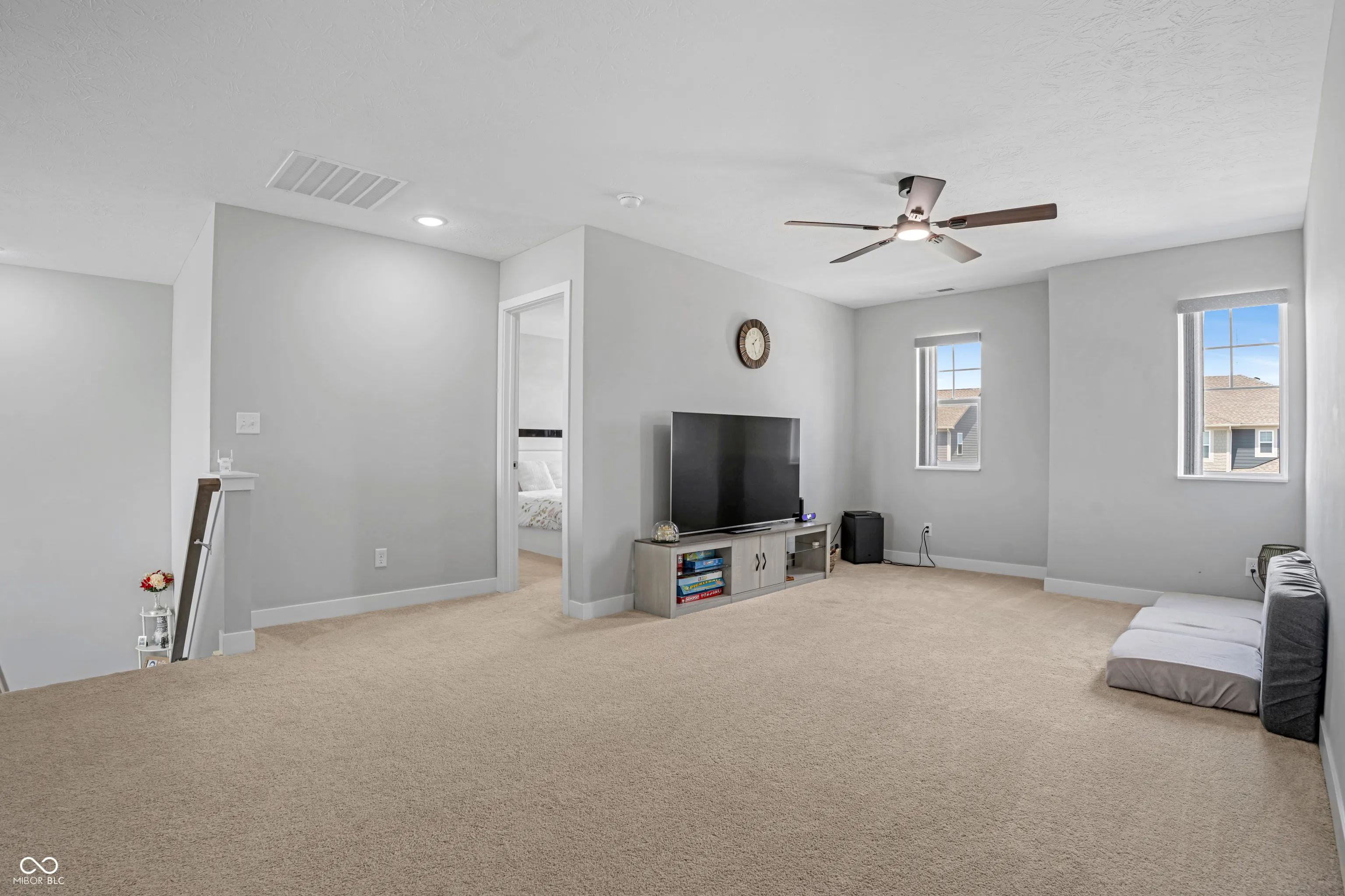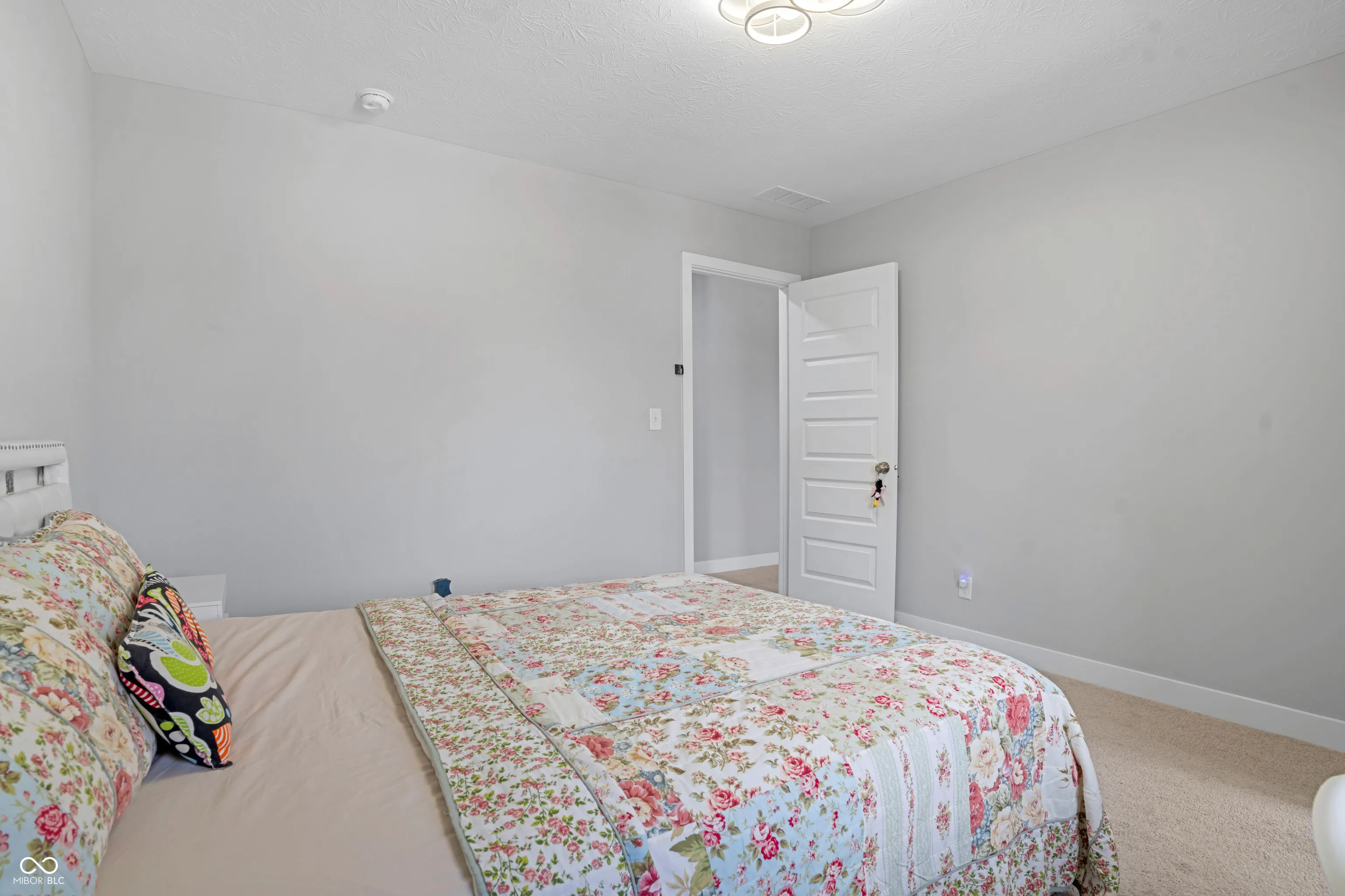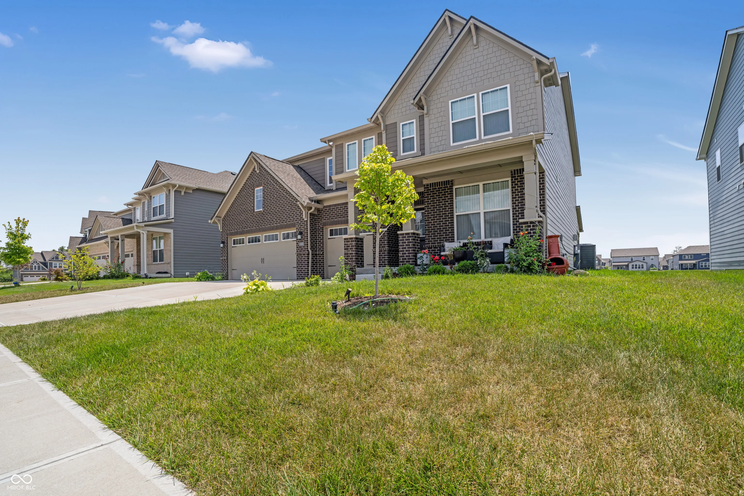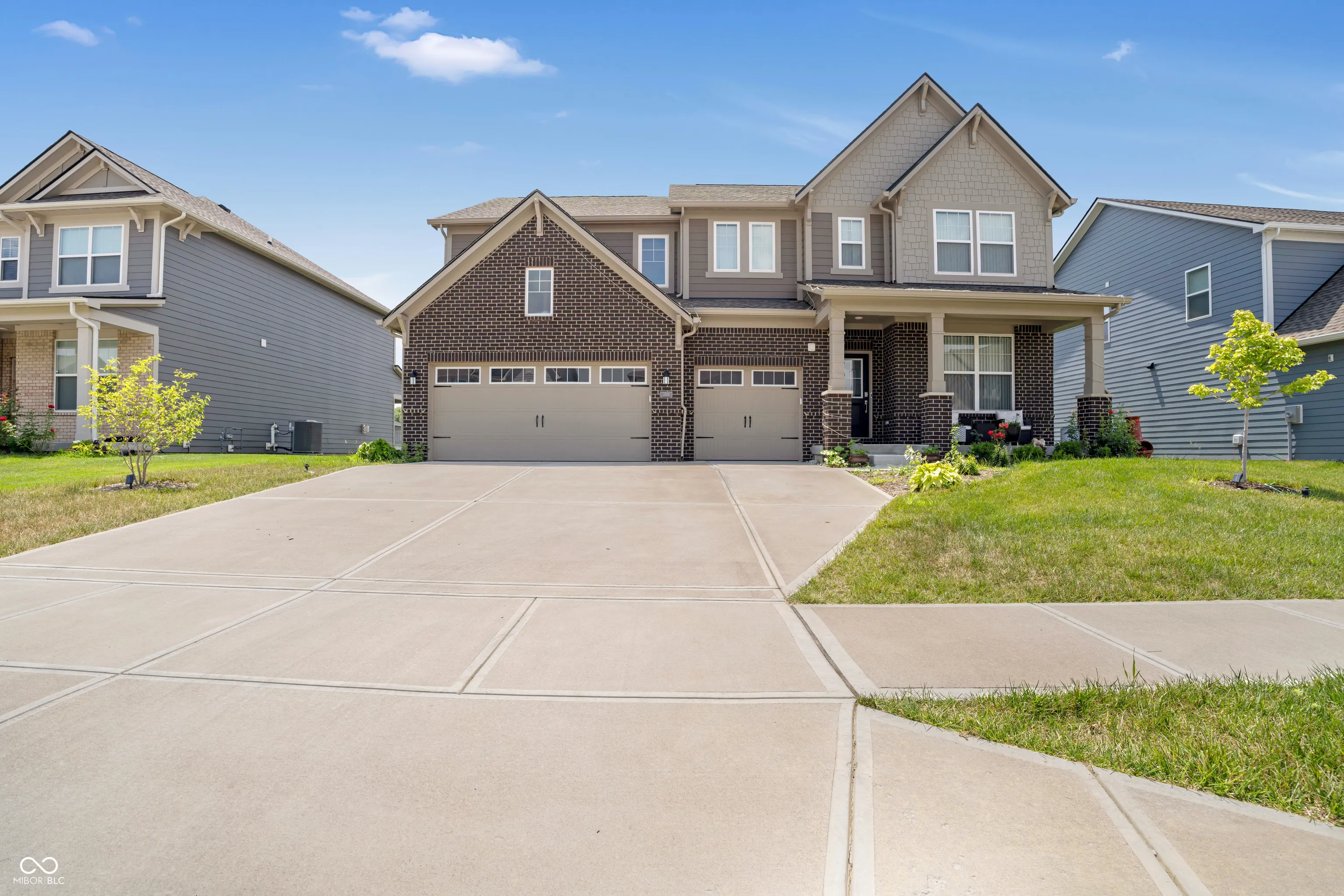 Welcome home to this stunning 5-bedroom, 3 1/2-bath residence in Bargersville! This exceptional property is situated on a premium lot and no homes behind it! The backyard also includes a covered patio perfect for outdoor dining and entertaining. The living room serves as an inviting haven, featuring a fireplace to gather around, a high ceiling that enhances the sense of spaciousness, and a vaulted ceiling with beamed ceiling details that add architectural interest. The kitchen stands ready for culinary exploration, complete with a backsplash, a double oven, a large kitchen island, a wall chimney range hood, shaker cabinets,. Enjoy your morning coffee in the Morning Room, filled with extra windows for plenty of natural light. Downstairs, your guests will appreciate their own private suite featuring a full bath. You can work comfortably in the den/office, which has French doors for privacy while still keeping an open feel. Laundry becomes a breeze with the upstairs laundry room, conveniently located near the bedrooms and with additional storage cabinets and a sink. The primary suite includes a spacious walk-in closet and an expansive shower.