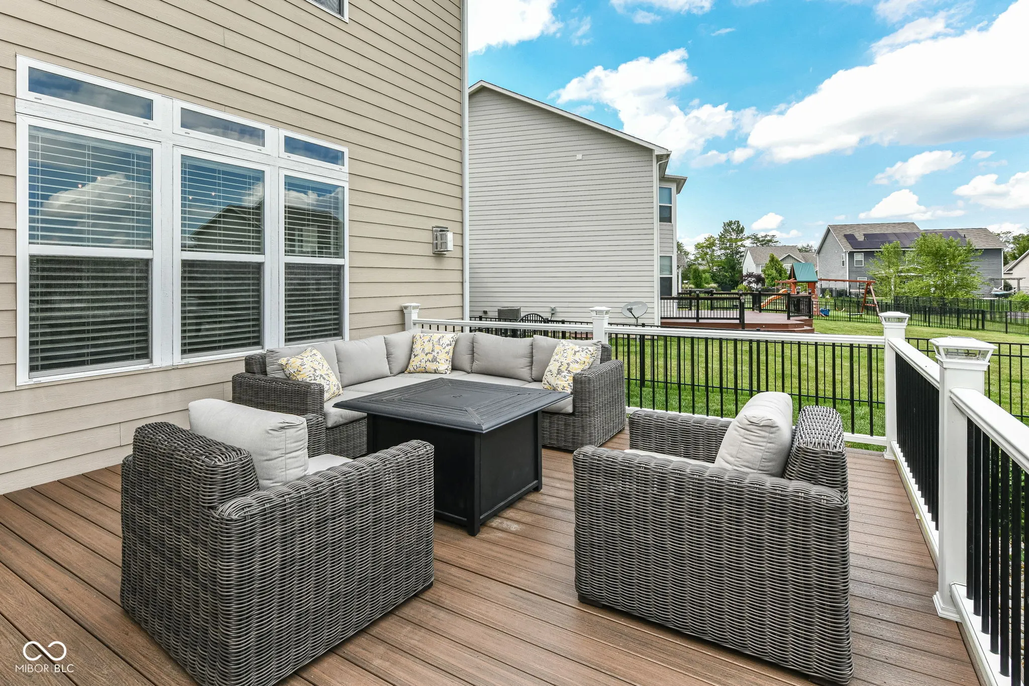 Welcome home to Lake Forest! Step inside this 4-bedroom, 2.5-bath home to soaring 10-foot ceilings in the great room, anchored by a stunning gas direct-vent fireplace. The open-concept layout flows seamlessly into the designer kitchen, showcasing crisp white cabinetry, quartz countertops, stainless steel appliances, a walk-in pantry with custom storage, and a spacious center island with seating. A dedicated planning center adds both form and function to the heart of the home. Upstairs, the indulgent primary suite features a tray ceiling, dual vanities, a glass-enclosed shower, and a custom walk-in closet. Three additional bedrooms, a versatile loft, and an ultra-convenient laundry room offer space and flexibility for modern living. Custom upgrades abound: extensive crown molding, high-end pantry and closet systems, built-in cabinetry in the upper-level sitting room, and a designer-updated powder room. Step outside to a premium Trex deck overlooking your private backyard oasis-one of the largest and most usable yards in the neighborhood. A full unfinished basement with egress windows awaits your vision for future expansion, and a spacious 3-car garage completes this exceptional offering. You can’t beat this location with easy access to nearby amenities and US31!
