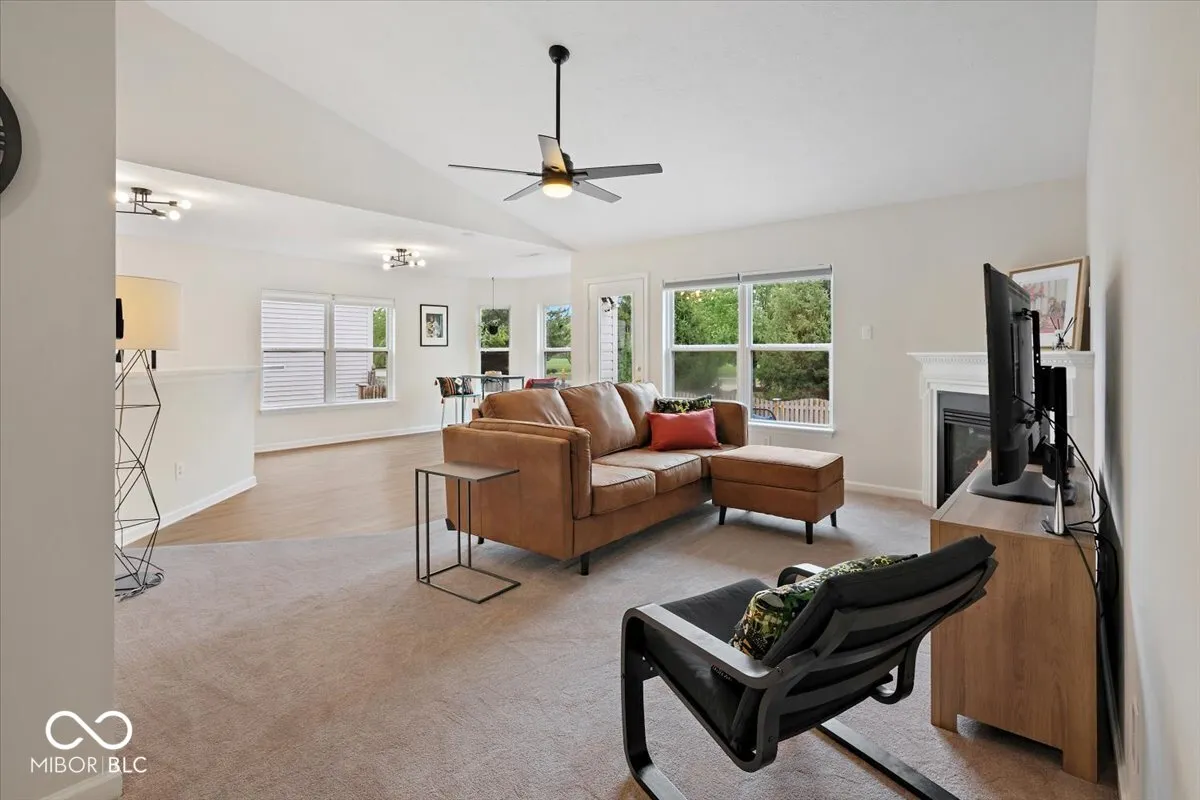 GORGEOUS UPDATES + CARMEL LIVING + BRAND NEW KITCHEN & PRIMARY BATH = PERFECTION. RANCH one story living in Carmel directly off beautiful tree-lined River Road in Haverstick neighborhood full of neighborhood AMENITIES (trails/pool/tennis court/playground). This clean and meticulous 1,459 sqft, 3 bed, 2 full bath home is abounding in natural SUNLIGHT flooding in its many windows & enhanced by the VAULTED ceilings. Smart floorplan flows well – patio is right off main living space. Living room has FIREPLACE & VAULTED CEILINGS. Kitchen has ample space to both work in kitchen & entertain in attached dining space. KITCHEN is all BRAND NEW (2025) – WOW! Appliances, Quartz counters, New Cabinets (new, not painted), LVP Flooring. Primary bedroom is large w/ vaulted ceiling and features BRAND NEW BATHROOM (2025) – WOW! New tiled shower, bathtub, vanity (new, not painted), dual sinks & walk-in closet. Backyard has MATURE TREES and is fully fenced. Carpet (2025), LVP (2025), HVAC (2024), Kitchen (2025), Primary Bath (2025), Interior Paint (2025) Garage Door Motor (2025). Carmel Schools – Prairie Trace Elementary is steps away. Enjoy the lifestyle Carmel has to offer: Carmel parks, parade, festivals, live music, farmers market, Christkindlmarkt, dining, shopping and miles of trails. This is a rare home you wait for, it checks all the boxes. Owner has added over $50k in upgrades. This home is a perfect spot to feel both tucked away and a part of something vibrant. Welcome Home!