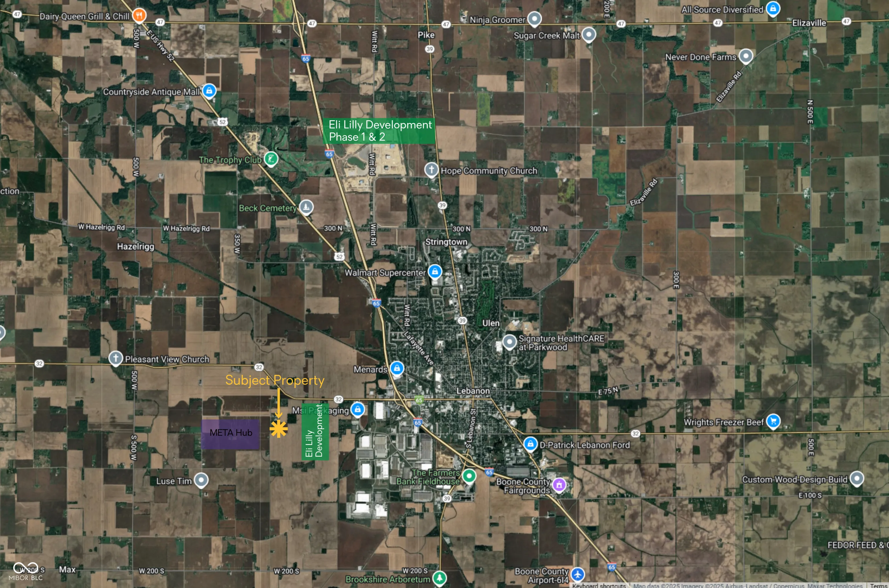 21.23 Acres Development Land Contiguous and Adjacent to Boone County LEAP Project and Eli Lily expansion. High Power/KW transmission adjacent with water. Excellent location and site for Production, Contractor, Vendor, Jobber in fast growing Industrial area.