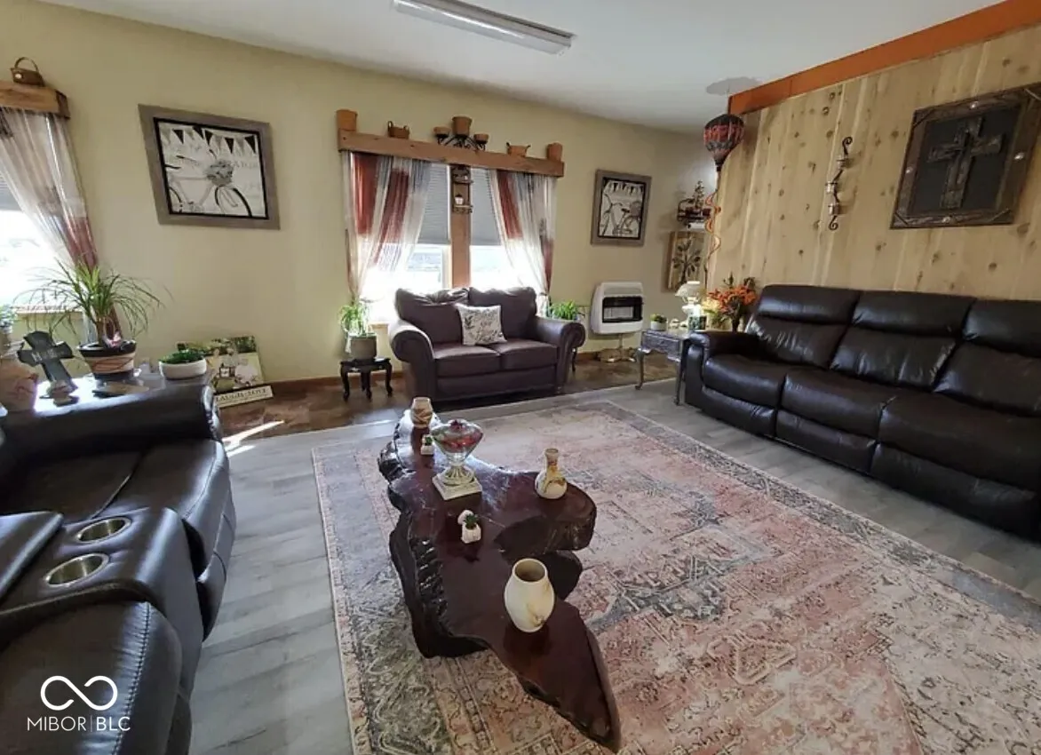 Here’s your place in the country with over 1 acre and a private backyard oasis with a covered patio, bordering mature trees. Expansive living areas, spacious kitchen and laundry room / mud room with a connected bathroom. Features include stainless steel appliances, 16X28 fenced pet area, newer furnace and a/c. New in 2021: doors, windows, metal siding and metal roof, and water heater. 2nd bedroom is currently used as a living room. Plenty of storage in multiple outbuildings including a small cabin. Huge attached 24X40 insulated garage with heat, window a/c and work space. Generous amount of parking space with U-shaped driveway.