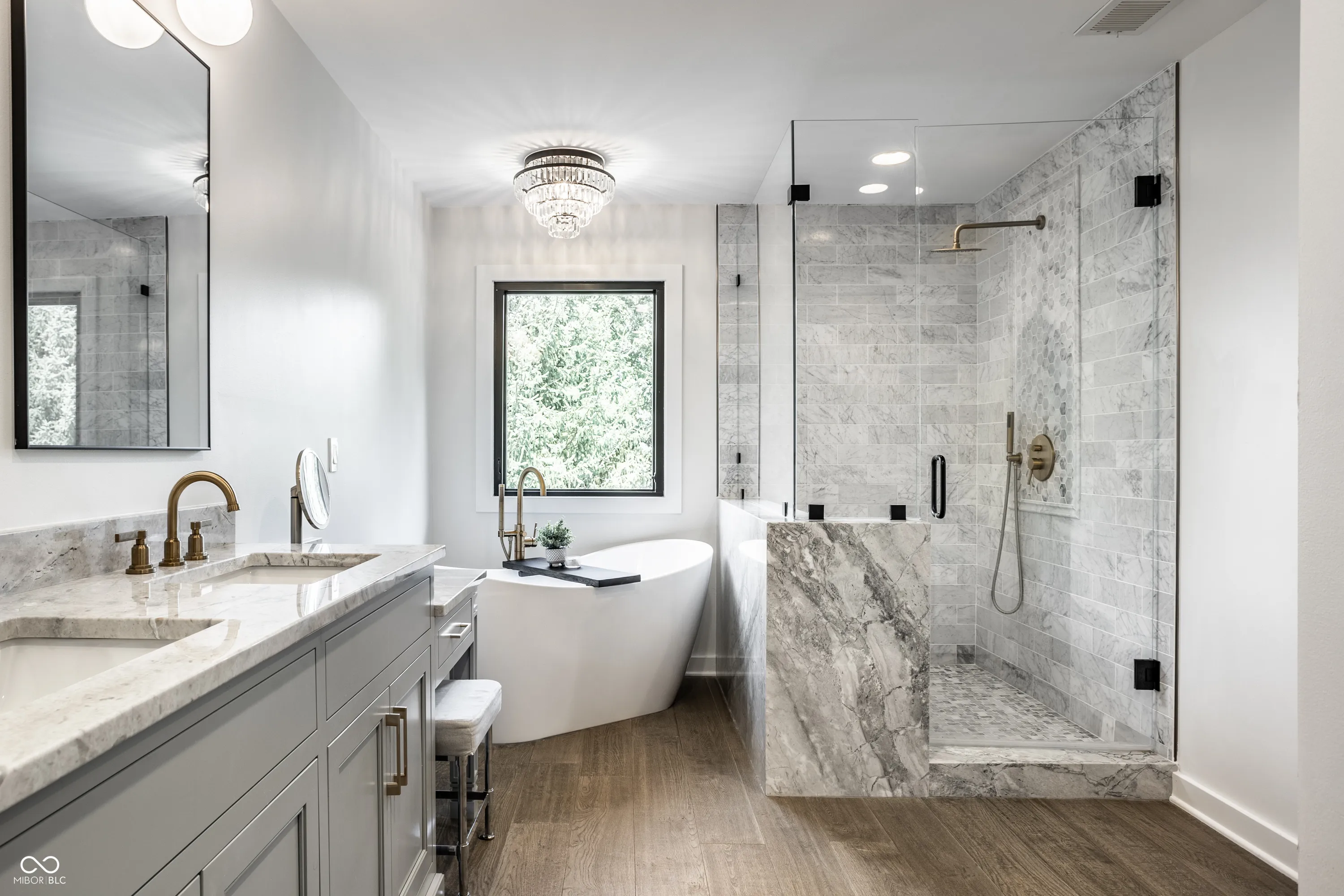 An absolutely stunning 5 bedroom, 4.5 bathroom home, situated in the highly sought after Spring Lake Estates in West Carmel. The property has been subject to extensive and beautifully executed refurbishment by the current owners, resulting in breathtaking finishes throughout the home. These include a NEW KITCHEN, NEW PRIMARY All MARBLE BATHROOM SUITE, NEW HVAC, RO SYSTEM and all NEW Pella fiberglass casement windows, which provide a beautiful aesthetic both inside and outside the home. The kitchen and butler’s pantry have been extensively remodeled, with all new Kitchen Aid appliances, brand new soft close cabinetry and an extended quartz island with a stunning Calcutta waterfall countertop. The same quartz extends up the backsplash, and behind the custom cooker hood meeting the 9ft ceiling creating a seamless finish. The built in microwave and Miele coffee machine allows you maximize countertop space – resulting in a highly sleek and modern finish with an undoubted “WOW” factor. The primary bedroom suite is an absolute show stopper. Custom cabinetry, all marble countertops, marble tile and a custom marble shower wall with a waterfall feature that sits elegantly on the newly installed engineered hardwood. The gorgeous custom closet has soft close drawers, detail hardware and offers an enormous functionality. The in-law suite is enormous, with an additional living space attached, and a private staircase back down to the main level. The finished basement enjoys sound proof walls, newly installed carpet, a full bath and a wet bar! Outside, the newly painted deck offers views over the beautifully landscaped yard, which is given added privacy by the extensive tree line to the rear. The location is superb, with beautiful walking trails just a stones throw from the home, as well as Market District, IU North Hospital and more. Just a short drive to Downtown Carmel which is home to world class eateries, boutique stores and family fun.