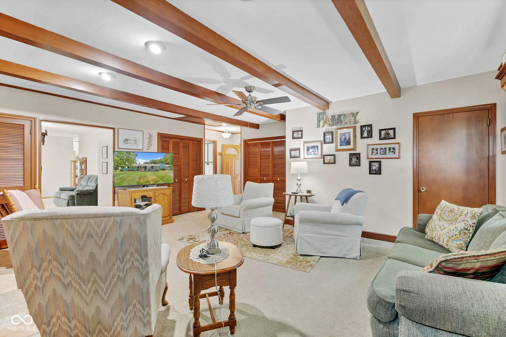 This charming all-brick ranch home features 3 bedrooms and 2 full bathrooms, situated just minutes from town. It offers a spacious family room, a formal living room, and a sunroom, perfect for relaxing or entertaining. The front porch and rear deck enhance outdoor living and curb appeal. The property includes a 2-car attached garage and a separate 2-car detached garage for added convenience. Recent updates in 2023 include a remodeled main bathroom and a modernized kitchen with tile backsplash, quartz countertops, and appliances. This home combines classic appeal with recent upgrades, making it a wonderful place to call home.