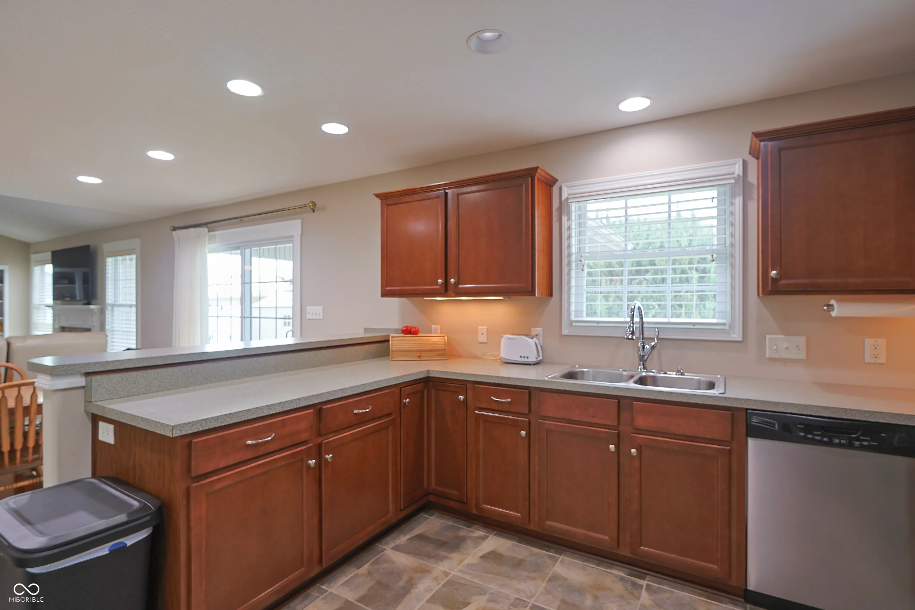 Spectacular Custom Ranch in Woodland Parks Subdivision Conveniently located near Columbus, Franklin, and I-65 to Indianapolis, this stunning 3-bedroom, 2-bath ranch was custom built in 2011 by Skaggs Builders and is packed with thoughtful upgrades. The brick/stone/vinyl exterior complements a well-designed 1,538 sq ft layout. Step inside to find custom ceilings in the entry, Great Room, and Primary Bedroom. The spacious Great Room features a cathedral ceiling, large windows, LVP flooring, and an electric fireplace with a beautiful surround. A covered porch overlooks the fenced backyard, perfect for relaxing evenings. The Dining Room includes a ceramic tile floor and a patio door to the porch. The adjoining kitchen boasts stainless steel appliances, ceramic tile flooring, wood-tone cabinets with crown molding, and a breakfast bar. A large pantry and laundry area are conveniently located next to the kitchen. The Primary Suite offers a tray ceiling, double vanity, walk-in closet, and a luxurious custom walk-in shower. Two additional large bedrooms share a hall bath updated with a new vanity top, medicine cabinet, and toilet. Other features include pocket doors, a 2.5-car garage, and exceptional attention to detail throughout. This home blends comfort and style in a prime location.