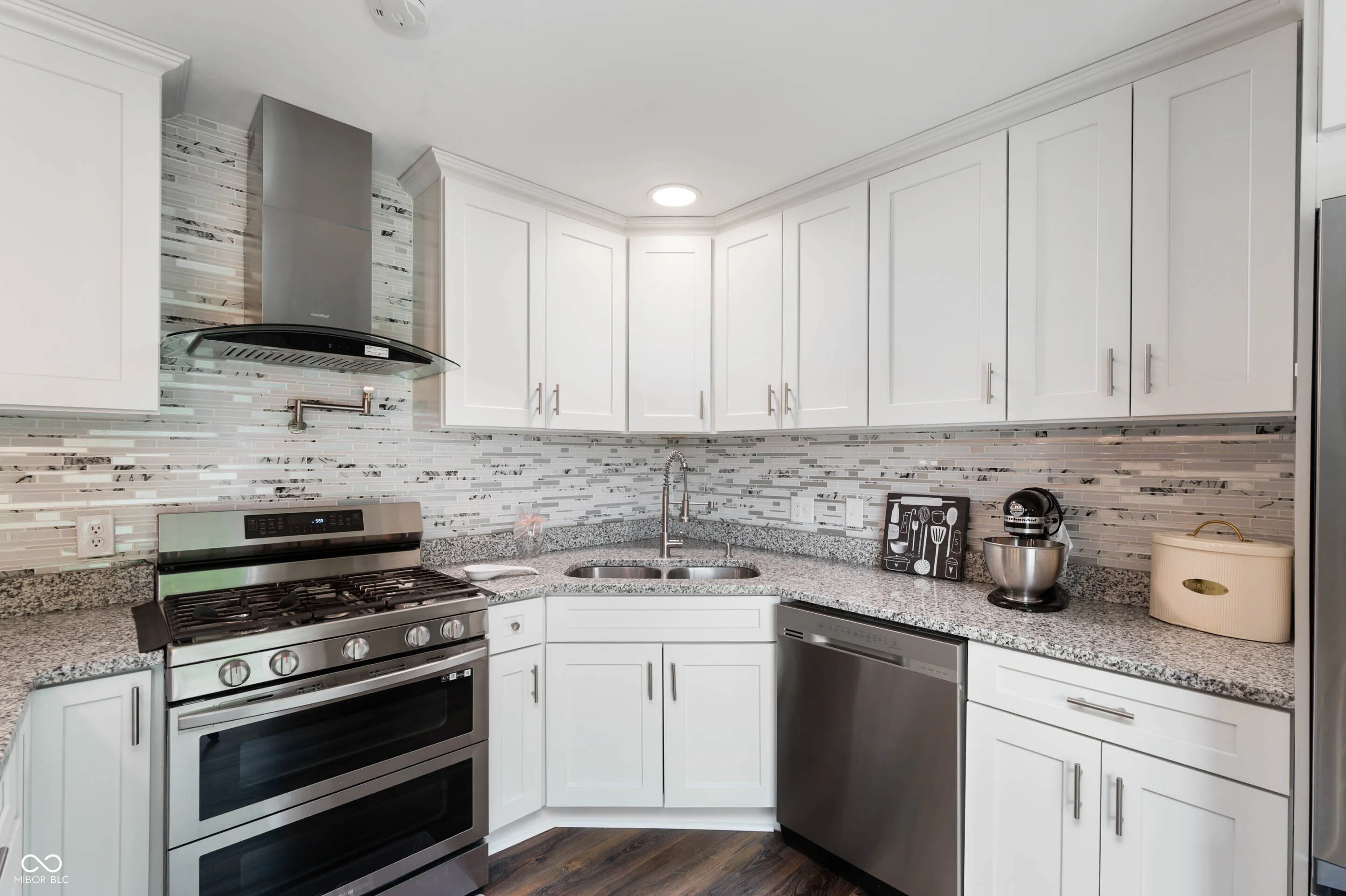 Nestled at 66 Sherman Dr., Carmel, IN this single-family residence in Hamilton County offers an attractive fully renovated property. The heart of this home is undoubtedly the kitchen, showcasing all white cabinets complemented by stone countertops, backsplash, a breakfast bar and stainless steel appliances making it a delightful space for everyday living. The gas stovetop and range hood complete this culinary haven. The living room is enhanced with crown molding and dark laminate hardwood. This residence offers three bedrooms and two full bathrooms and an updated laundry room with plenty of extra storage space. The back patio features a partial privacy fence great for entertaining or a relaxing evening outdoors. This charming property offers an amazing opportunity to create a comfortable and stylish lifestyle right in the heart of Carmel.