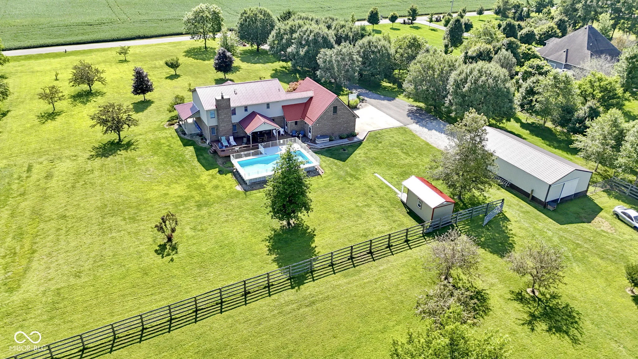 Nestled on 5 acres this 4 bedroom 3 full bath home offers a unique opportunity to embrace a tranquil lifestyle. The Large wrap around front porch welcomes you home. Updated Kitchen with an abundance of cabinets for storage- stainless steel appliances, granite countertops. Formal dining room, Living room with fireplace, Large Mud room. Master suite with custom walk in tile shower, double vanity and walk in closets. 2.5 Car finished garage. Step outside to the covered deck for BBQ’S or a swim. Large pole barn and shed, fenced-in back pasture. Amazing location close to town, desirable Pendleton schools, entertainment and interstate.