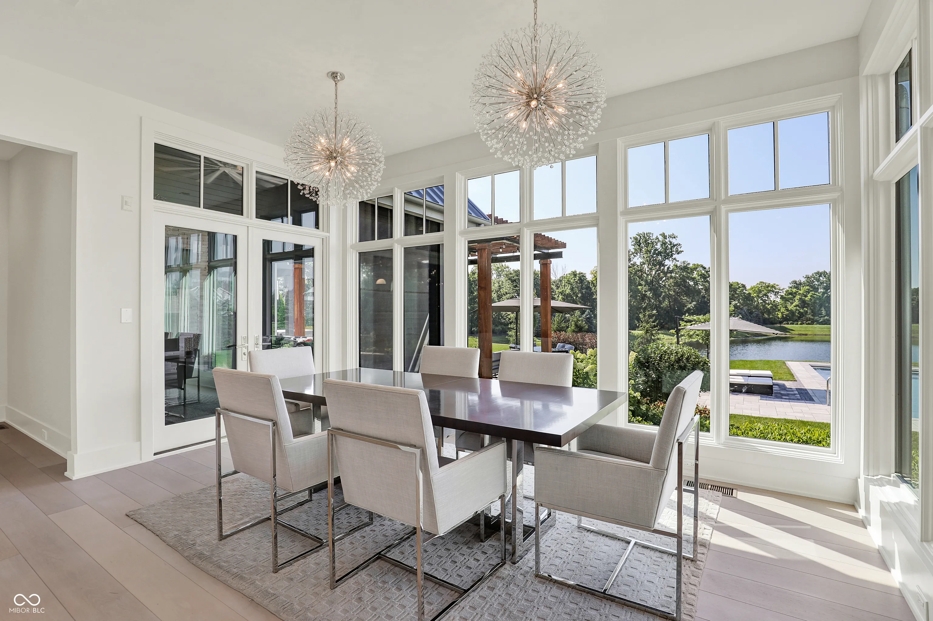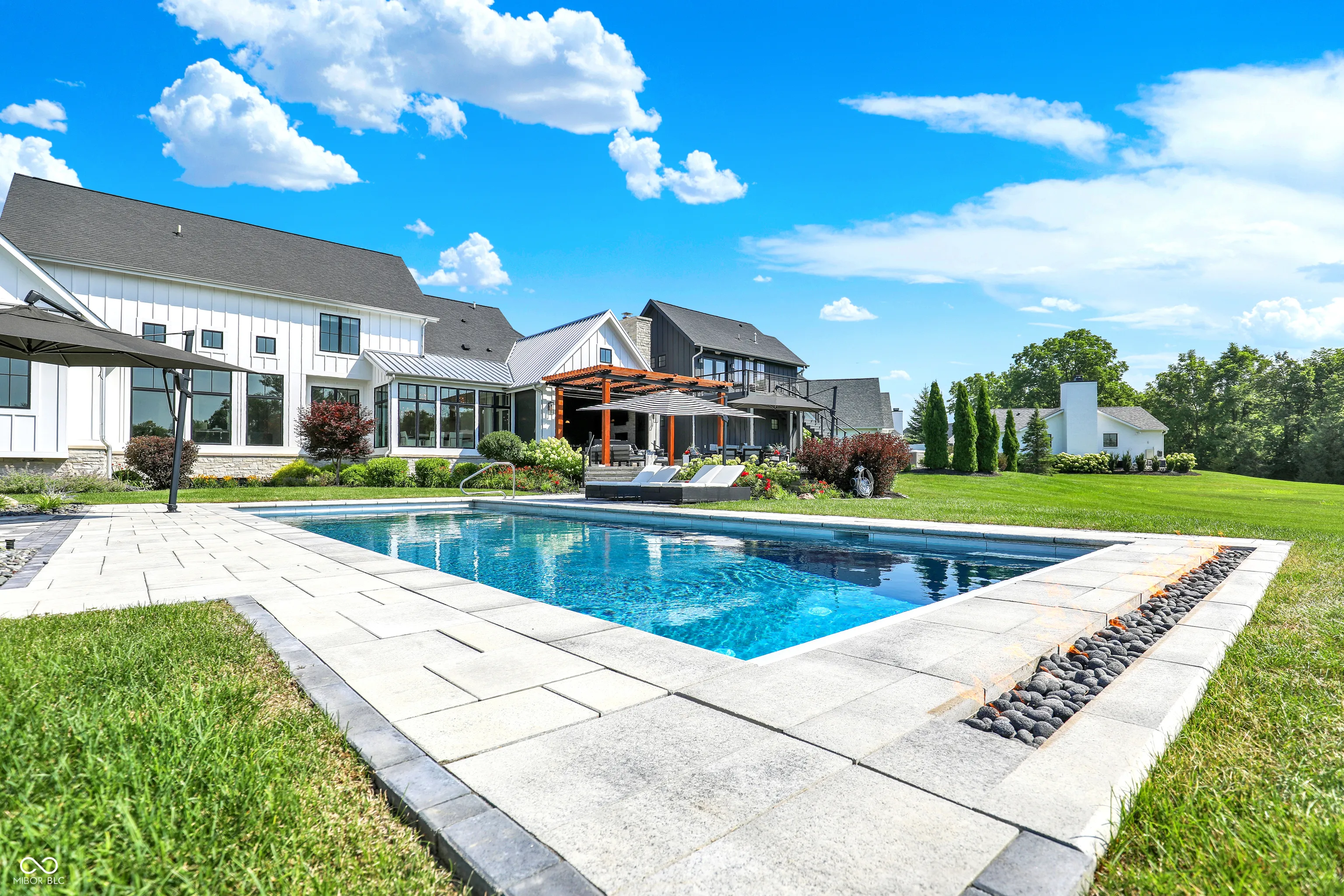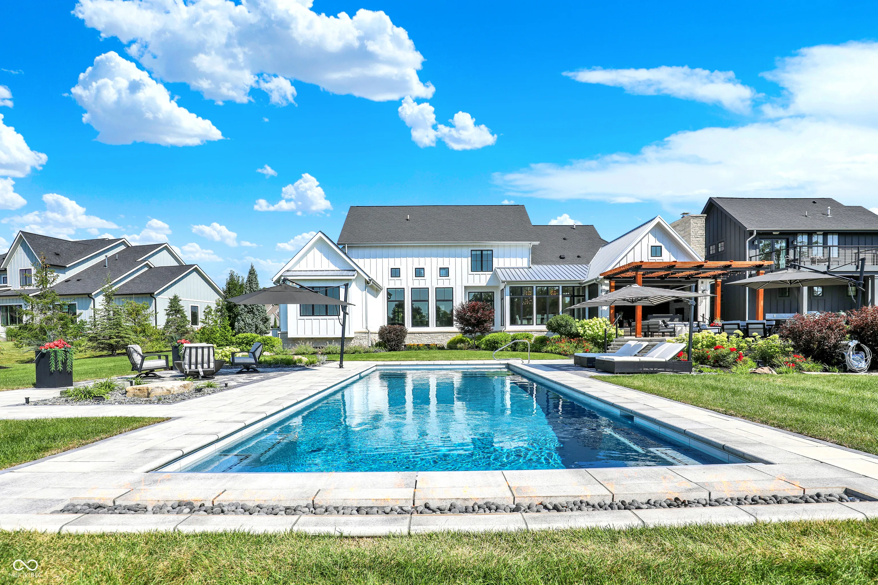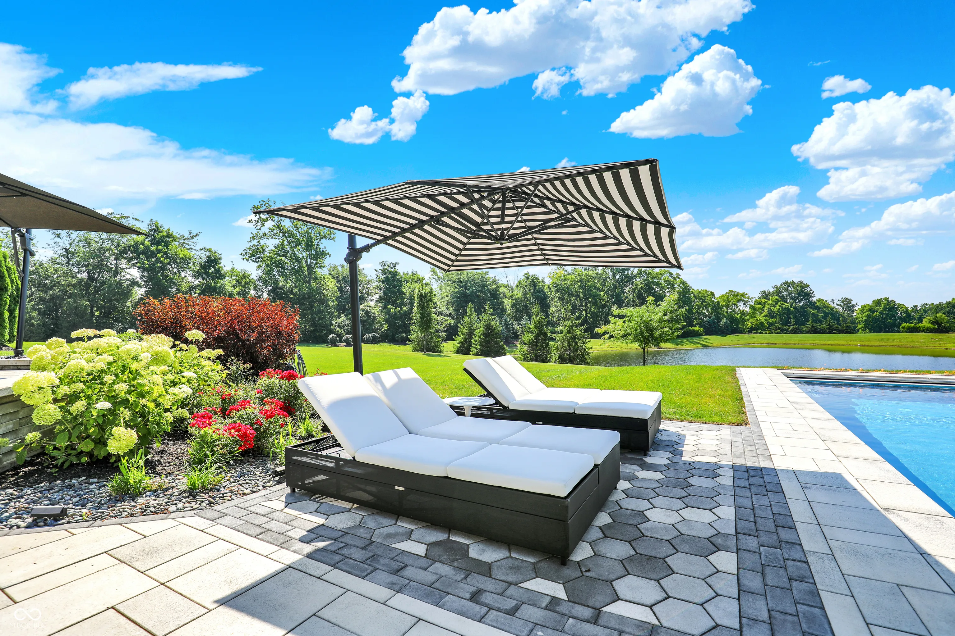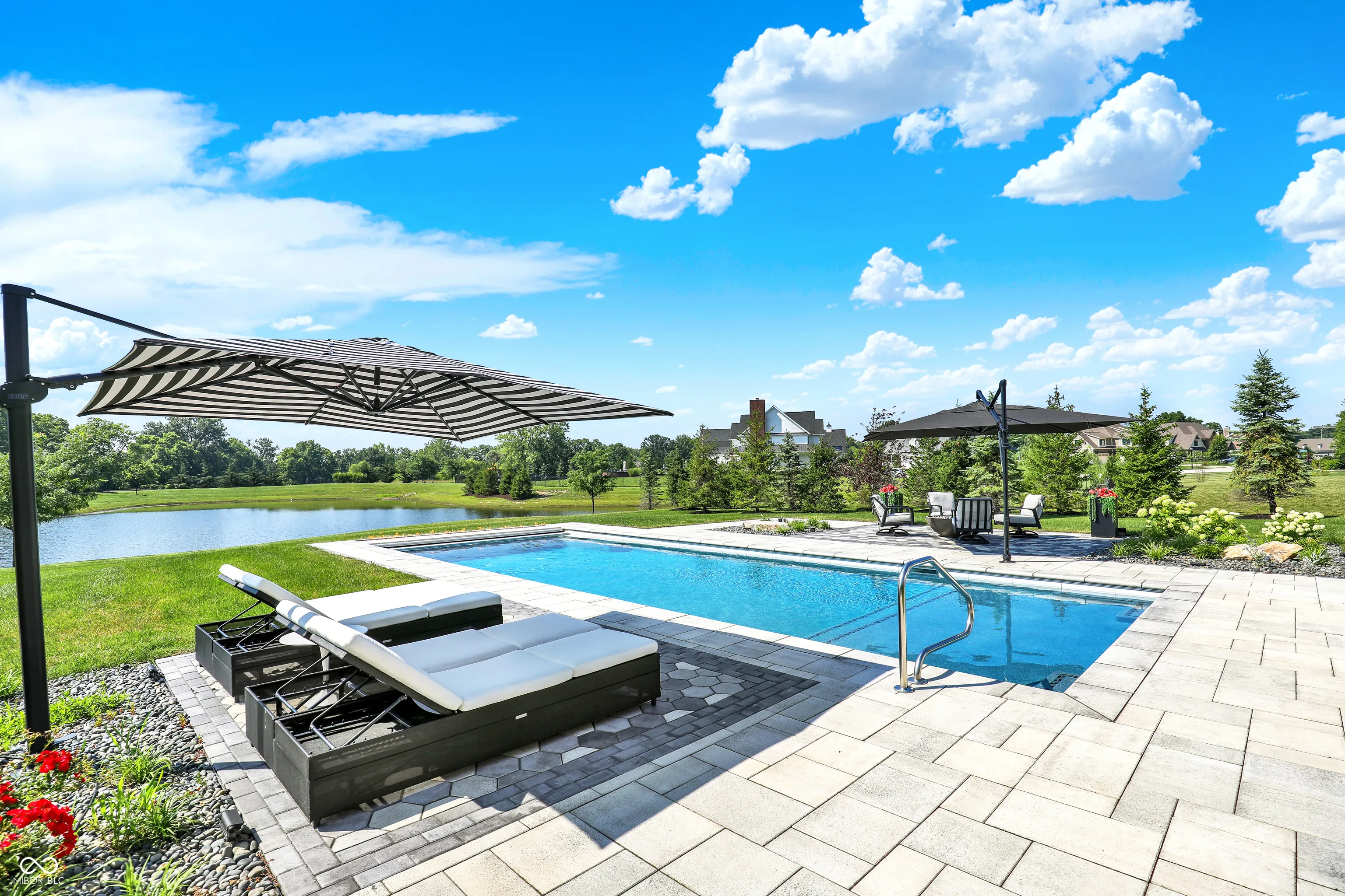 Offered furnished, this extraordinary residence in Oak Park Estates delivers resort-style living on nearly an acre with sweeping pond views. Designed for both entertaining and everyday comfort, the property showcases a backyard retreat with a sparkling pool, spa, and multiple seating areas surrounded by lush landscaping. A private carriage house adds flexibility to the home, complete with kitchenette, full bath, and a deck overlooking the grounds-ideal for guests, multi-generational living, or extended stays. Refined design and thoughtful detail throughout. The chef’s kitchen is equipped with dual islands, Wolf appliances, and a butler’s pantry with built-in coffee machine, opening to a dramatic two-story great room with walls of windows. The main-level primary suite provides a peaceful retreat, while three generous upstairs bedrooms each include en suite baths. The finished lower level is designed for leisure with a wet bar, game nook, theater area, and sixth bedroom with full bath. Large 3 car with extra deep bays and separate garage that can house 2 more cars or perfect for a golf simulator or workshop. Full security system with cameras ensures peace of mind. Combining luxury amenities, modern function, and the convenience of being fully furnished, this home presents a rare opportunity within Oak Park Estates.