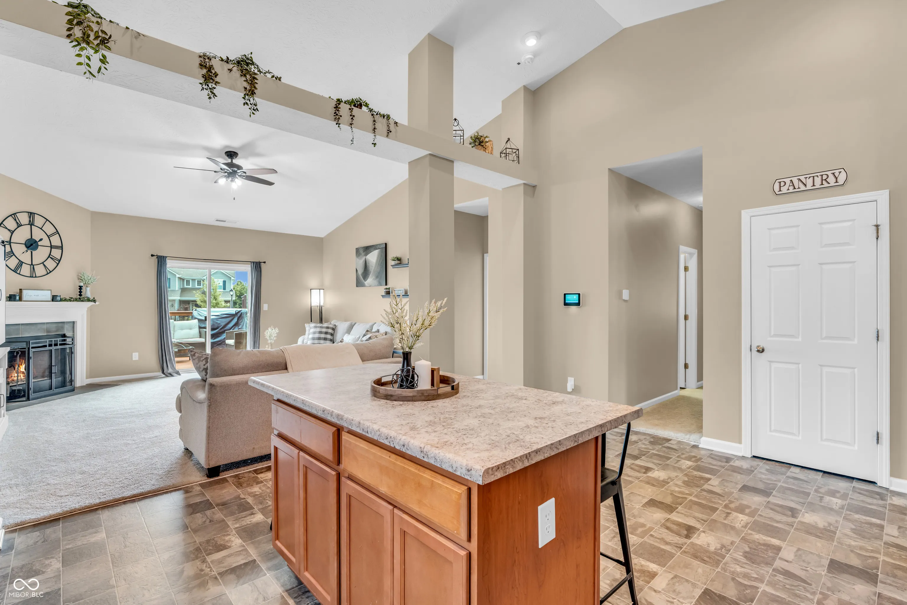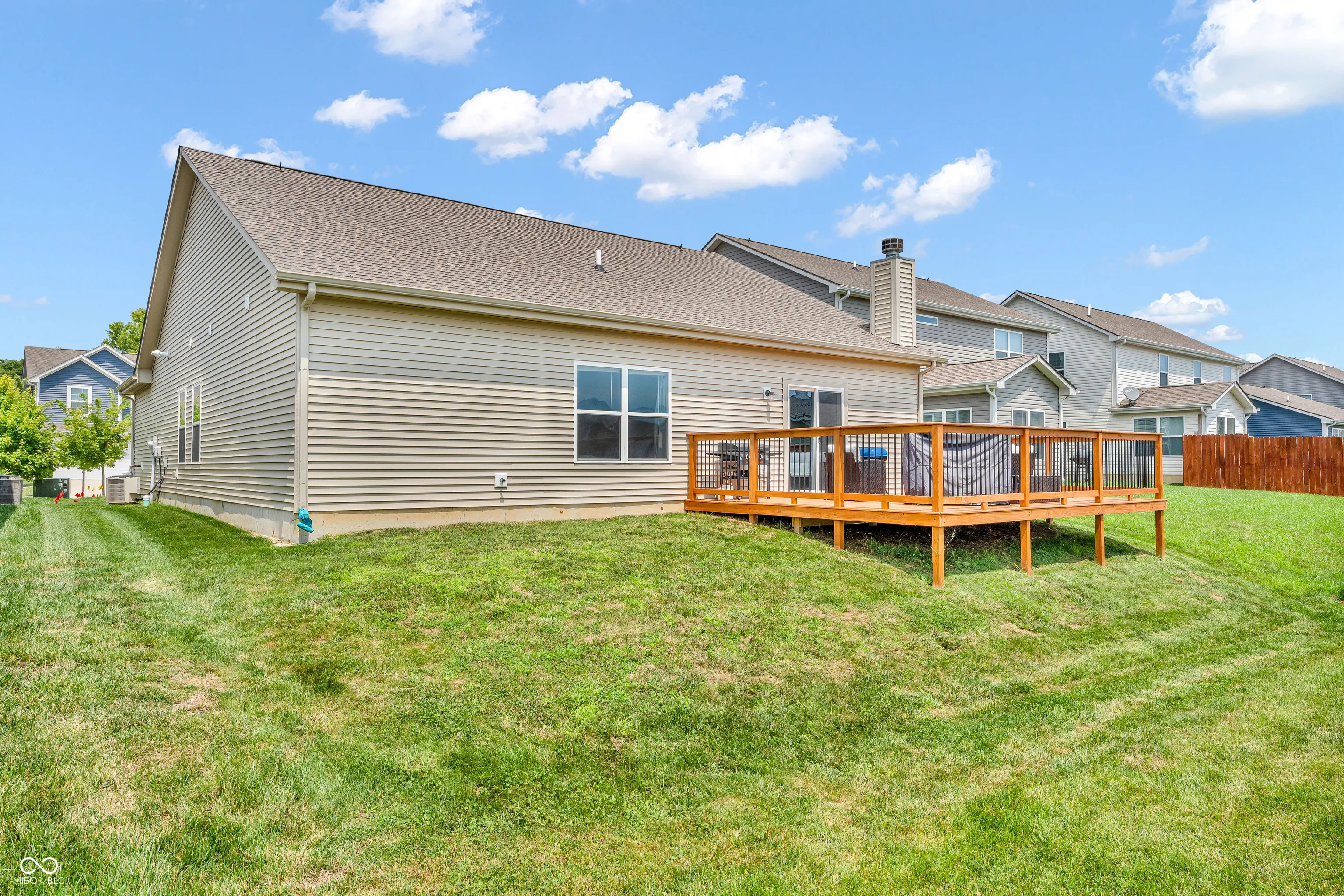 Immaculate 3 bedroom, 2 full bath Ranch home with vaulted ceilings and an open concept design. The great room features a cozy fireplace, high ceilings and all the natural light helps create a bright welcoming space. The kitchen includes stainless steel appliances and flows effortlessly into the main living area. Enjoy outdoor living on the spacious deck – perfect for relaxing or hosting. This home is truly move-in ready. Just unpack and enjoy!!