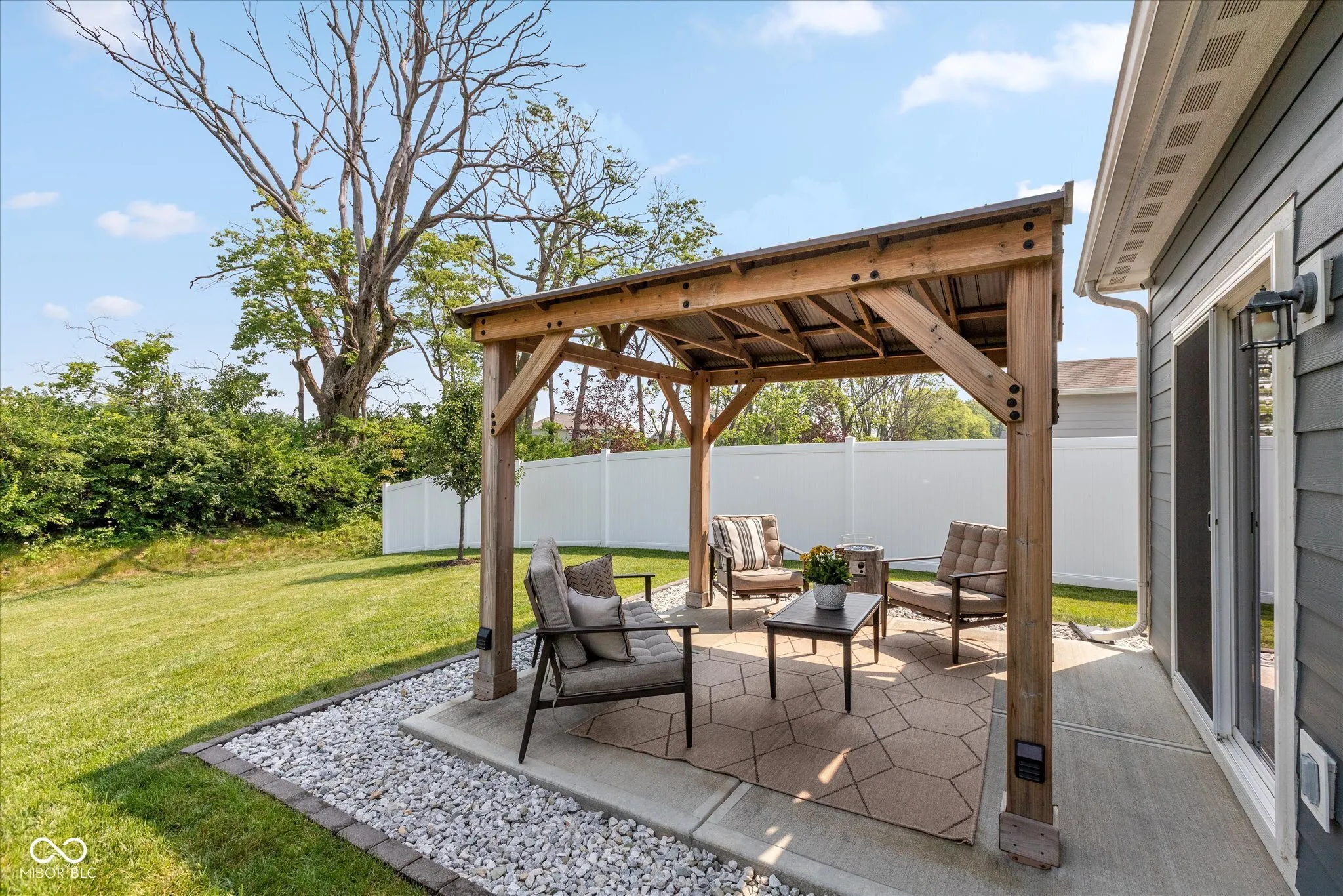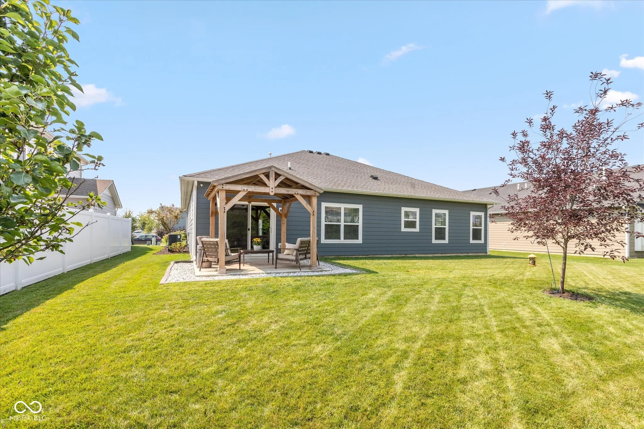 Welcome to this beautifully maintained 3-bedroom, 2-bath ranch in the desirable Waterman Crossing community, within Hamilton Southeastern Schools District. This like-new 2020 build offers an open-concept floor plan with high-end finishes and timeless design. Step into a light-filled living space featuring luxury vinyl plank floors, designer lighting, and a seamless flow from the spacious great room to the dining area and beautiful kitchen-complete with a large center island, stainless steel appliances, gas range, and pantry. The private primary suite is a true retreat with oversized walk-in closet, and en-suite bath featuring a double vanity and full glass-enclosed shower. Two additional bedrooms offer ample space for family, guests, or a home office. Enjoy outdoor living under the stylish cedar pergola, perfect for entertaining friends or enjoying family time together. Nestled on a quiet street, just minutes from shopping, dining, parks, and major highways-this home truly has it all.