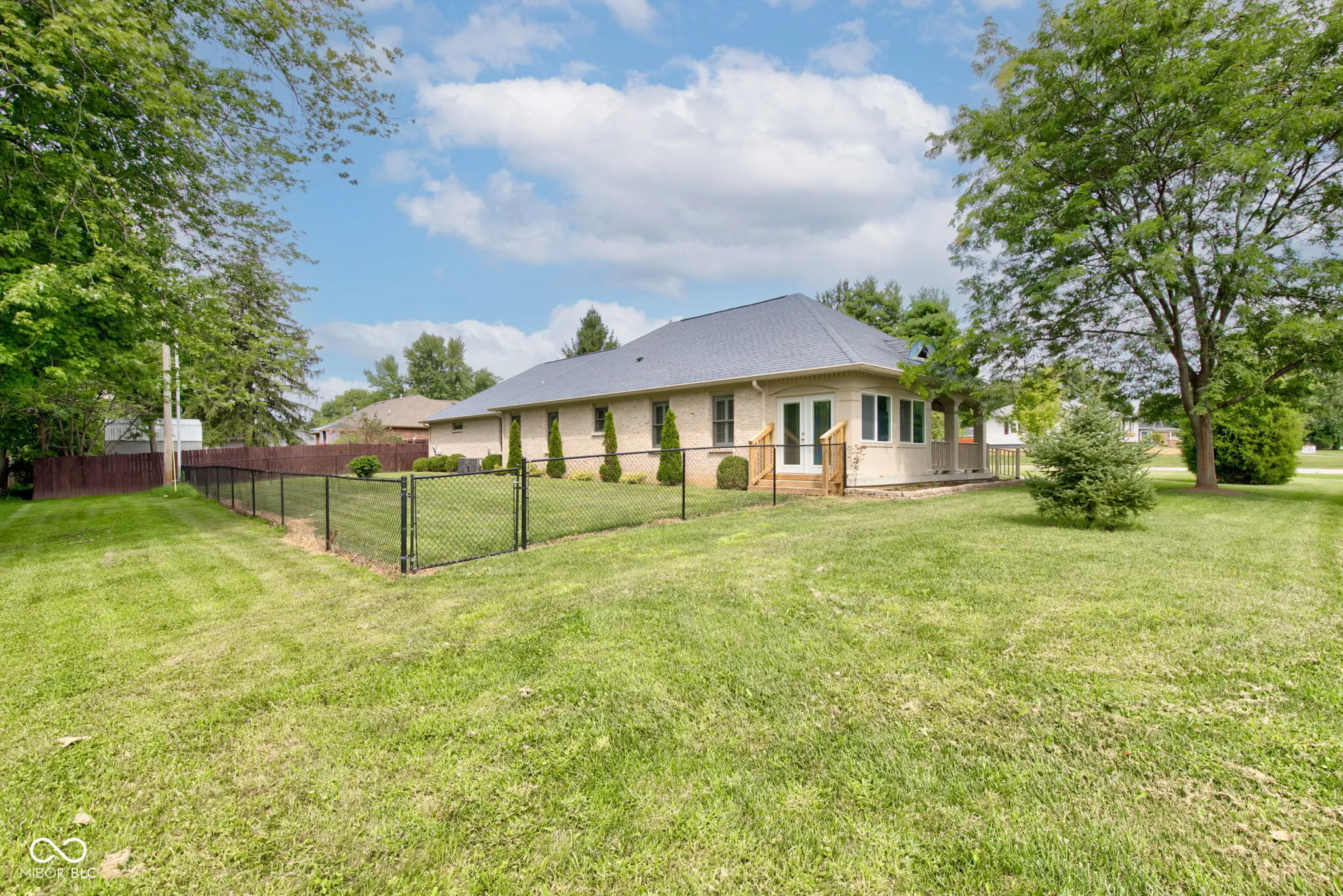 This beautifully maintained ranch home is located on a spacious corner lot in the quiet Victor Young subdivision, offering peace and privacy with no HOA. Built in 2010 by renowned local builder Larry Good, known for his attention to detail, the home features 1,902 square feet of comfortable, single level living with 2 bedrooms and 2 full bathrooms. The expansive 1,034 square foot attached garage includes pegboard walls, built-in shelving, and easily accommodates two vehicles, while the covered carport provides additional parking for up to four more. The garage also includes a separate utility room with the furnace, water heater, and water softener. The 0.48-acre lot includes a fully fenced backyard, perfect for outdoor enjoyment. Designed with accessibility in mind, the home includes a concrete ramp from the driveway to the side entrance, extra-wide hallways and doorways, a step-in tub in the primary suite, and a tiled walk-in shower in the hall bath. Recent updates include a new Bosch dishwasher (2022), interior repainting (2022), new gas furnace and A/C (2023), gas lines to the dryer and new gas stovetop (2023), whole-house gutter guards (2024), fresh landscaping (2024), and new carpet in three rooms over hardwood floors (2025). A second screened porch was remodeled into an all-season room with access to a larger, windowed front porch and an atrium door leading to the backyard. The home is equipped with an alarm system, and custom shutters are installed throughout, with an additional set available for the second bedroom. The built-in oven is electric, and both the dryer and stovetop can be used with gas or electric. Immediate possession is available upon closing, making this home move-in ready for its next owner.