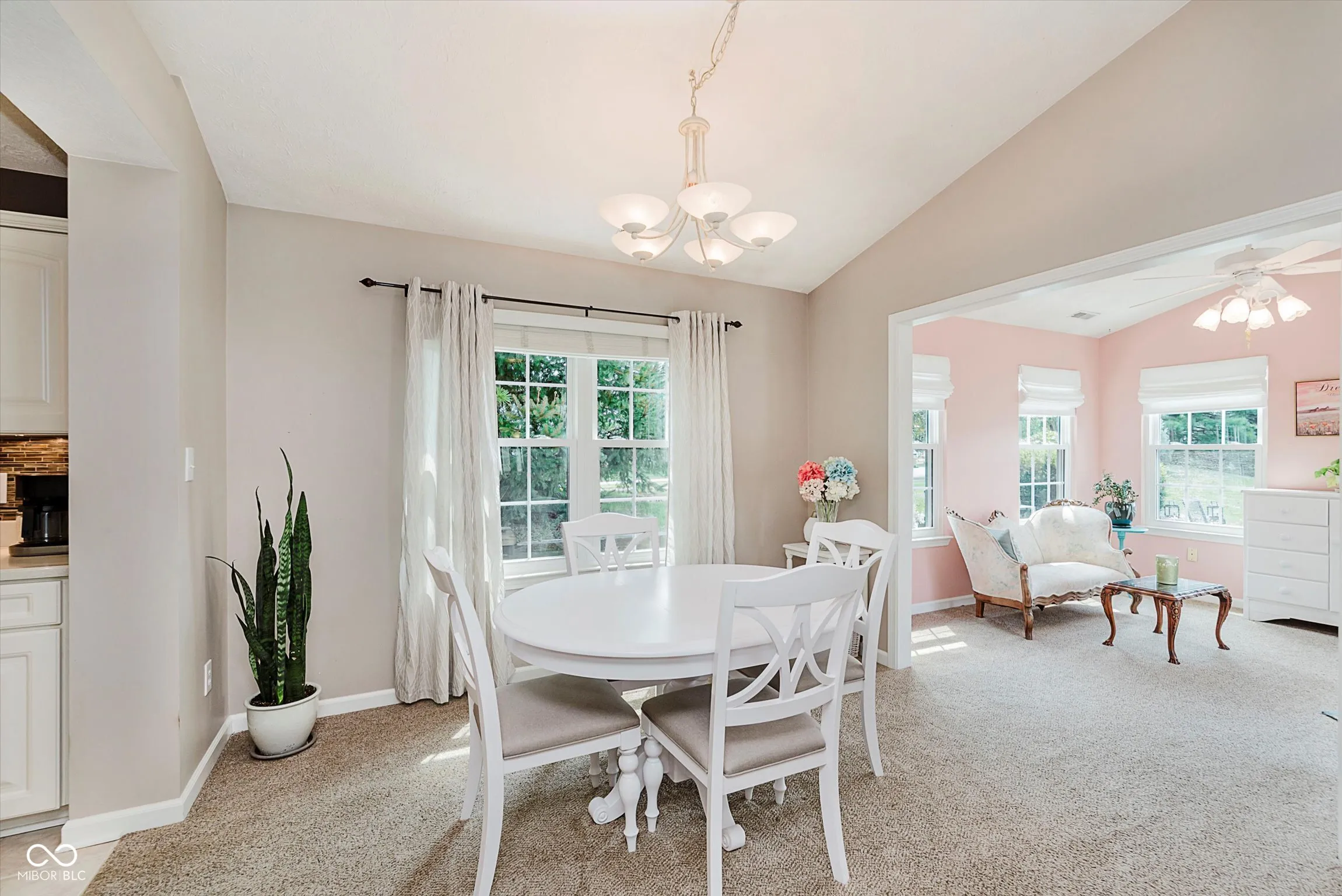 Enjoy maintenance-free living in this immaculate 2BR, 2BA ranch in Emerald Village at Pebblebrook! Step inside to a light-filled, open-concept layout featuring a vaulted great room with a cozy gas fireplace that flows seamlessly into the dining area and kitchen-perfect for entertaining. The kitchen is beautifully appointed with solid-surface countertops, tile flooring, backsplash, under-cabinet lighting, pantry, center island with breakfast bar, and all appliances included. One of the standout features is the Sunroom-your own serene retreat to enjoy a cup of coffee and quiet mornings. The vaulted ceiling primary en suite boasts dual sinks, a full shower, and two walk-in closets. A spacious laundry room with a utility sink is conveniently located off the garage. Tucked away on a premium lot with no neighbors directly behind or next door to the south, and HOA common area across the street, this home offers rare privacy in a peaceful, well-kept community. Lawn care and snow removal are included, so you can spend more time enjoying life and less time on chores. Relax on the deck surrounded by lush landscaping and enjoy the extra green space beside and across from the home. Major updates include windows (2015) and roof (2020). Homes on this street are hard to come by-don’t miss your chance! Conveniently located near everything Westfield and Noblesville have to offer, yet tucked away in a quiet, established neighborhood.
