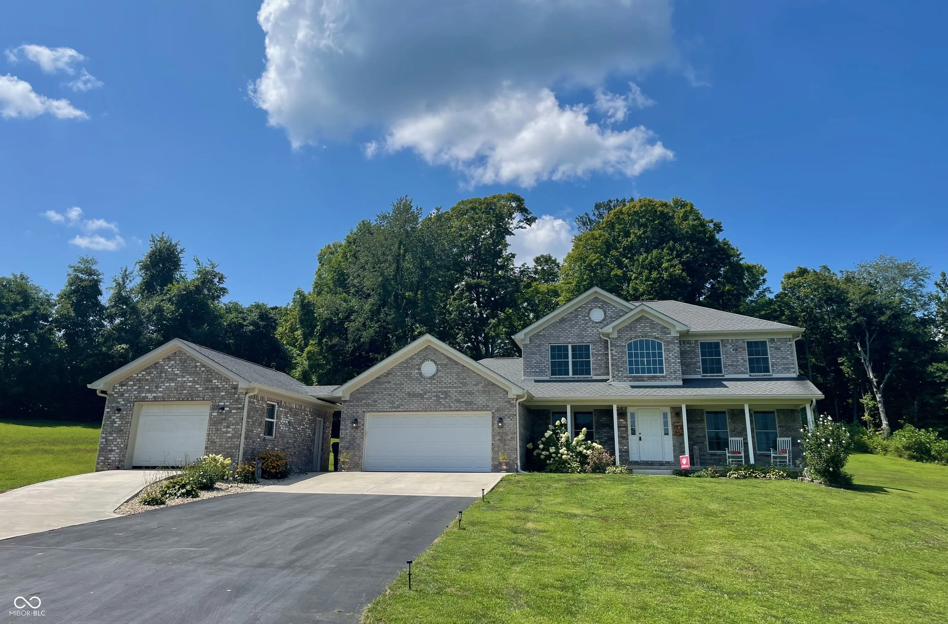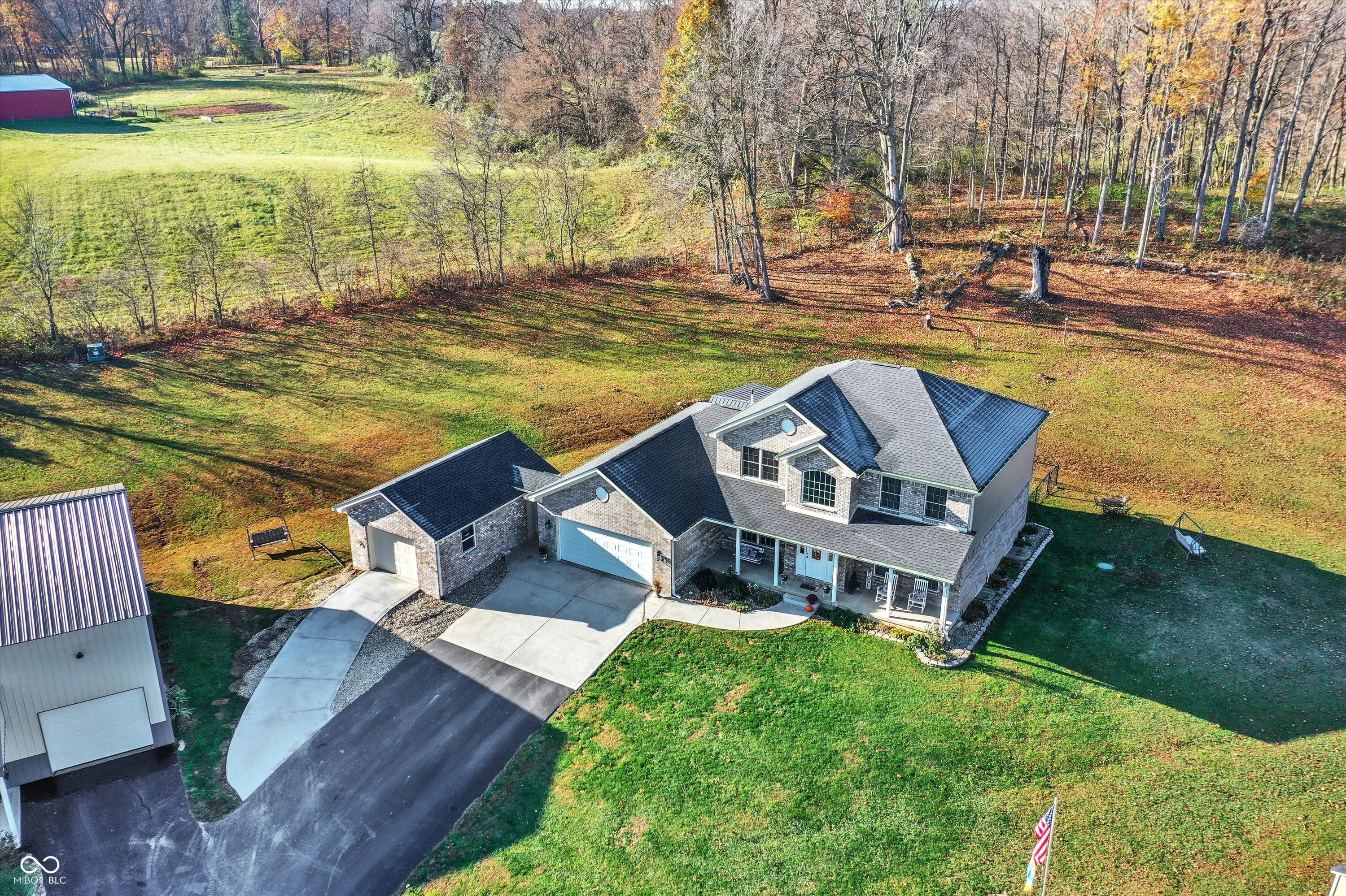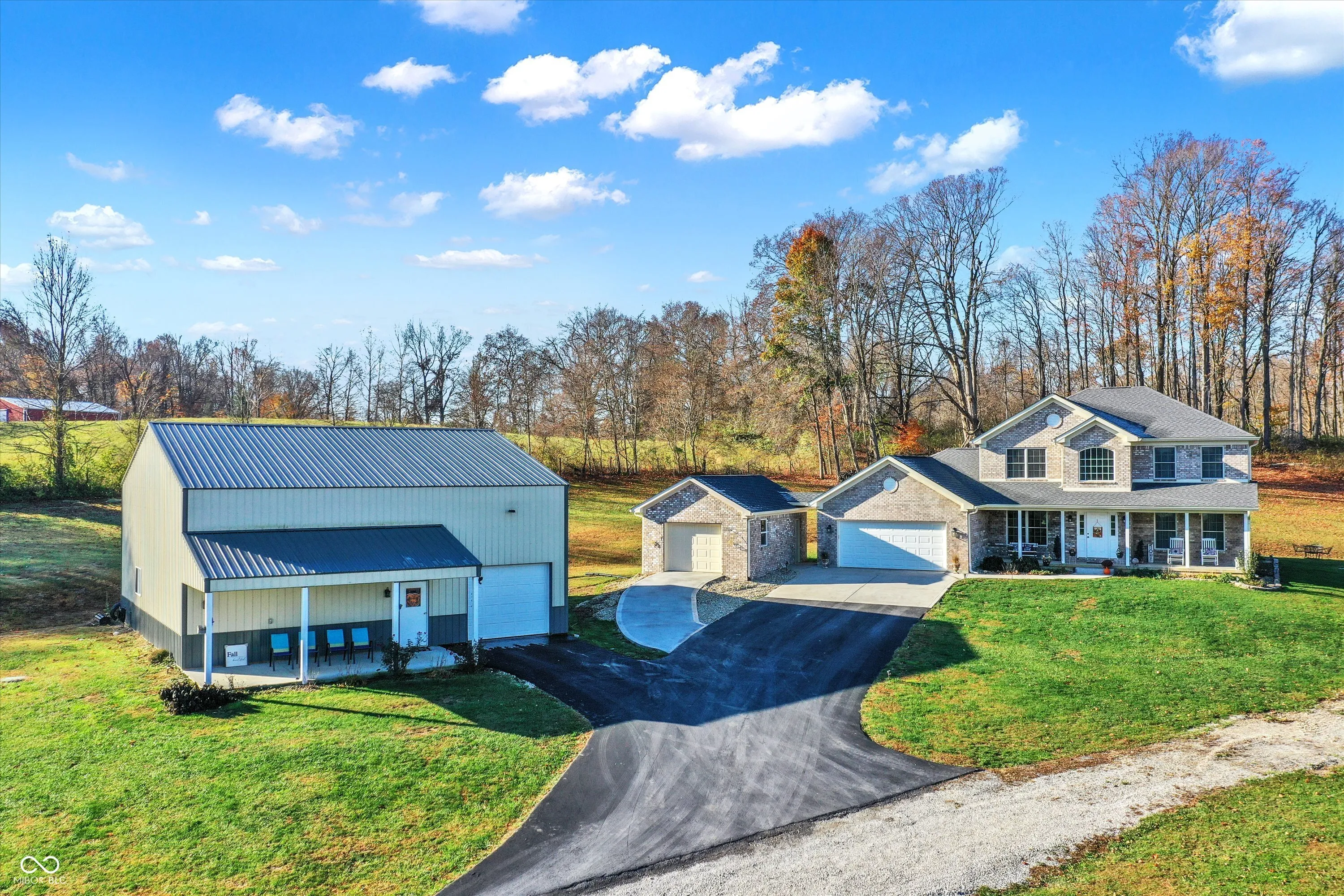 This spacious 3-bedroom brick home sits on 11+ rolling acres in highly sought-after Green Township-offering room for kids to explore, space for hobbies, and plenty of privacy. The main level features a warm and inviting great room with a cozy fireplace, a large kitchen with an island, breakfast nook, and built-in desk/work zone-perfect for homework or keeping life organized. A formal dining room with an elegant tray ceiling is ready for holiday dinners and family celebrations. The main level primary suite includes a spa-like bath with double vanity, soaking tub, separate shower, and walk-in closet. The screened porch with a hot tub is perfect for unwinding while watching the sunset, and the unfinished basement-with full bath rough-in and egress window-offers room to grow. Upstairs, a huge bonus room makes a great second family room or play area, with two additional bedrooms, including another suite, just steps away. The attached 3-car garage provides space for vehicles, bikes, and gear. Outdoors, enjoy the large 40X40 fully insulated pole barn with covered porch, oversized overhead door, and full bath-ideal for a workshop, extra storage, or even additional living space. All this just minutes from I-69, making your commute to Indianapolis or Bloomington quick and easy, while still enjoying the peace and freedom of country living.