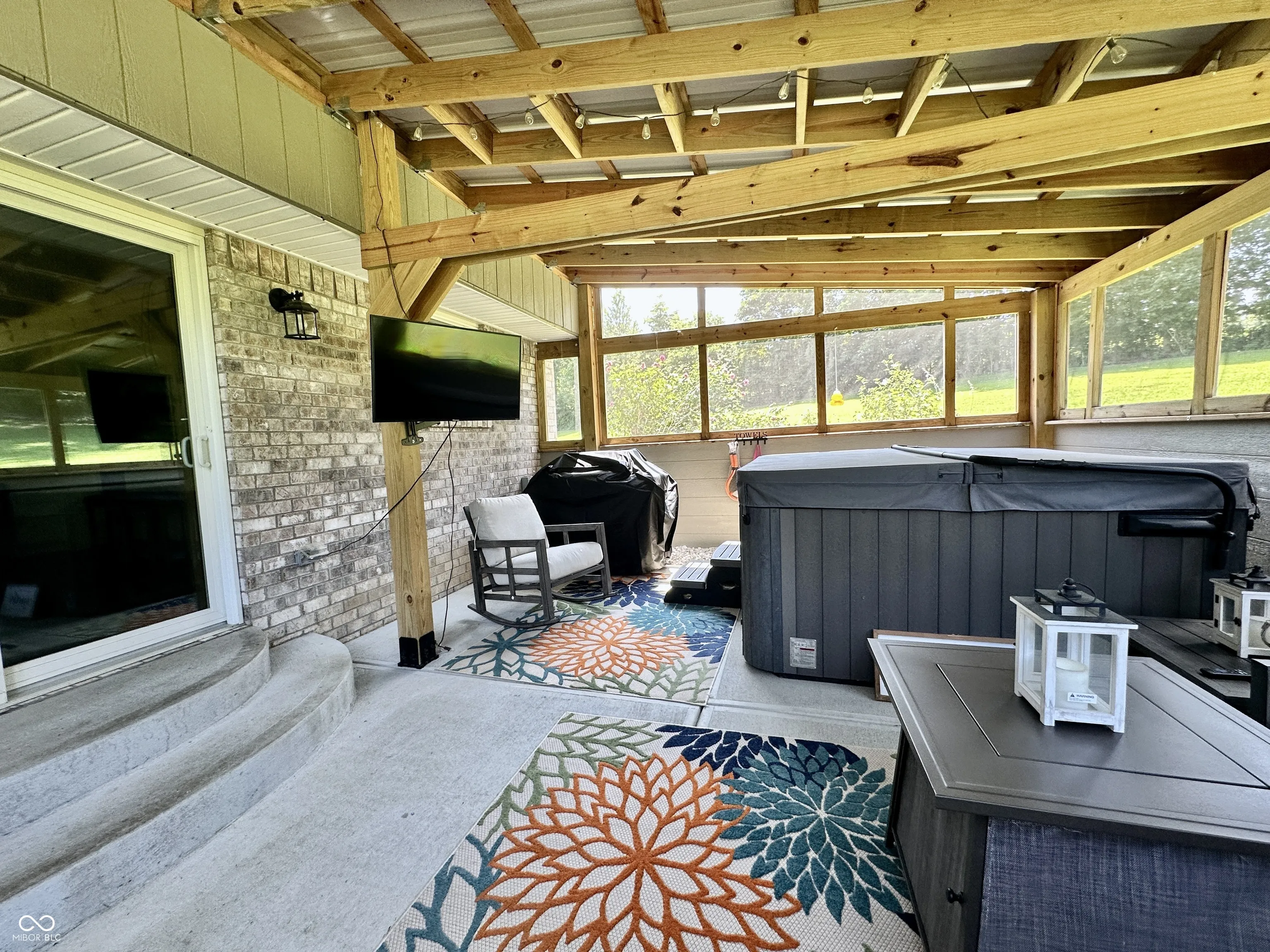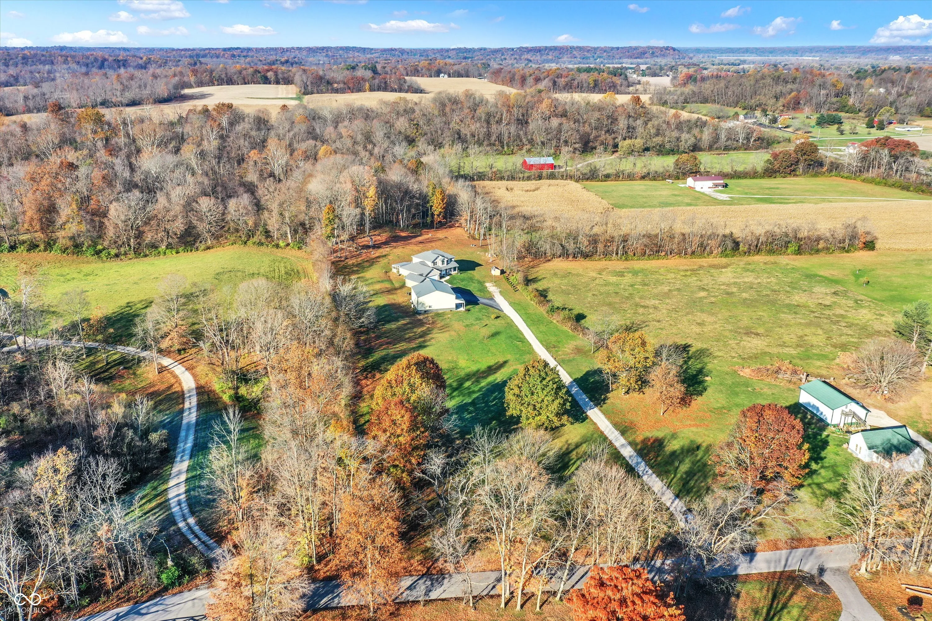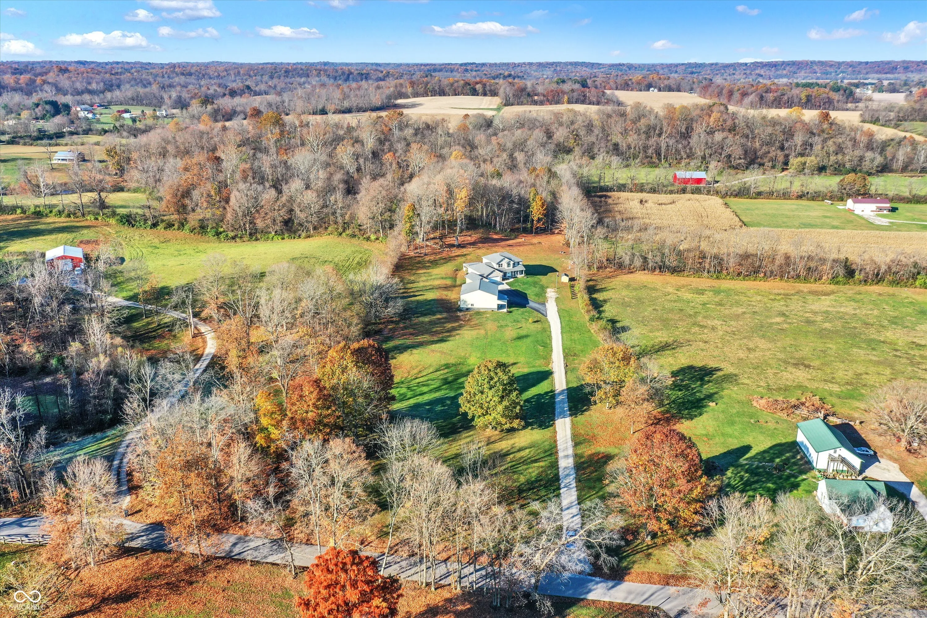 This spacious 3-bedroom brick home sits on 11+ rolling acres in highly sought-after Green Township-offering room for kids to explore, space for hobbies, and plenty of privacy. The main level features a warm and inviting great room with a cozy fireplace, a large kitchen with an island, breakfast nook, and built-in desk/work zone-perfect for homework or keeping life organized. A formal dining room with an elegant tray ceiling is ready for holiday dinners and family celebrations. The main level primary suite includes a spa-like bath with double vanity, soaking tub, separate shower, and walk-in closet. The screened porch with a hot tub is perfect for unwinding while watching the sunset, and the unfinished basement-with full bath rough-in and egress window-offers room to grow. Upstairs, a huge bonus room makes a great second family room or play area, with two additional bedrooms, including another suite, just steps away. The attached 3-car garage provides space for vehicles, bikes, and gear. Outdoors, enjoy the large 40X40 fully insulated pole barn with covered porch, oversized overhead door, and full bath-ideal for a workshop, extra storage, or even additional living space. All this just minutes from I-69, making your commute to Indianapolis or Bloomington quick and easy, while still enjoying the peace and freedom of country living.