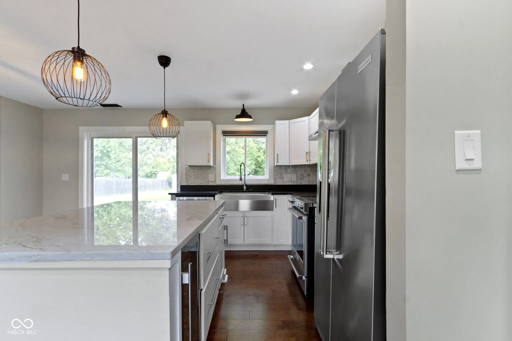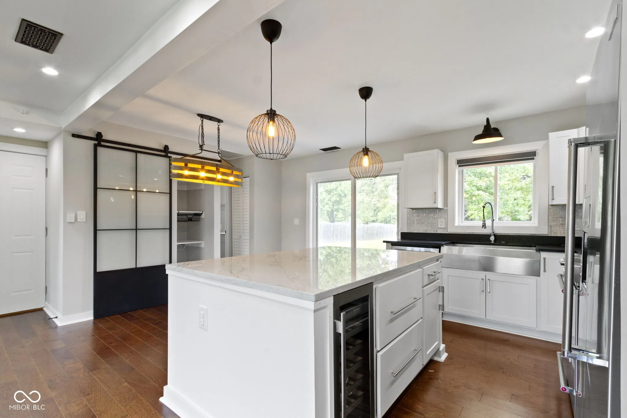 Hard to find, NO HOA, near 1 ACRE homesite, REMODELED Farmhouse inspired home awaits you! Completely updated from the inside-out, this home is truly move-in ready! Crisp white exterior, w/black accents such as the windows & roof, really makes this home’s curb appeal POP! Modern finishes throughout. Open the door to engineered hardwood flooring spanning throughout the main living area. Neutral paint tones from top to bottom. Greatroom features towering, vaulted ceilings, modern railing for the staircase & cat-walk make this space stunning, including wood stair treads. Opens concept floorplan, perfect for entertaining. Kitchen ftrs white kitchen cabinets, and plenty of them! Gorgeous granite countertops including an island w/seating. Stainless Steel Kitchen-Aid appliances, stainless hood/vent all included. Pot filler, farmhouse sink, and beverage fridge are just a few other details that set this kitchen apart! Large pantry off the dining space with a windowpane barn-door is truly a space saver! Laundry room on the main floor with cabinets for storage and washer and dryer is included. Owners Suite w/WIC and ensuite bath that includes a furniture vanity with dual sinks, marble counters. Flr2Clng tile shower with decorate niche’ gives this an upscale look! Trending black fixtures and bright lighting really truly bring this whole space together seamlessly. Upstairs you will find two generous sized bedrooms with architectural detail in the clipped ceilings, plenty of lighting with the addition of recessed lighting. Generous closet space too! 2nd full bath with full-tub/shower surrounded by upscale tile, trending floors, and another furniture vanity with plenty of storage! Step outside onto your patio and enjoy the spacious backyard with plenty of room to expand your outdoor living and a mini barn for storage! Truly a blank canvas to create your own private backyard oasis! Don’t miss the garage, that’s a true “Man-cave” with upgraded flooring, freshly painted & storage!
