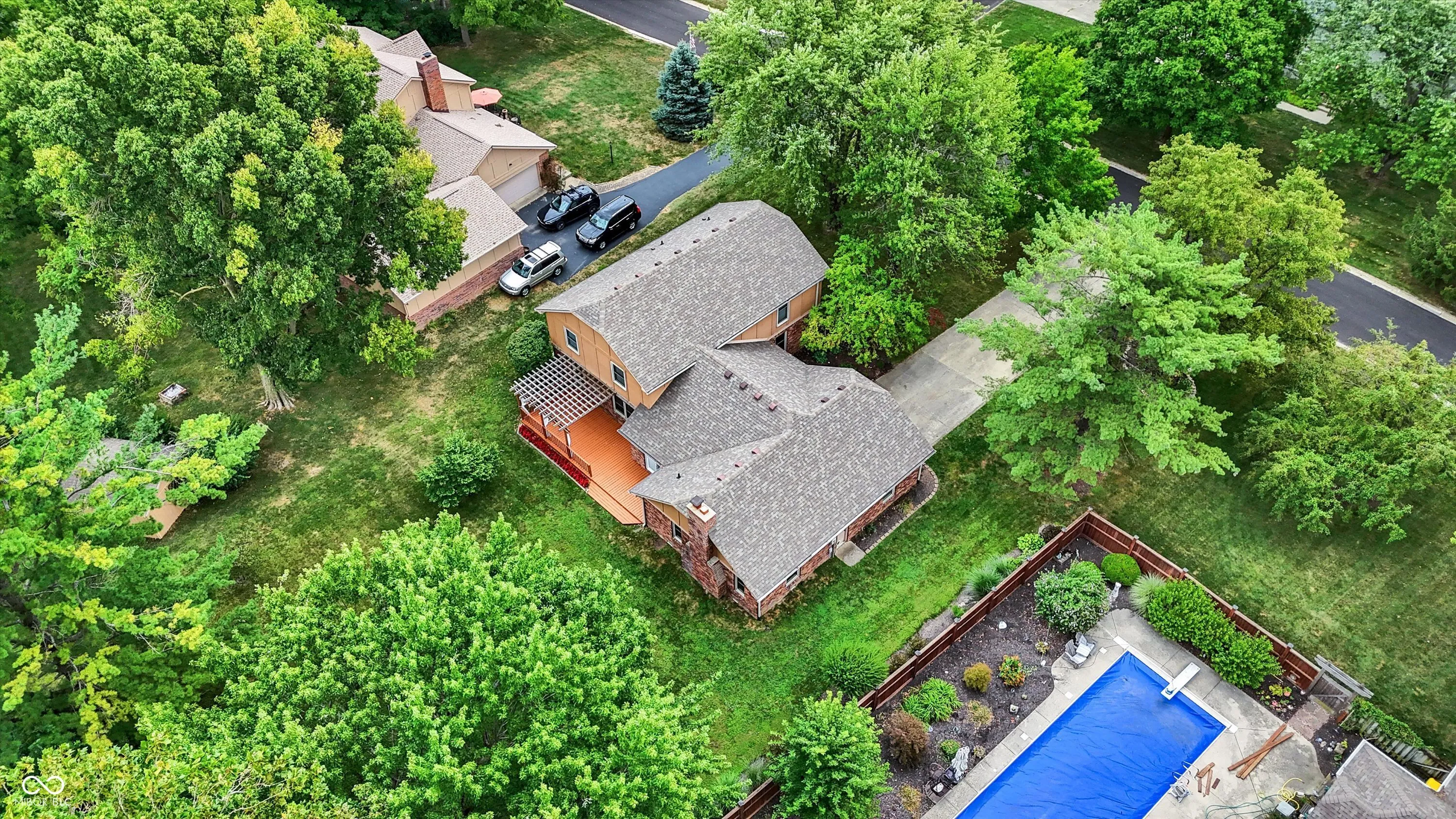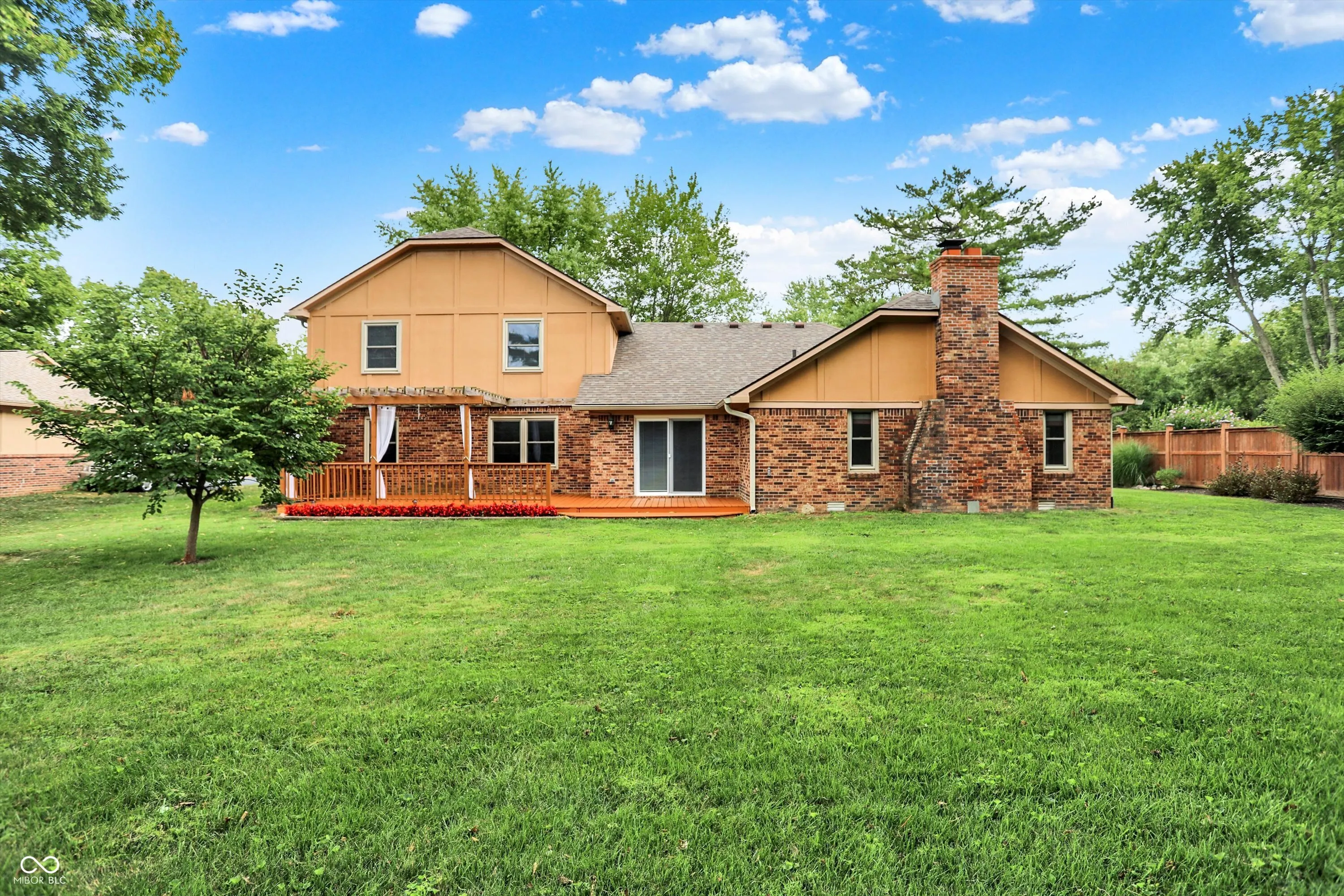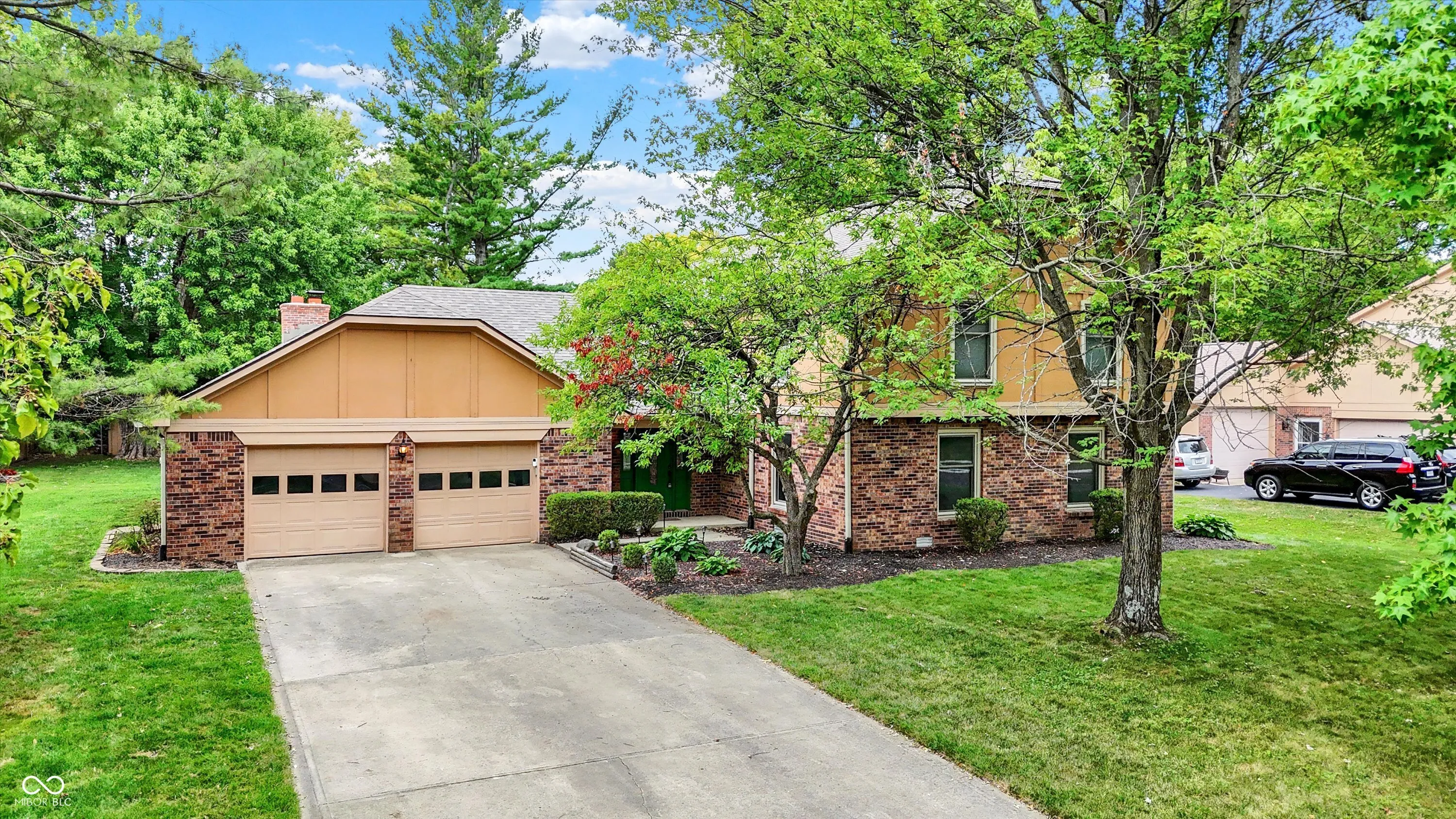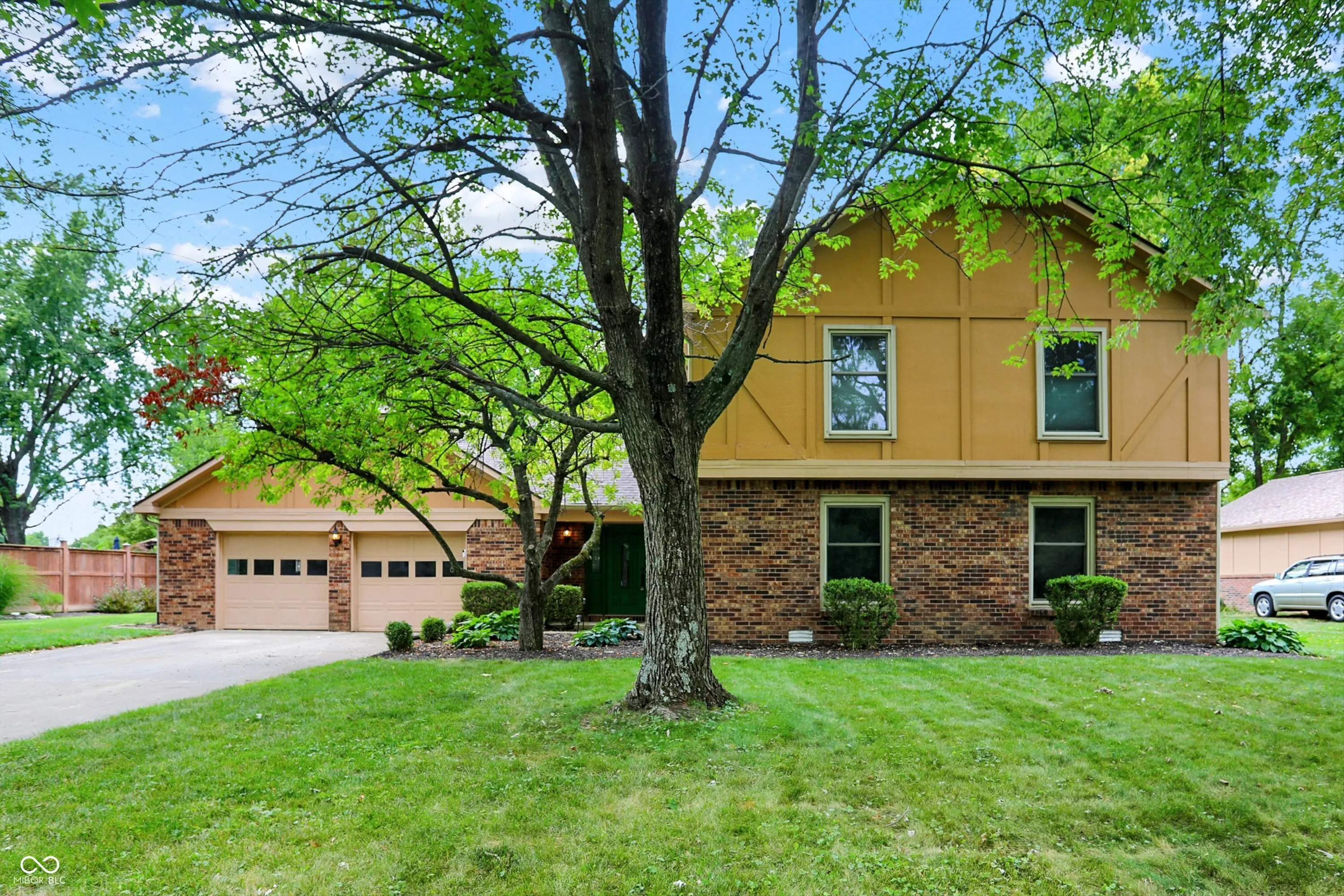 Welcome to Village Farms home with this totally updated 2-story beauty! Gorgeous details include: New LVP & carpet throughout, spacious family room with cozy fireplace, mud room off the garage and oversized primary bedroom with W/I closet & ensuite bath! The totally updated kitchen features: SS appliances, large island with pendant lighting, custom backsplash & tons of cabinet storage. Dining room table space allows a lot of flexibility & the many windows give natural light. A large living room allows flexibility for 2nd gather space, home office or entertainment space. Check out these updates: Roof, gutter, leaf guards(2020), electric water heater (2024), new flooring & carpet (2023), heat pump(2023), refrigerator(2023), water softener (2022), updated kitchen (2021), rebuilt deck (2020), main level full bath (2019) and primary bed and bath room and the laundry space all renovated recently. The 2nd floor spacious primary includes a large W/I closet, large tub, separate shower and dual vanity. 2 other upper bedrooms share a fully updated bath, while the 2 main level bedrooms share 1.5 baths. Your spacious & private backyard includes an updated deck, a large shed & many mature trees. Neighborhood amenities include pool, tennis, basketball, playground, convenient location close to shopping & dining, easy access to the Monon Trail, and all that surrounding communities have to offer! Some photos are virtually staged.