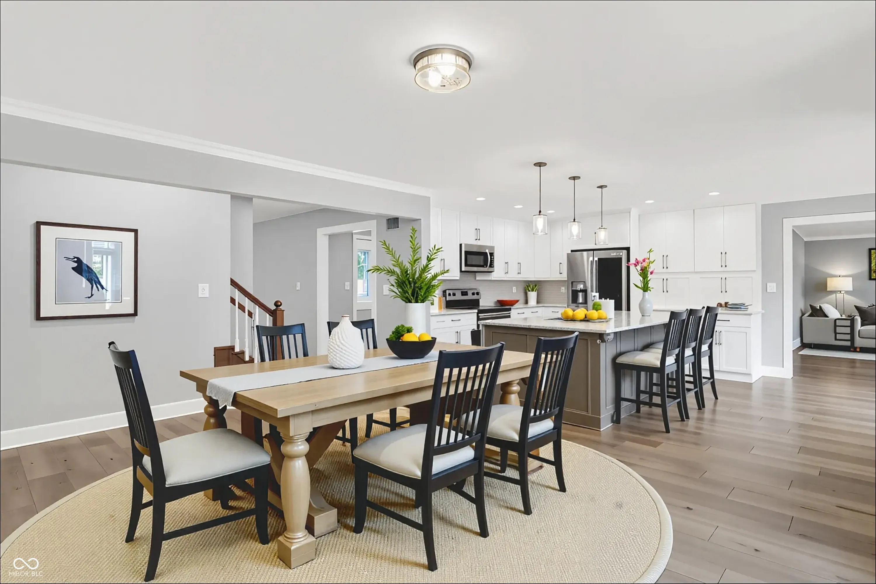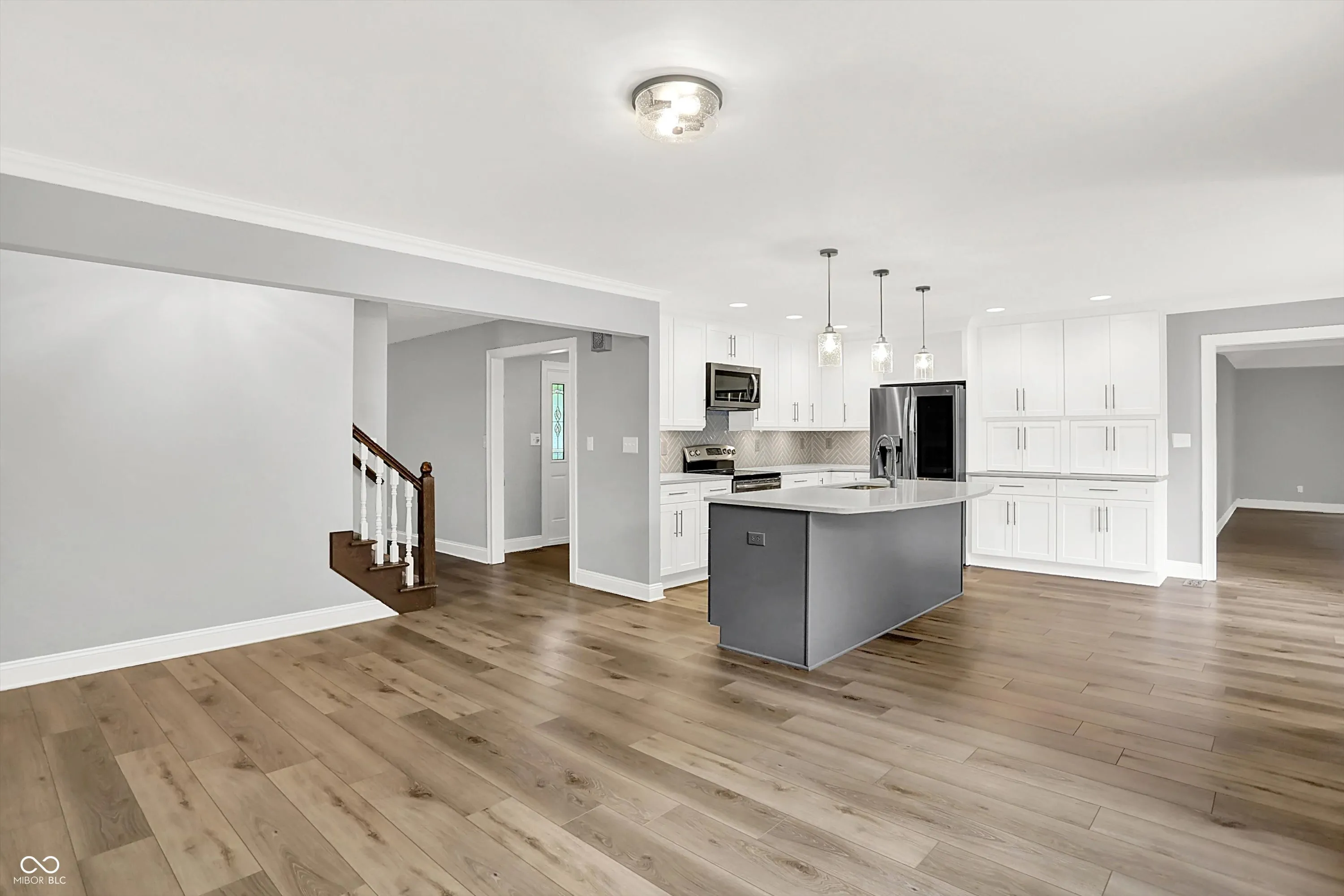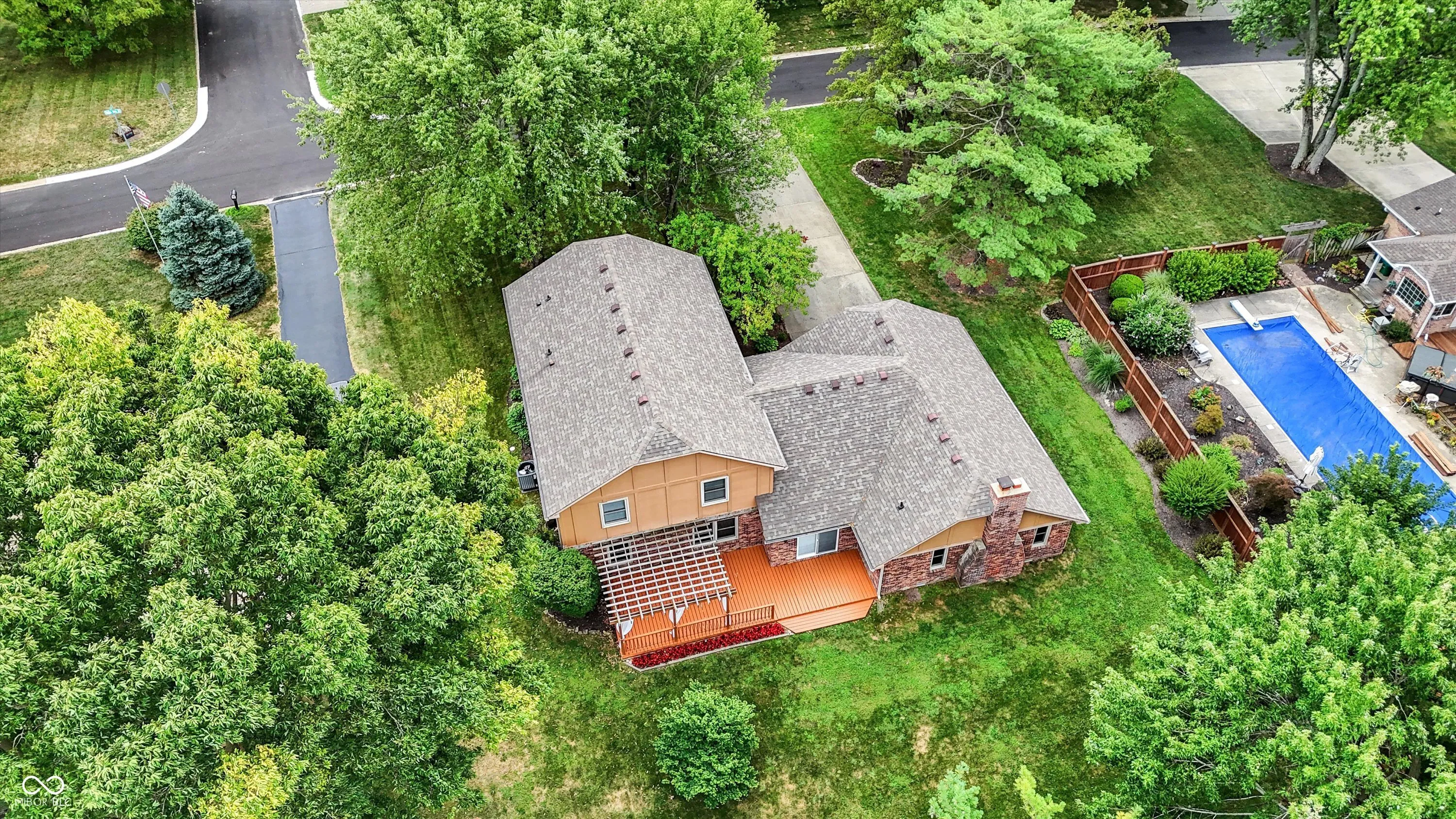 Welcome to Village Farms home with this totally updated 2-story beauty! Gorgeous details include: New LVP & carpet throughout, spacious family room with cozy fireplace, mud room off the garage and oversized primary bedroom with W/I closet & ensuite bath! The totally updated kitchen features: SS appliances, large island with pendant lighting, custom backsplash & tons of cabinet storage. Dining room table space allows a lot of flexibility & the many windows give natural light. A large living room allows flexibility for 2nd gather space, home office or entertainment space. Check out these updates: Roof, gutter, leaf guards(2020), electric water heater (2024), new flooring & carpet (2023), heat pump(2023), refrigerator(2023), water softener (2022), updated kitchen (2021), rebuilt deck (2020), main level full bath (2019) and primary bed and bath room and the laundry space all renovated recently. The 2nd floor spacious primary includes a large W/I closet, large tub, separate shower and dual vanity. 2 other upper bedrooms share a fully updated bath, while the 2 main level bedrooms share 1.5 baths. Your spacious & private backyard includes an updated deck, a large shed & many mature trees. Neighborhood amenities include pool, tennis, basketball, playground, convenient location close to shopping & dining, easy access to the Monon Trail, and all that surrounding communities have to offer! Some photos are virtually staged.