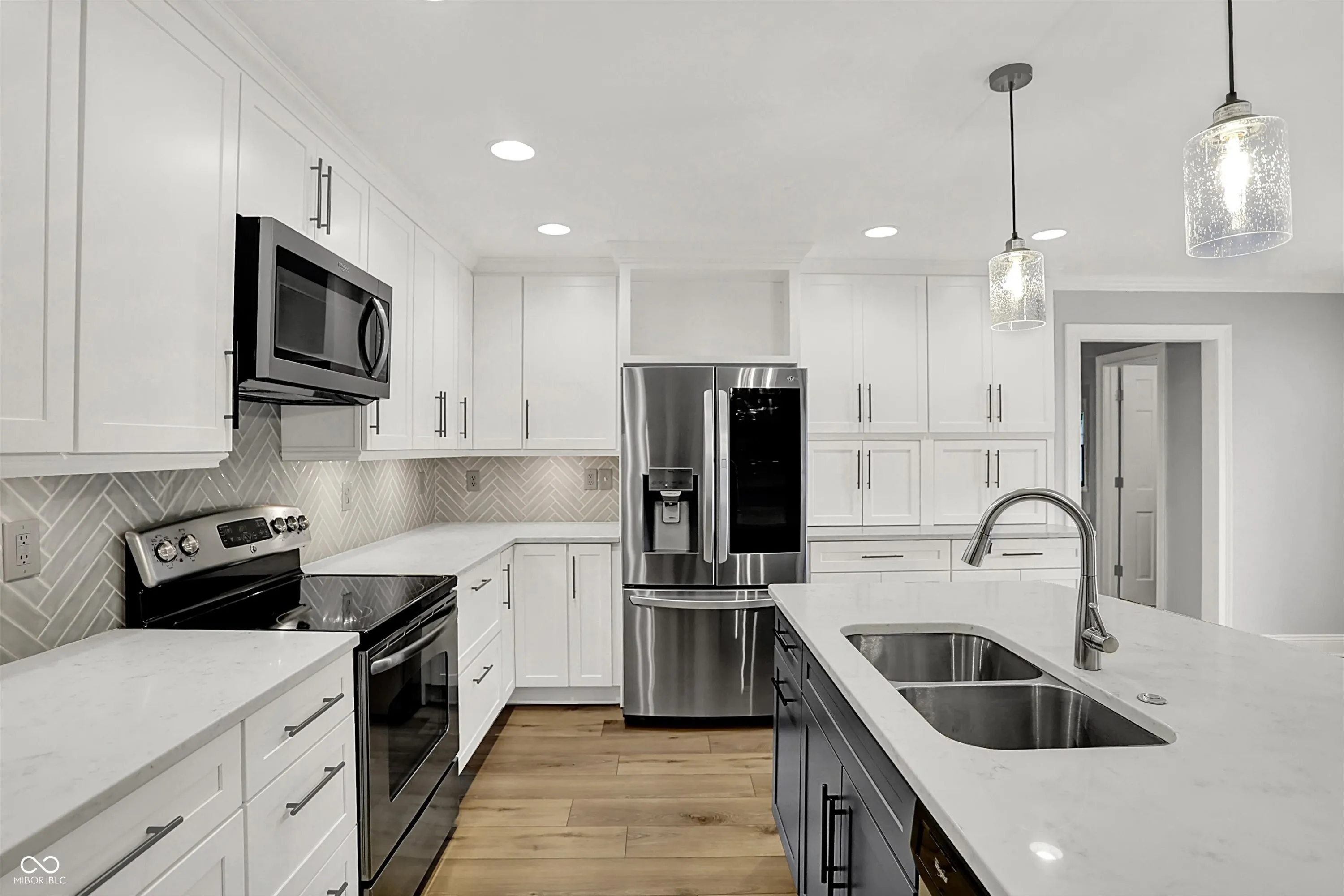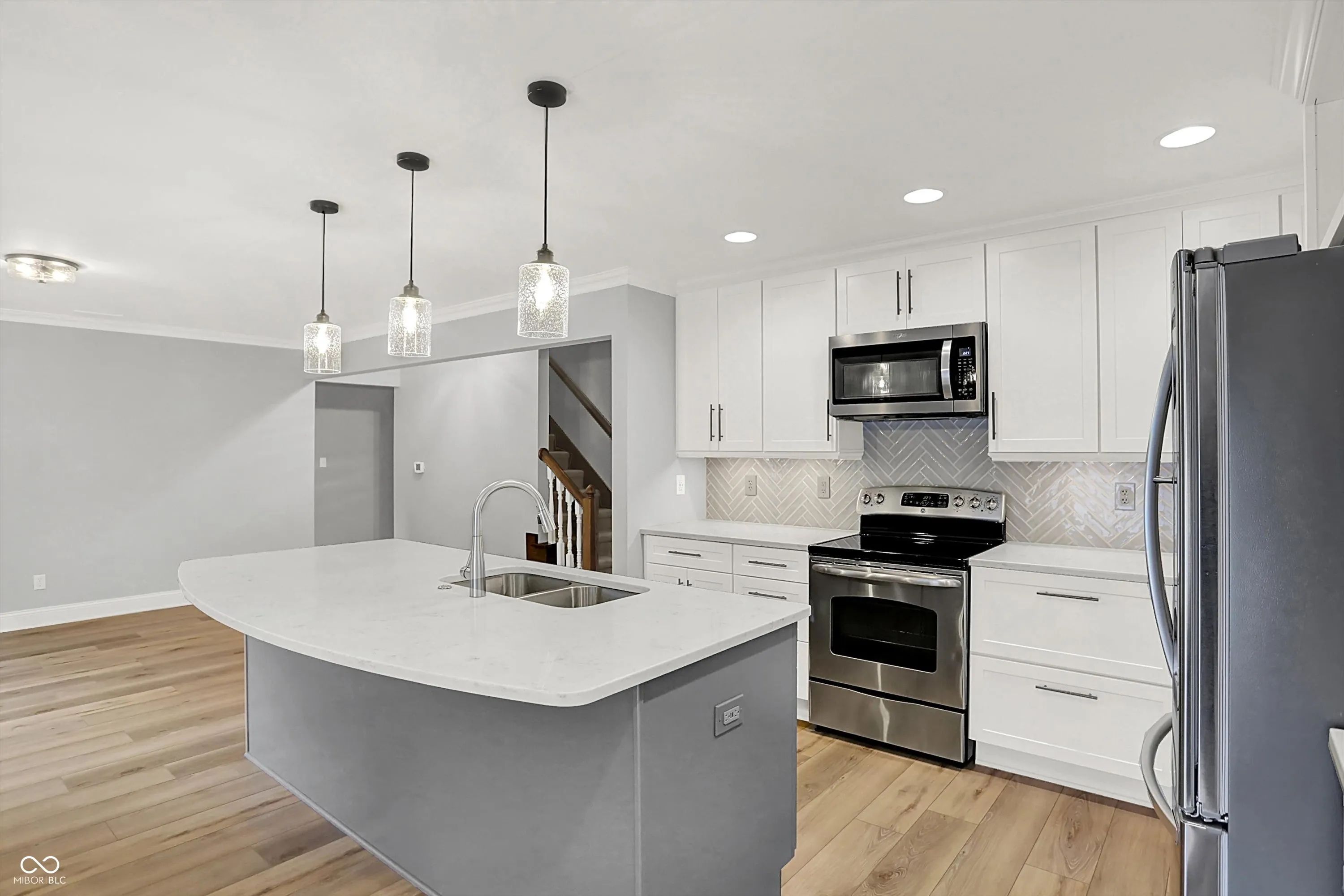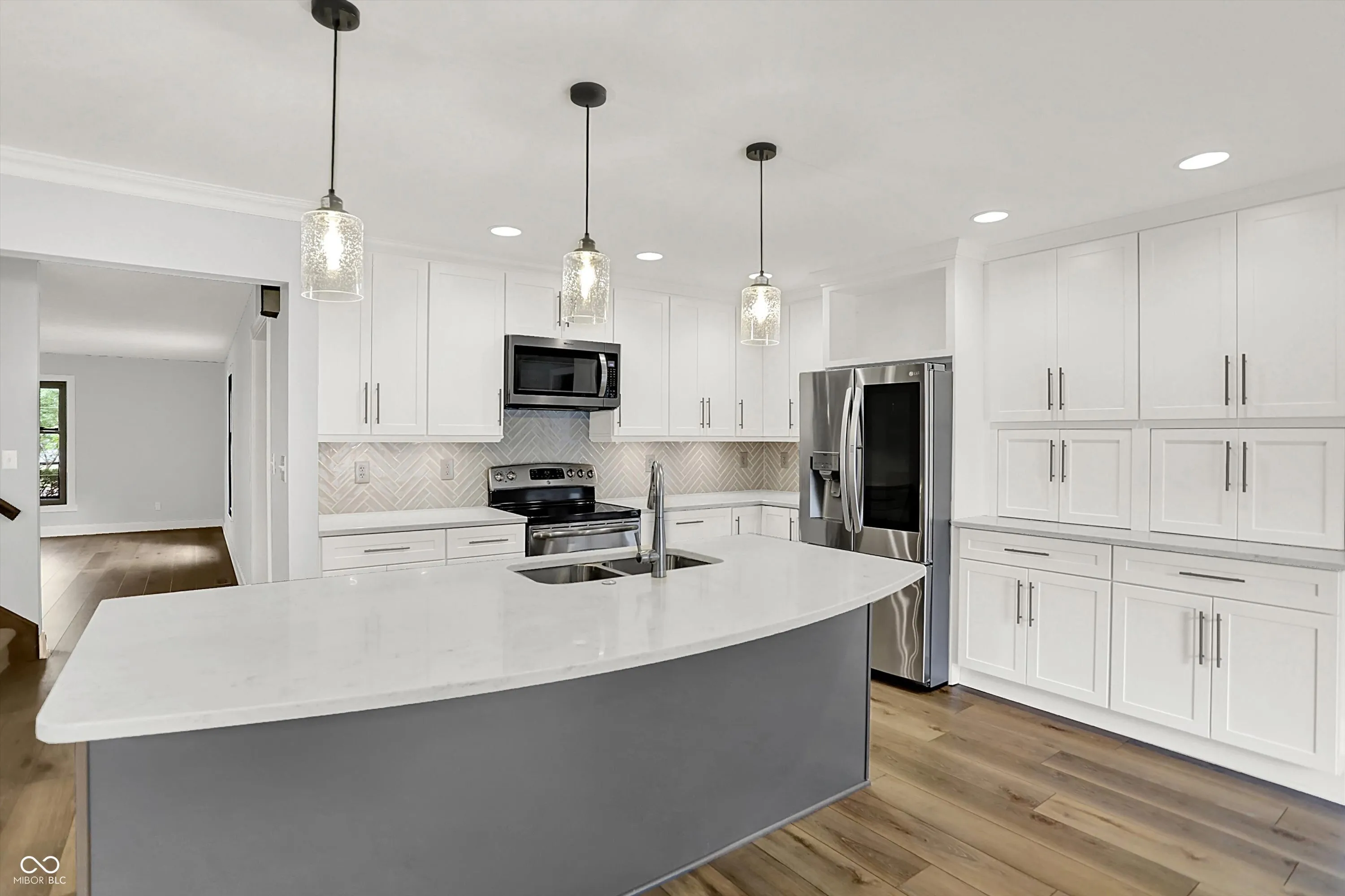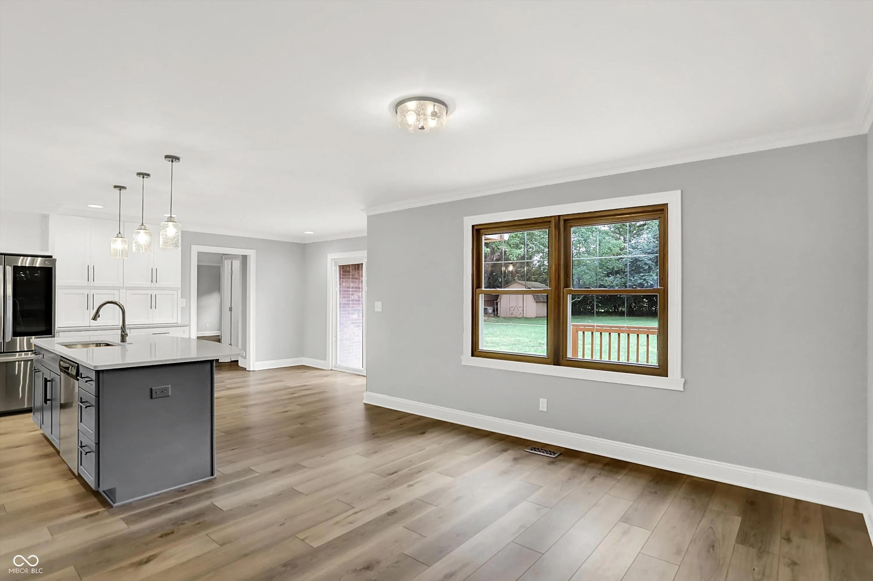 Welcome to Village Farms home with this totally updated 2-story beauty! Gorgeous details include: New LVP & carpet throughout, spacious family room with cozy fireplace, mud room off the garage and oversized primary bedroom with W/I closet & ensuite bath! The totally updated kitchen features: SS appliances, large island with pendant lighting, custom backsplash & tons of cabinet storage. Dining room table space allows a lot of flexibility & the many windows give natural light. A large living room allows flexibility for 2nd gather space, home office or entertainment space. Check out these updates: Roof, gutter, leaf guards(2020), electric water heater (2024), new flooring & carpet (2023), heat pump(2023), refrigerator(2023), water softener (2022), updated kitchen (2021), rebuilt deck (2020), main level full bath (2019) and primary bed and bath room and the laundry space all renovated recently. The 2nd floor spacious primary includes a large W/I closet, large tub, separate shower and dual vanity. 2 other upper bedrooms share a fully updated bath, while the 2 main level bedrooms share 1.5 baths. Your spacious & private backyard includes an updated deck, a large shed & many mature trees. Neighborhood amenities include pool, tennis, basketball, playground, convenient location close to shopping & dining, easy access to the Monon Trail, and all that surrounding communities have to offer! Some photos are virtually staged.