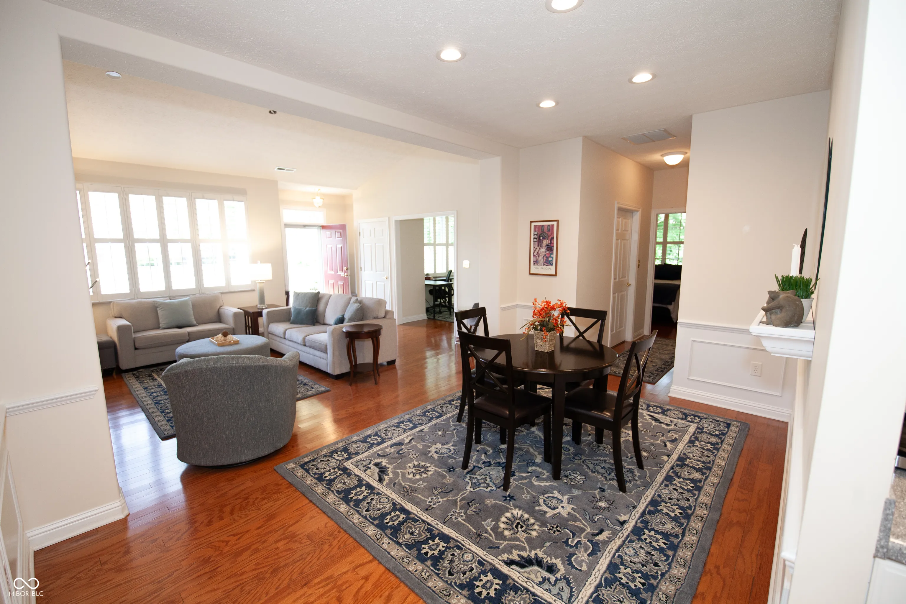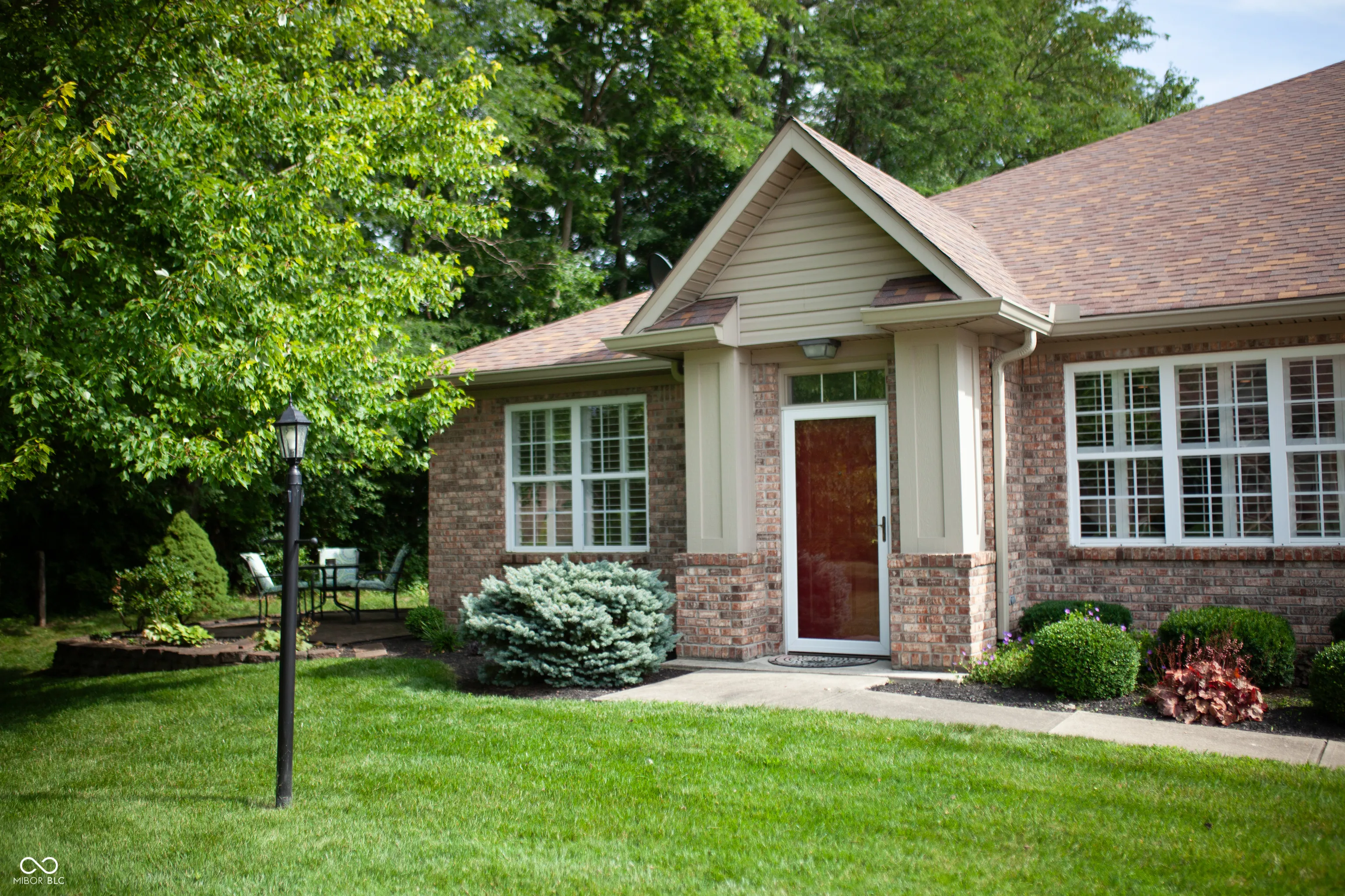 Meticulously Maintained & Move-In Ready! This beautifully upgraded home offers a perfect blend of comfort, style, and convenience. From the moment you arrive, you’ll notice the quality craftsmanship and thoughtful design throughout. Plantation shutters, gleaming hardwood floors, and custom built-ins in the second bedroom and den add both character and functionality. The Great Room and Kitchen are accented by decorative plant shelves, creating a warm and inviting atmosphere. The spacious Kitchen features ample cabinetry, generous counter space, a center island, and a pantry-ideal for both everyday living and entertaining. The Primary Suite offers a walk-in closet, double vanity, walk-in shower, and a linen closet, with raised toilets and 36″ wide doors enhancing accessibility throughout the home. Recent updates provide peace of mind and modern comfort, including a new water heater with warranty, new dishwasher, new garbage disposal, new reverse osmosis water purification system, new garage door opener with keypad, and a new thermostat. You’ll also benefit from newer countertops, sink, faucet, refrigerator, air conditioner, furnace, and water softener. The laundry room includes storage cabinets and a utility sink, while the garage is equipped with shelving, storage, and a workbench-ready for your hobbies or additional organization. Step outside to the serene paver patio, perfectly situated along a treeline, offering a peaceful retreat for relaxation. Living here means enjoying truly low-maintenance living, with the HOA covering building hazard insurance, common area insurance, lawncare, all grounds and exterior building maintenance, snow removal, trash removal, as well as water and sewer services. This is a rare opportunity to own a move-in-ready home that’s been cared for with pride and thoughtfully updated for today’s lifestyle.