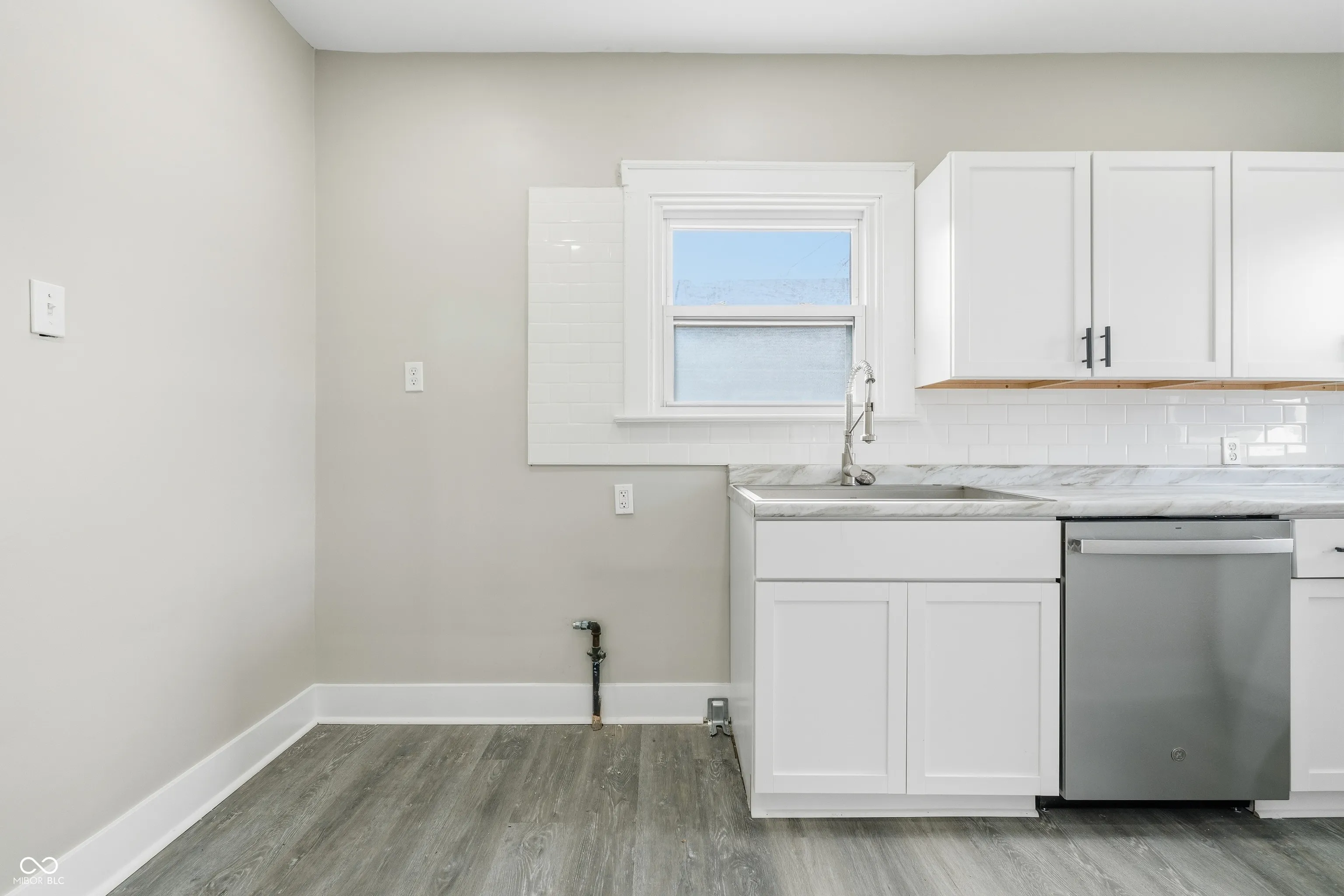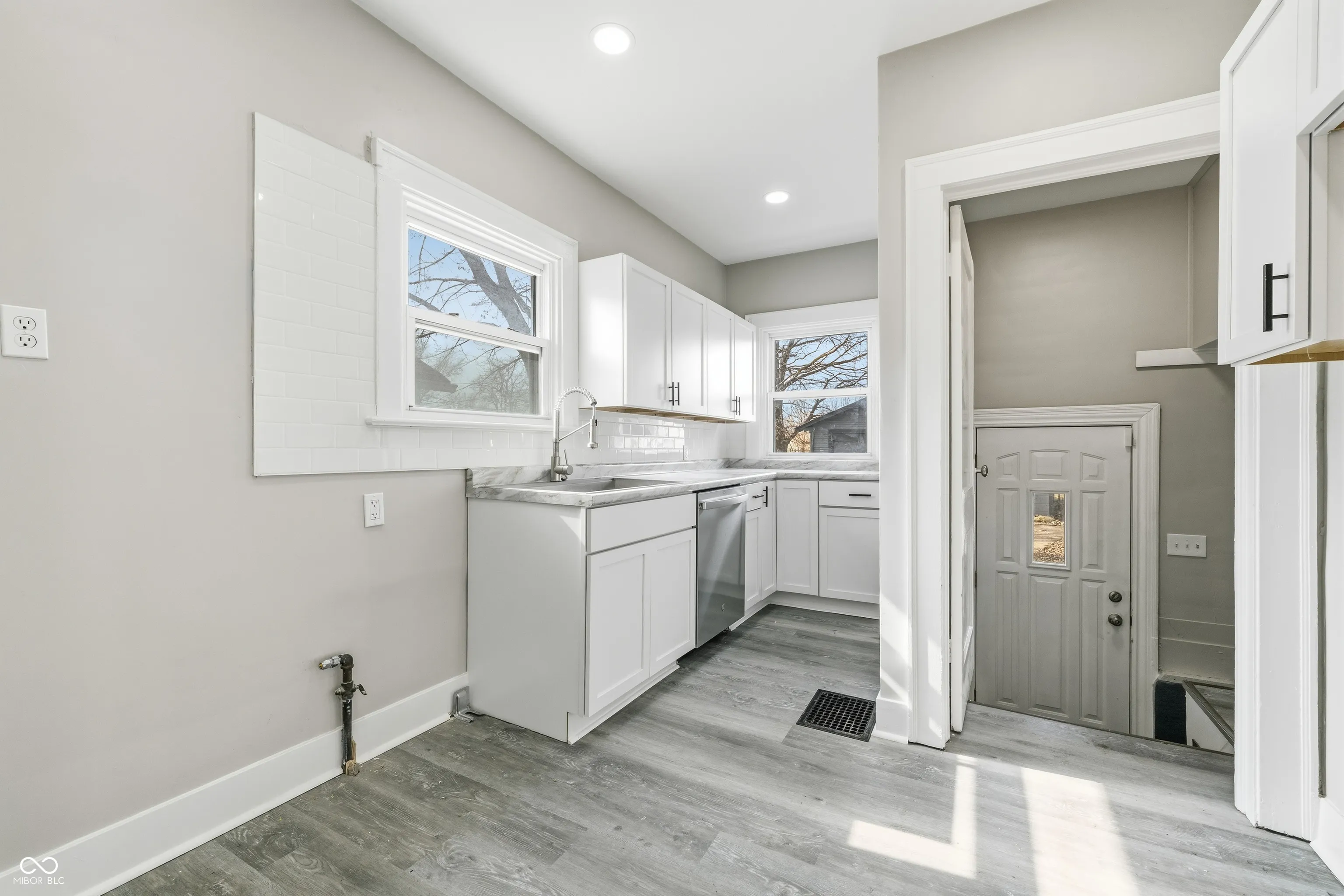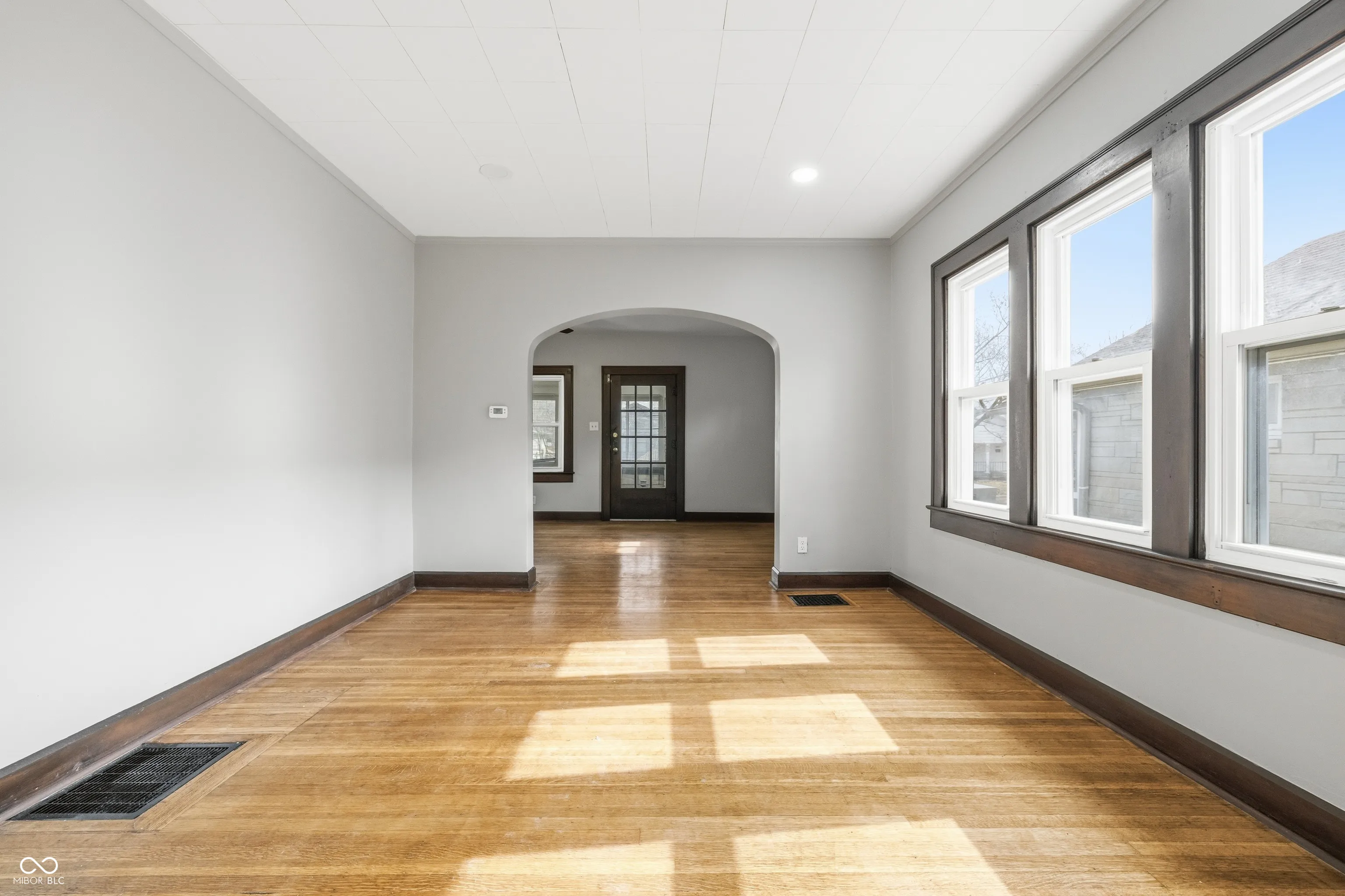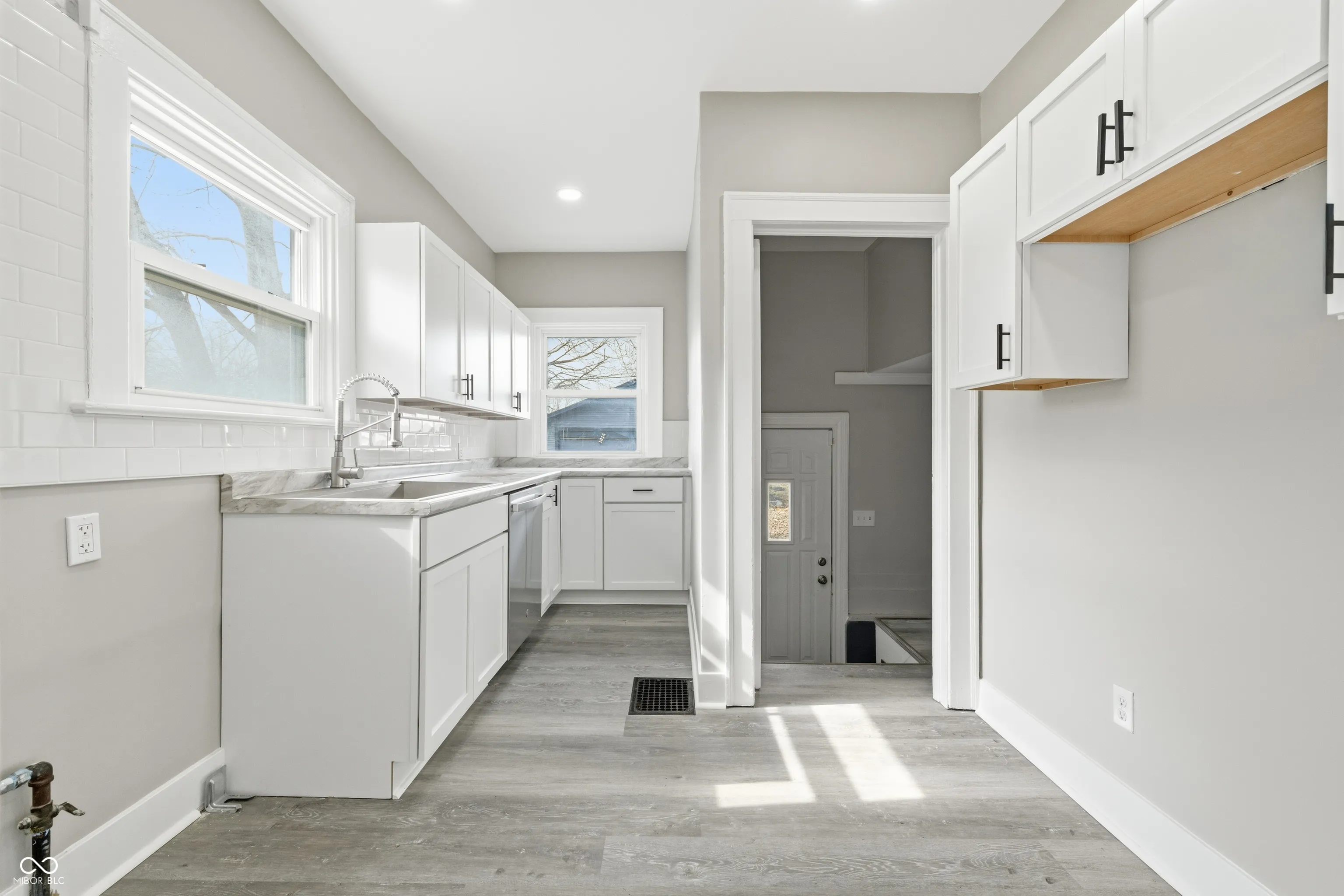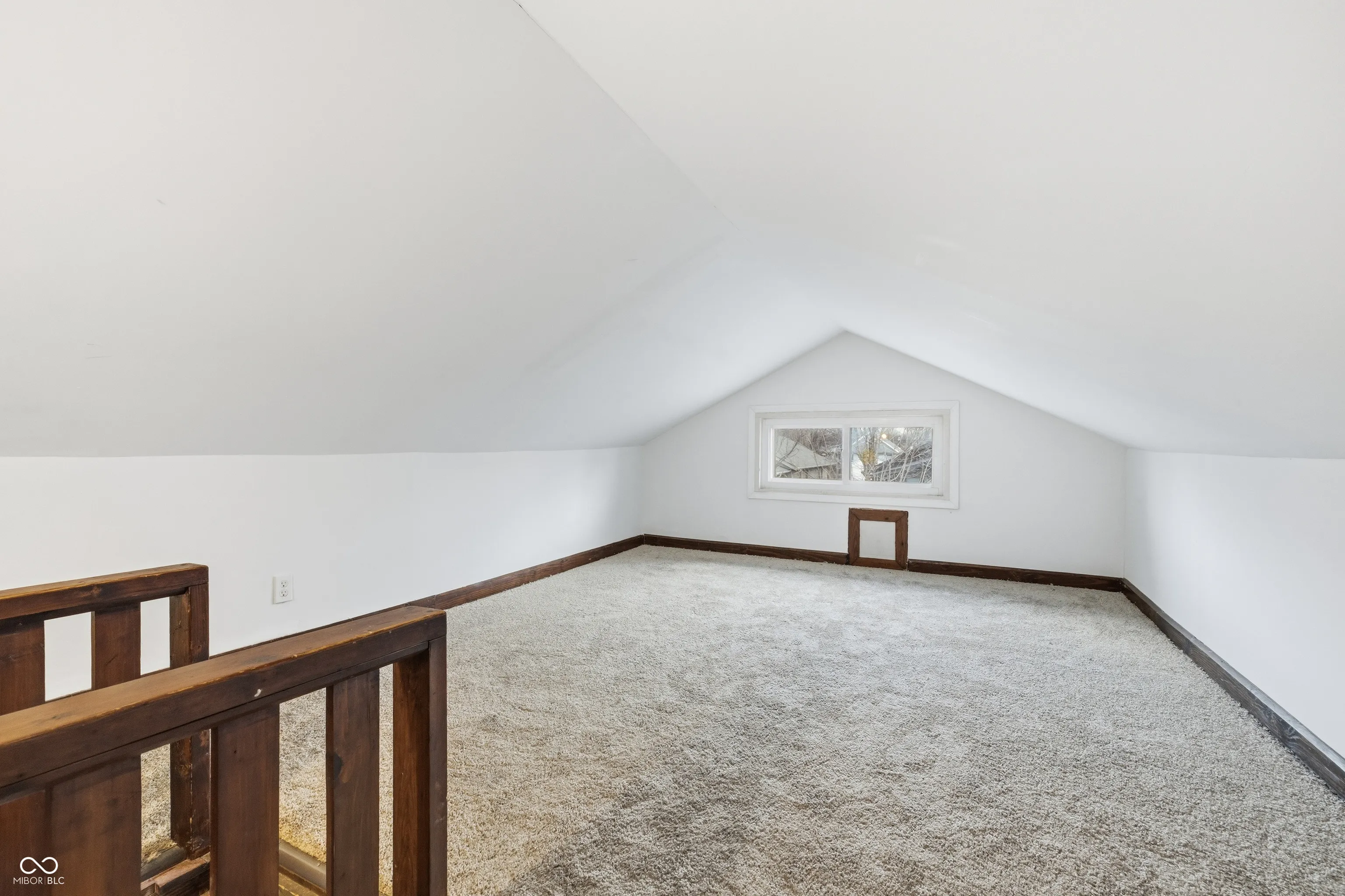 Welcome to this beautifully renovated 2 bed 1 bath limestone house in Indianapolis. Starting on the exterior you will find a new AC unit, new garage door, new gutters, freshly stained trim, and manicured landscaping. Head inside to a covered sunroom area with new flooring and large, open windows. The home features freshly re-stained hardwood flooring. The kitchen has new LVP flooring, new cabinets, new faux marble countertops, and new stainless steel appliance suite with gas stove. The bedrooms feature spacious closets with plenty of storage. Inside the second bedroom is access to the upstairs loft area with new carpet and drywall. The bathroom has been completely redone with new tub, vanity, toilet, and LVP flooring. The basement has been sealed and tuck-pointed. Washer and dryer included. Close to local shopping and dining. No HOA. Matching fridge and microwave included in sale.
