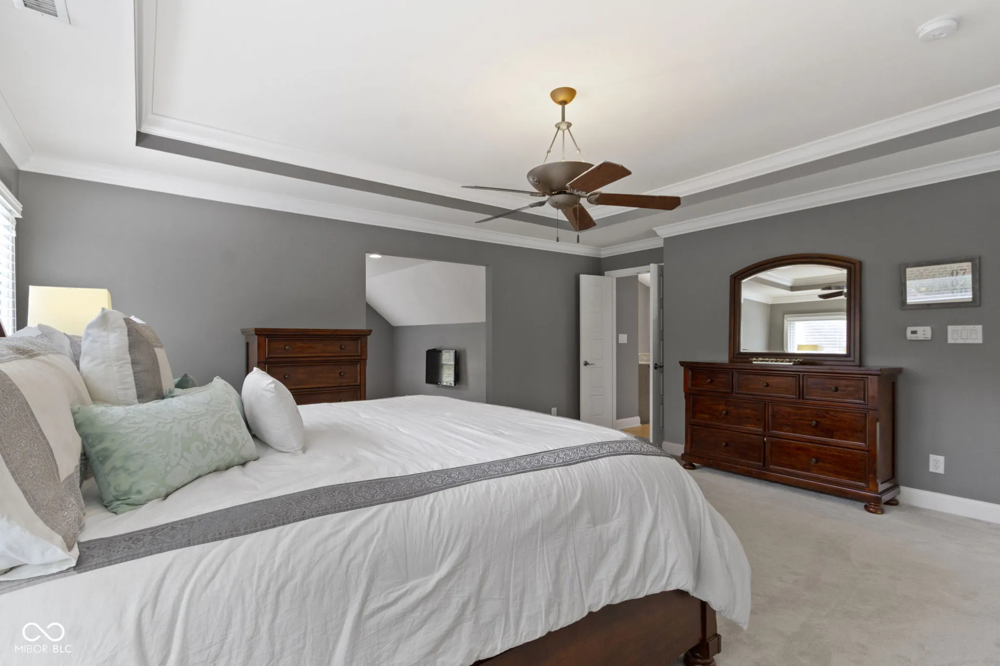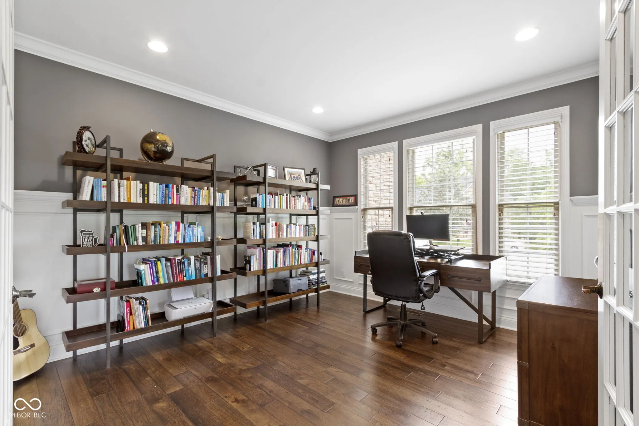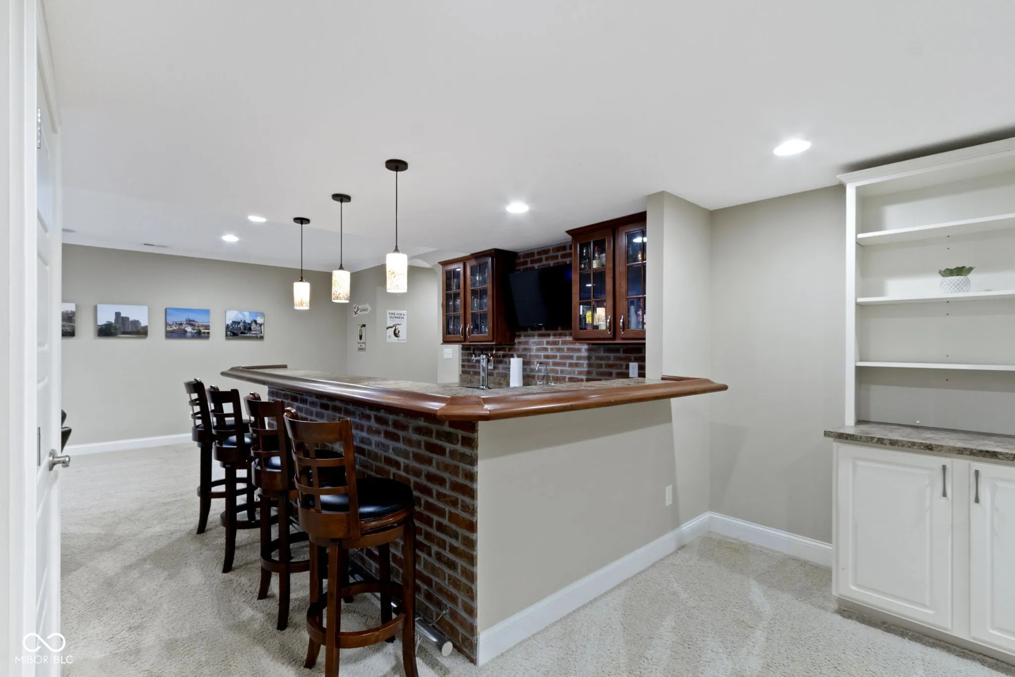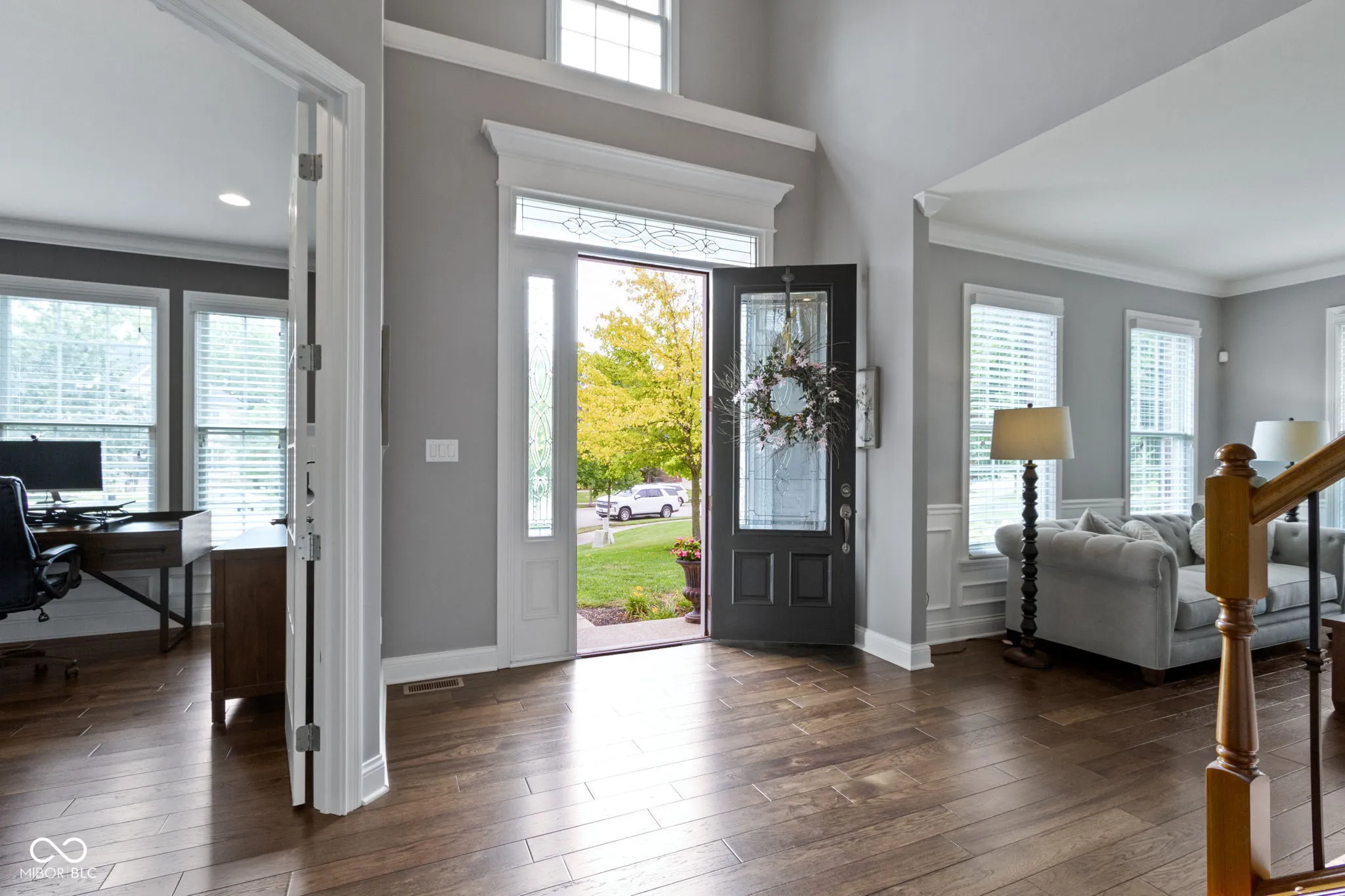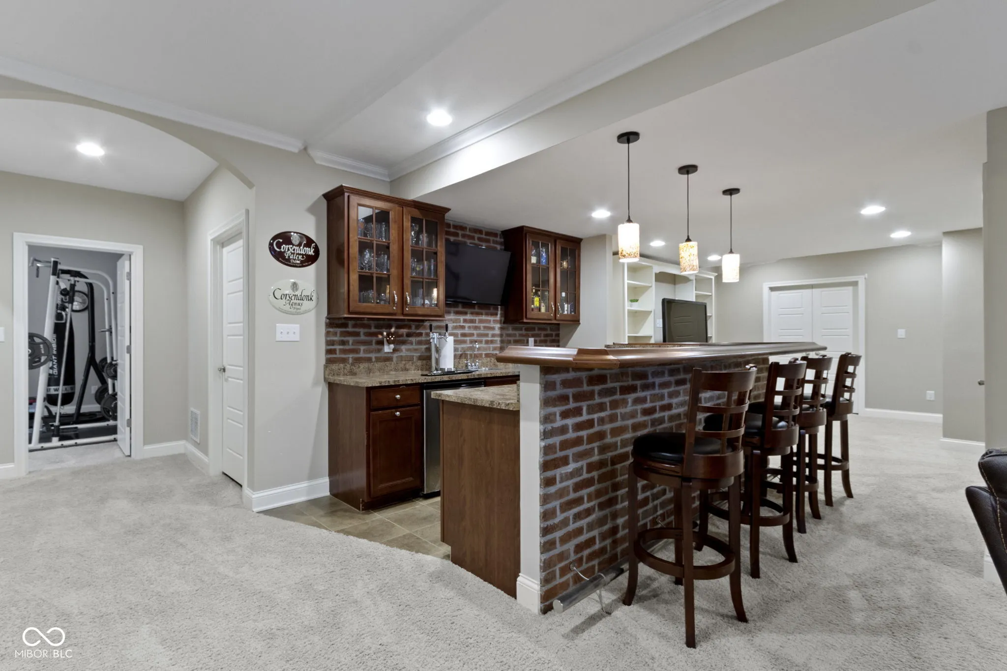 Nestled at the end of a culdesac on a premier lot, this timeless 5 bedroom/4.5 bath home awaits you in one of Fishers most desirable neighborhoods-the WOODS of THORPE CREEK! Upon arrival, you are greeted with gleaming hardwood floors and soaring 2 story foyer with detailed trim work. French double doors lead to your private office with beautiful wainscotting. A thoughtfully designed floor plan offers a separate living room and a formal dining room complete with new lighting. Large eat in kitchen is a chef’s delight offering an abundance of updated white shaker cabinets, tile backsplash, granite, gas cooktop in the center island, and all stainless steel appliances ready to entertain! Speaking of entertaining, directly off the kitchen enjoy intimate gatherings in the ADDED three season room with cozy gas fireplace perfect for many months of the year! Two story great room is drenched in natural light by a wall of windows with coffered ceilings, stone gas fireplace and family friendly staircase. Upstairs find your owner’s suite, three addt’l bedrooms with BRAND NEW carpet. Owner’s suite includes a large sitting room, raised dual sinks, w/in shower, soaking tub, and WIC with adjustable wood shelving. Don’t miss the Andersen wood core windows with detailed casings. Open walkway leads to 3 additional bedrooms that are generously sized and one with private bath. All bedrooms offer walk in closets! ESCAPE downstairs to your full finished basement with a wet bar, beverage fridge, billiard area, family/rec room and an additional bedroom with full bath. A true extension of the home with storage and closets. OUTSIDE is your amazing backyard with paver patio and firepit not to mention a large wooded side lot for added privacy, a space perfect for playset or a future pool! Home is situated on .47 acre and includes 3 car side load garage. Separate family entrance into laundry and mudroom! NEW Roof 2025 and HVAC 2023. Perfect location, don’t miss this one!