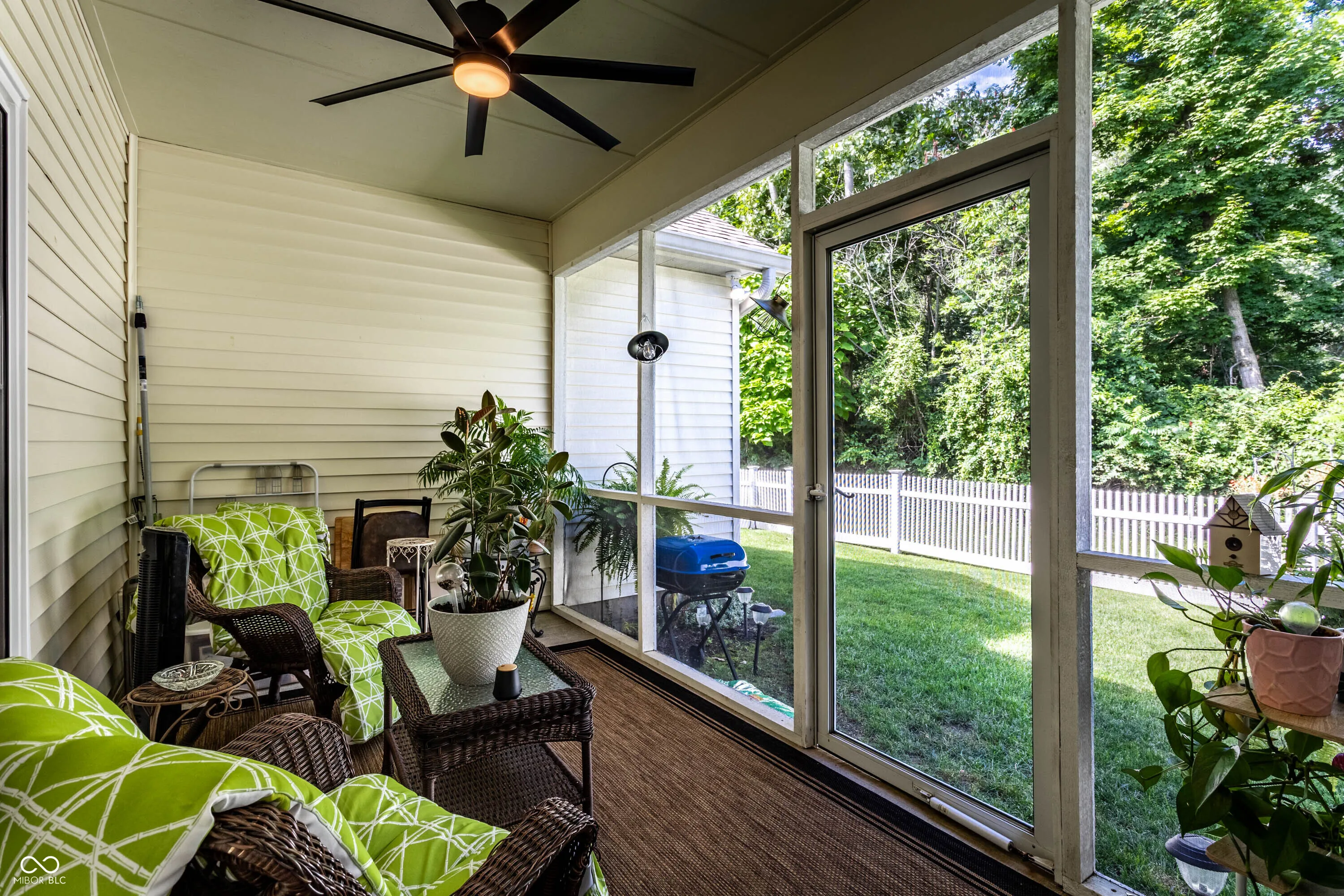Tucked in the quiet Woodsong community, this brick ranch offers a serene setting with easy access to shopping and dining. Inside, a spacious entry leads to a large great room featuring hardwood floors, a fireplace, and an open layout perfect for gathering. The kitchen and adjacent dining area overlook the fenced backyard and connect seamlessly to a screened-in patio-ideal for relaxing and enjoying the peaceful surroundings. The generous primary suite includes a walk-in closet and ensuite with dual vanity and full shower. Two additional bedrooms and a full hallway bath provide plenty of space for guests or home office needs. An attached two-car garage and separate laundry room add everyday convenience. With newer roof, furnace, flooring, and paint – don’t miss the opportunity to make this well-designed home yours in one of the area’s most peaceful neighborhoods.