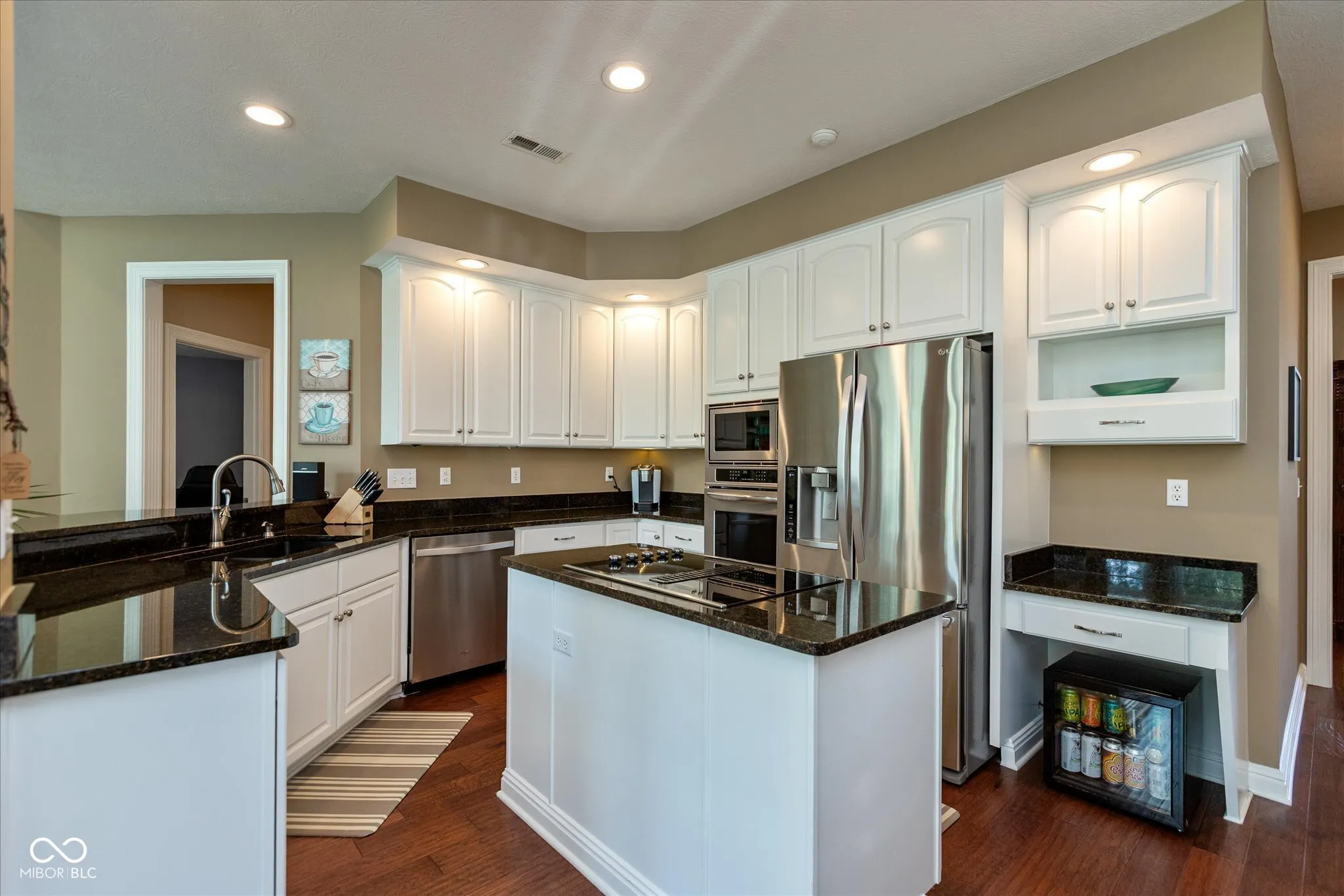 Nestled on a culdesac in the desirable Woods n Meadows subdivision, this custom built 4 bedroom, 3 bath, brick ranch home offers style, comfort, and functionality. The home, which has been meticulously maintained, features an inviting open layout with gorgeous hard wood floors allowing effortless movement between spaces. The family room, designed for both relaxation and entertainment, features a two sided fireplace that adds warmth and charm to both the family room and sitting area. The kitchen is a chef’s delight, boasting sleek granite countertops, ample cabinetry and a layout making it perfect for both everyday meals and elaborate gatherings. With a formal living room and dining room you have endless options on how to utilize the space that is sure to be an entertainers dream. The spacious primary bedroom offers a touch of elegance with a private ensuite bathroom featuring a whirlpool tub, separate shower, double sinks and custom walk-in closet. In addition you will feel like you have your own private oasis with access to the covered patio from the primary bedroom. The three additional bedrooms all feature walk-in closets, there is plenty of space for residents and guests alike. Step outdoors to escape and discover an inviting outdoor living space, complete with a stamped concrete patio and an outdoor dining area, perfect for enjoying peaceful evenings. The 3 car garage has and an EV car charger, epoxy floors, cabinets, shelving and slat walls to keep everything thing organized. With its thoughtful design, quality finishes, and prime location, this home is ready to welcome you.