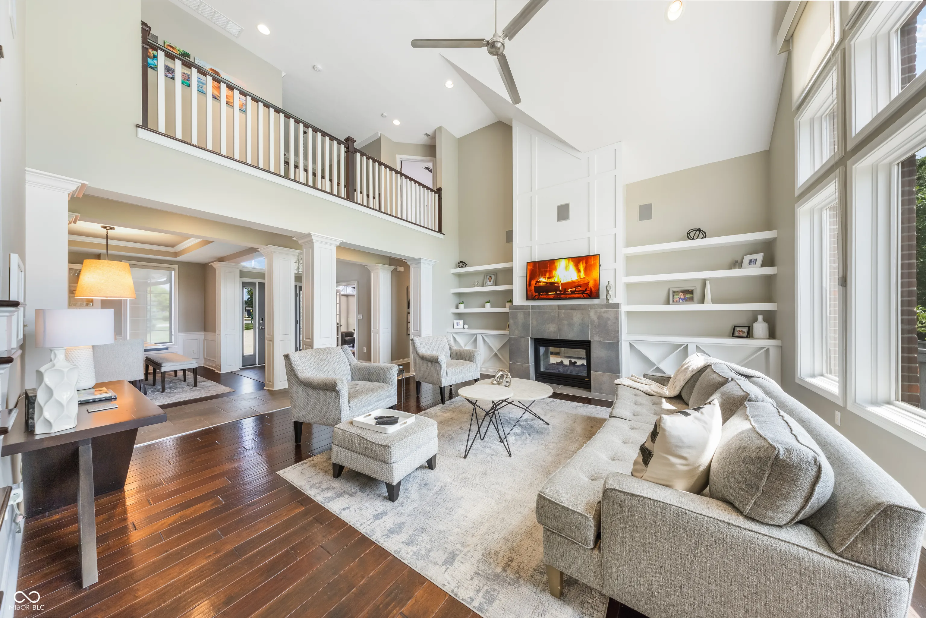 BEST Buy on Sagamore Golf Course!!! Enjoy Dramatic Golf Course Views on the 9th Green of Sagamore Golf Course in this custom 4 Bedroom on a Quiet Cul-De-Sac Lot!!! The moment you enter gorgeous hardwoods run seamlessly throughout the Main Level. A Private Office is tucked to the left of the foyer w/French Doors, built-in’s and a Coffered Ceiling. A Formal Dining Room is to the right of the Foyer with built-in’s and stunning focal wall. This home is rich in detail, featuring elegant moldings throughout and a striking 2-story Great Room with a towering wall of windows framing the sweeping fairway views. The Main-Level Primary Suite is just past the Main Living Areas offering a Private Deck, Fireplace, Soaring Ceiling, and a Luxurious En-Suite with a WIC, LED Lit Mirrors, Double Vanity, Soaking Tub, and Walk-In Shower. The Heart of the Home is the Gourmet Kitchen Showcasing Jenn-Air Appliances, Center Island, Pantry, and Breakfast Room that opens to the Sunroom. Upstairs, you’ll discover 2 BD and 2 Full Bath perfect for the teens to get away. The Finished Lower Level is ideal for entertaining. It includes a Rec Room w/ Fully Equipped Bar and Island allowing for additional seating. A Full Bath with walk-in shower, 4TH bedroom, and Media Room to sit back and relax with family & friends. Outdoor Living is Exceptional with a Screened-In Porch, Two Rear Decks, Firepit & Golf Course Views from Sunrise to Sunset. With MULTIPLE UPDATES, SONOS Indoor & Outdoor System, SMART HOME features (lights, locks, doors, garage, cameras, alarm, sensors), a 3-car garage, irrigation system, and fenced-in rear this home has been meticulously maintained. Golf & Social Membership Available. Fantastic Neighborhood & Country Club Lifestyle await the next owner!