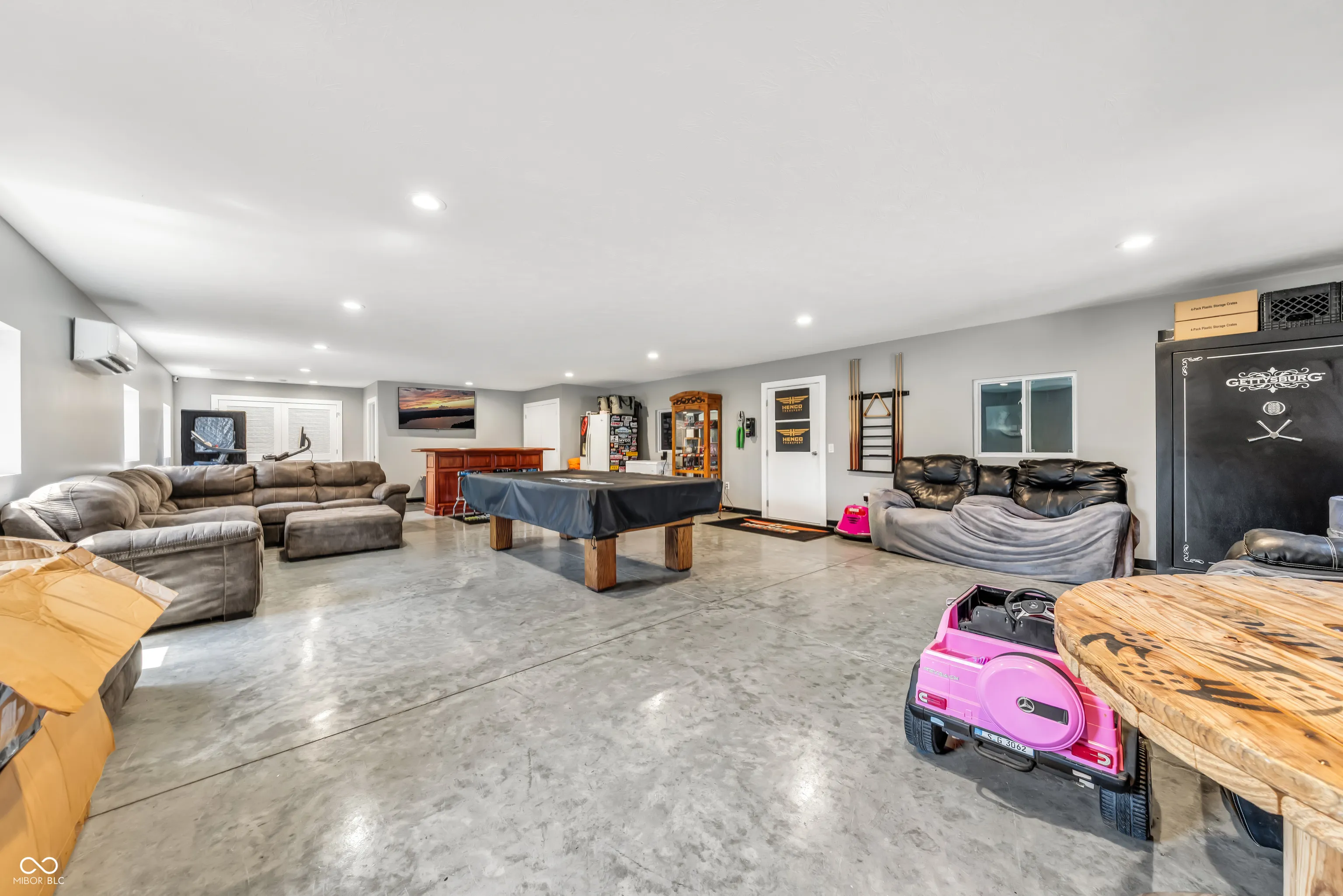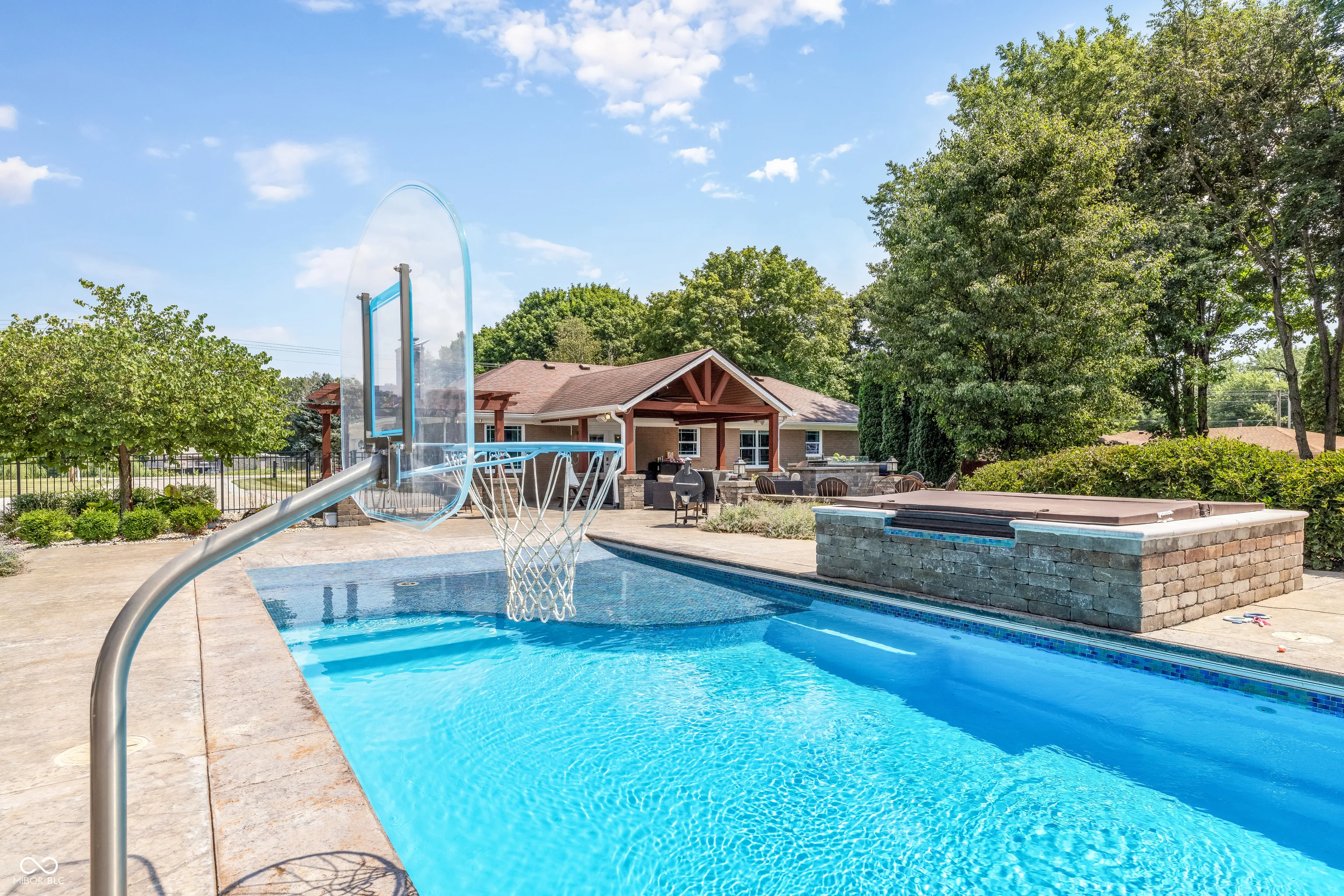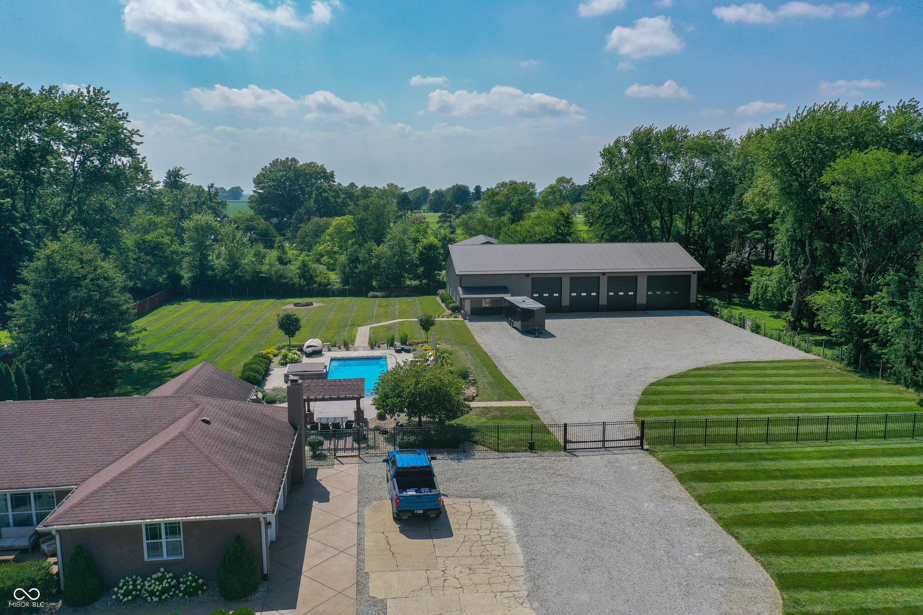 Welcome to your dream retreat! This beautiful all-brick ranch sits on 2 private acres with NO HOA, a 4,800 sf finished BARNDOMINIUM w/living area, finished full bath and laundry, in-ground salt water pool, finished basement and serene country views. Inside, you’ll find 3 spacious bedrooms, hardwood floors, and a finished basement with wet bar, family room, 3RD Bedroom and FULL BATH–perfect for extra living space or entertaining. Outstanding outdoor entertaining including bar w/integrated fire feature, kegerator, fire pit, salt water pool, hot tub, stamped concrete patio, pergola w/additional seating area and fenced-in backyard surrounded by mature trees for added privacy. The expansive barndominium offers room for your hobbies, storage, or even a home business. Located in the sought-after Greenfield Central School District, this rare property blends comfort, room to grow, functionality, and peaceful rural living-all just minutes from town.
