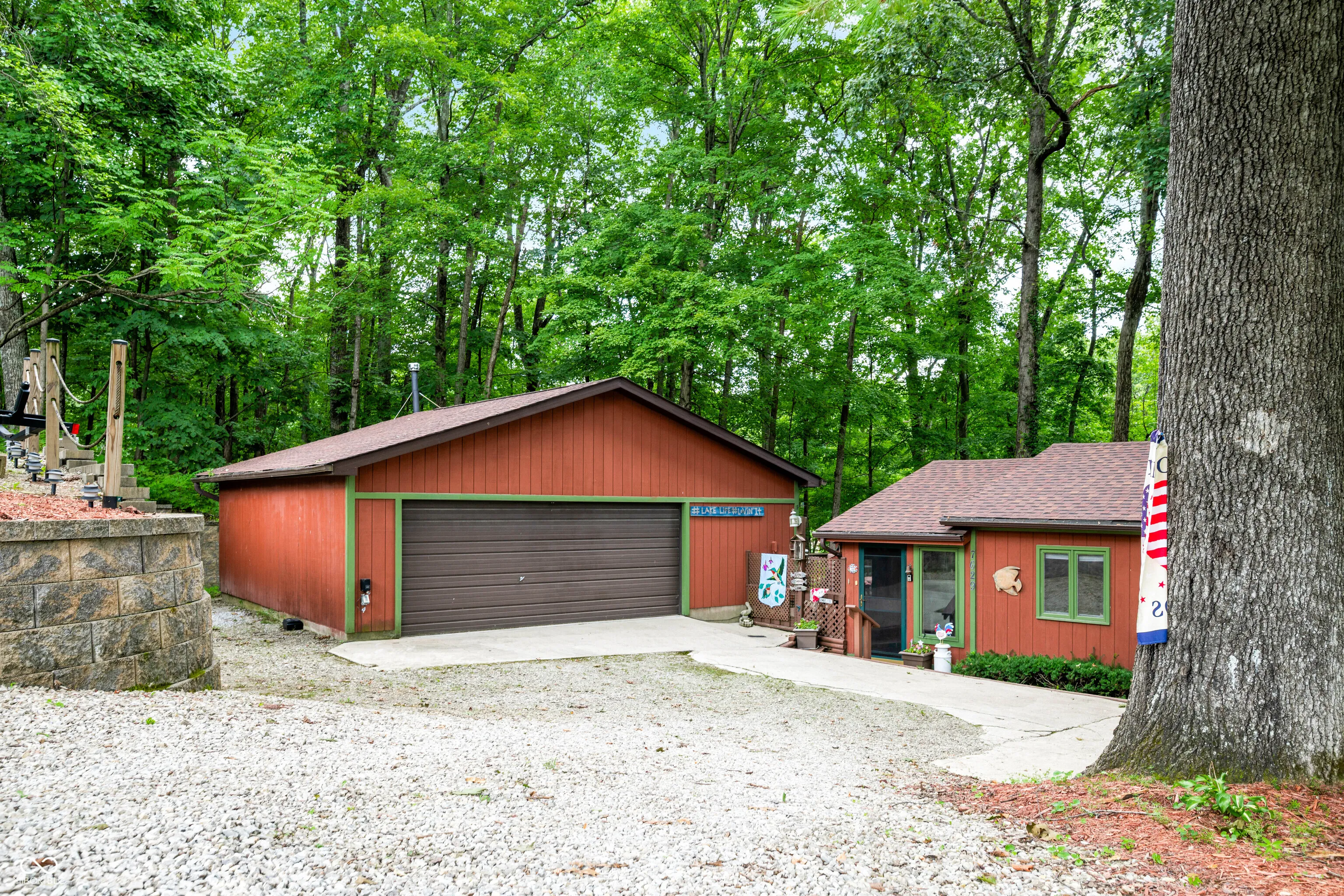 Welcome to this charming 2-bedroom, 2-bath turn key lake home that offers both comfort and space in a peaceful waterfront setting. This home includes two lots giving you ample privacy. The main level features two bedrooms, a well-equipped kitchen with functional appliances, a dining area, and a cozy living room-ideal for everyday living or weekend escapes. Just off the living space, you’ll love the 24×8 porch, perfect for relaxing with your morning coffee or evening drinks while enjoying serene lake views. Head downstairs to a spacious walk-out basement with a large great room-ideal for entertaining, extra sleeping space, or family gatherings. The lower level also includes a full bathroom, a laundry area, and access to the lower deck. Step outside to enjoy both upper and lower decks with steps that lead directly down to the water, where a private dock awaits. An additional extra room provides even more space for visitors, and a garage adds convenience and storage. At the water you will find over 100ft of Sweetwater Lake front. Tucked in a peaceful cove, this location is perfect for swimming, finishing, floating, or jumping on the boat to head out on the water. Whether you’re looking for a full-time residence or a weekend getaway, this lake home offers the best of both.