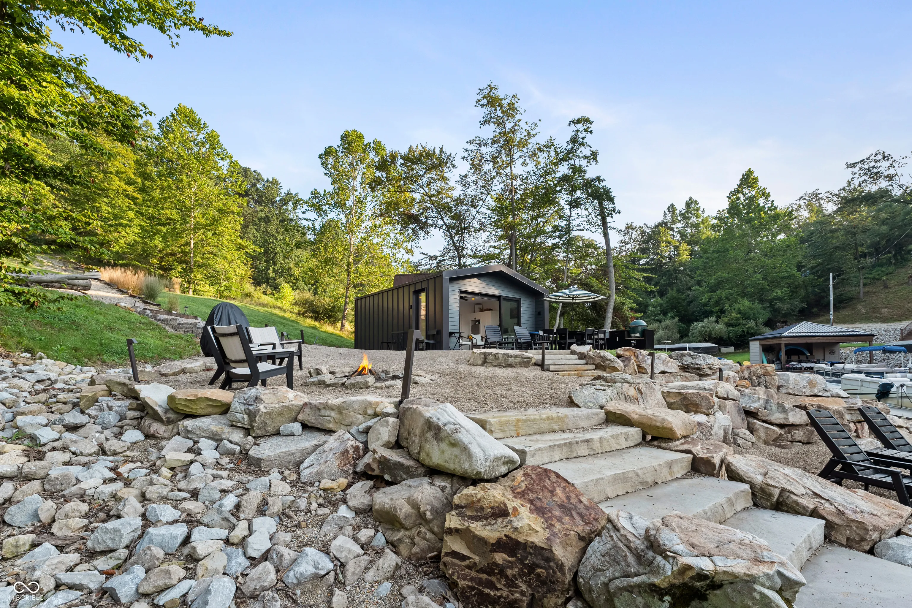 Want a great weekend lake getaway? Look no further. This custom-built boathouse is just under 500 sq. ft., has Hardie board and standing seam exterior, but is packed with all you need to enjoy lake life. Featuring a custom kitchen with refrigerator, sink, plenty of storage, full bath, small living room area, A/C, tankless water heater, California doors that open up to patio/lake area. Large patio area offers an outdoor Trex kitchen area with cabinets, sink, storage, and a flat top griddle. A few steps down is a large fire pit to enjoy in the evening by the water. Down from there is a custom Trex dock with 95 ft of shoreline. The cove offers deep water for swimming and has quick access to the main body of the lake. Driveway down offers parking areas and also a future building site that is cleared and all utilities on site. Don’t miss this chance to enjoy Grandview Lake and all it has to offer.
