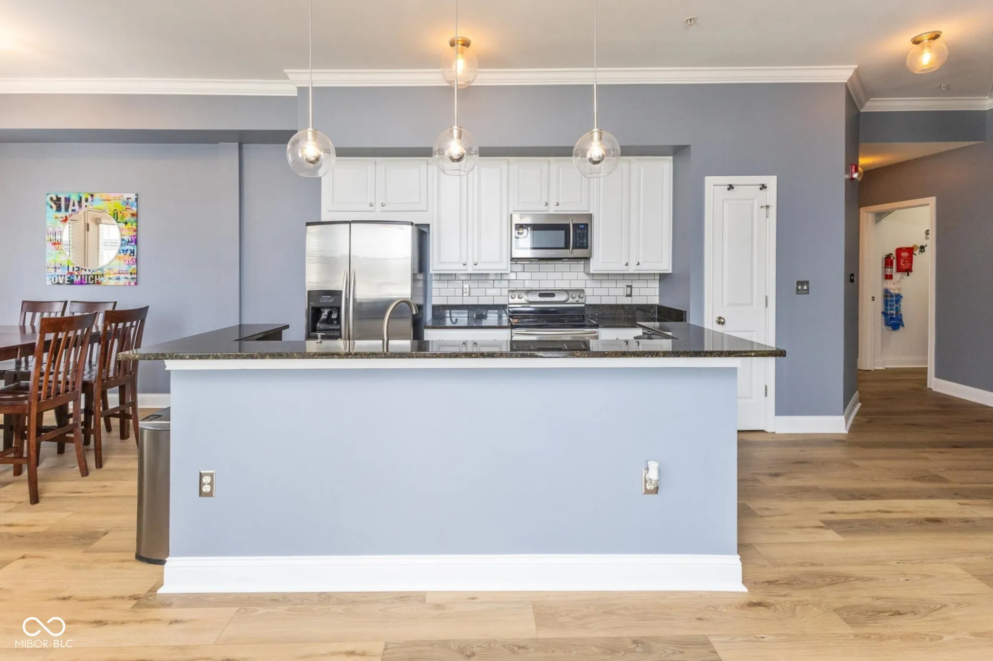 Rare corner unit in the heart of downtown! This 1BR/1.5BA condo features an open layout with high ceilings, windows on two sides, and brand-new flooring (August 2025). Enjoy a spacious living area with gas fireplace, private balcony, and a primary suite with jetted tub and walk-in closet. Deeded garage parking with EV charger included. Secure building with intercom/access control. Low HOA covers water and gas for fireplace. Steps to Whole Foods, Mass Ave, and Monument Circle-plus new city dog parks across the street, and OrangeTheory just around the corner. Prime location, effortless lifestyle. Home Warranty!