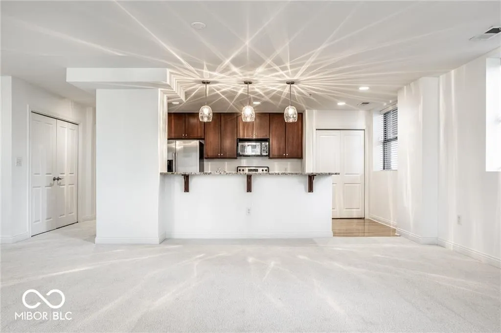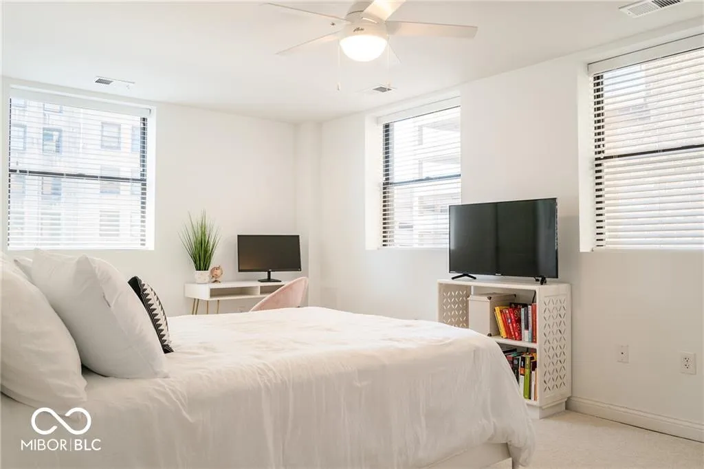 Welcome to one of Downtown Indy’s most desirable and iconic addresses – The IAC. This historical building boasts stunning architecture and offers a range of amenities not found in other downtown condo developments. These include a fitness center, basketball court, virtual golf, squash and racquetball courts, a conference center, a community lounge complete with a kitchenette, and a rooftop with views over the heart of Indy. This fabulous and very quiet 2BR/2BA condo unit is flooded with natural light and features an open-concept living space. The kitchen is complete with granite counters, stainless steel appliances, and a breakfast bar that flows into the spacious living and dining room. The primary bedroom features two closets – a walk-in and a standard – and an ensuite bathroom with a full shower and double vanity. This is a 12 month lease. Owner pays for water and electric, Renter responsible for WiFi/Cable. No smoking allowed. 2 parking spaces available – one in a garage and one on a surface lot. Storage unit is also available for use. Renters are permitted to have up to two pet dogs or cats. All dogs living in the IAC Lofts must be registered with the Management Company. Renter shall pay a moving fee in the amount of $250 for moves both in and out of the building