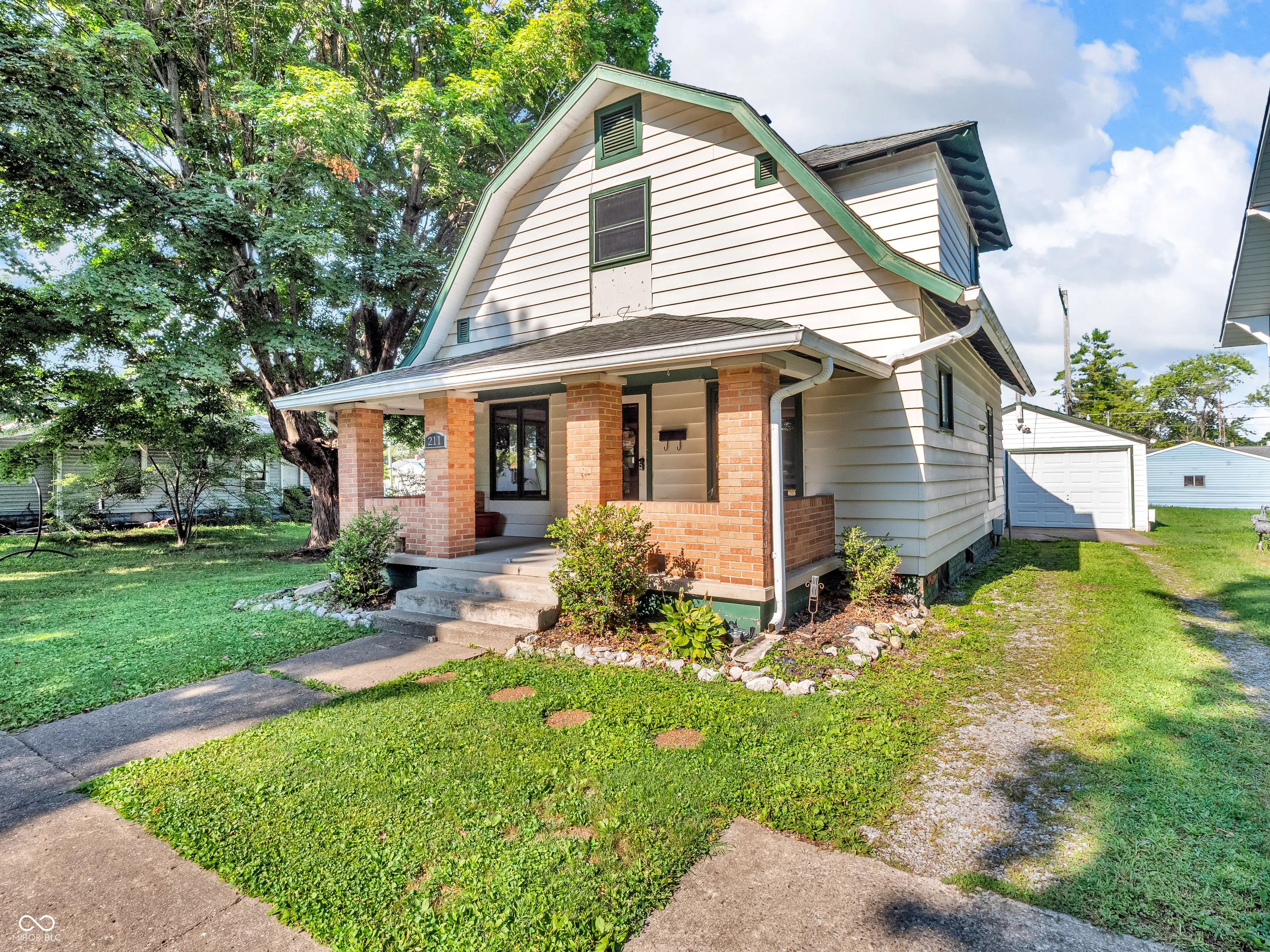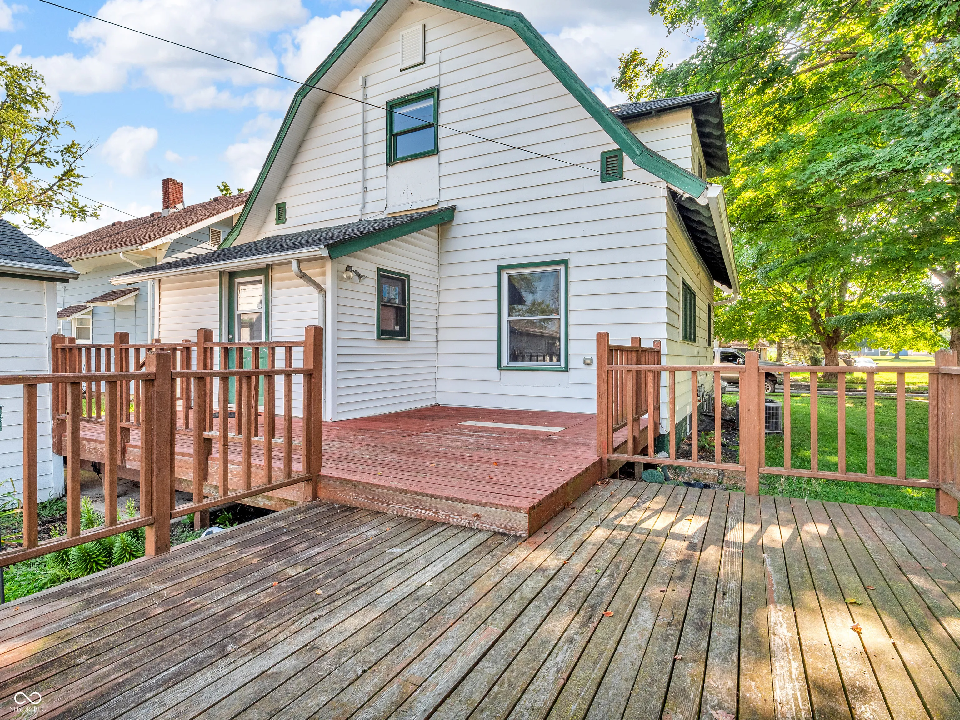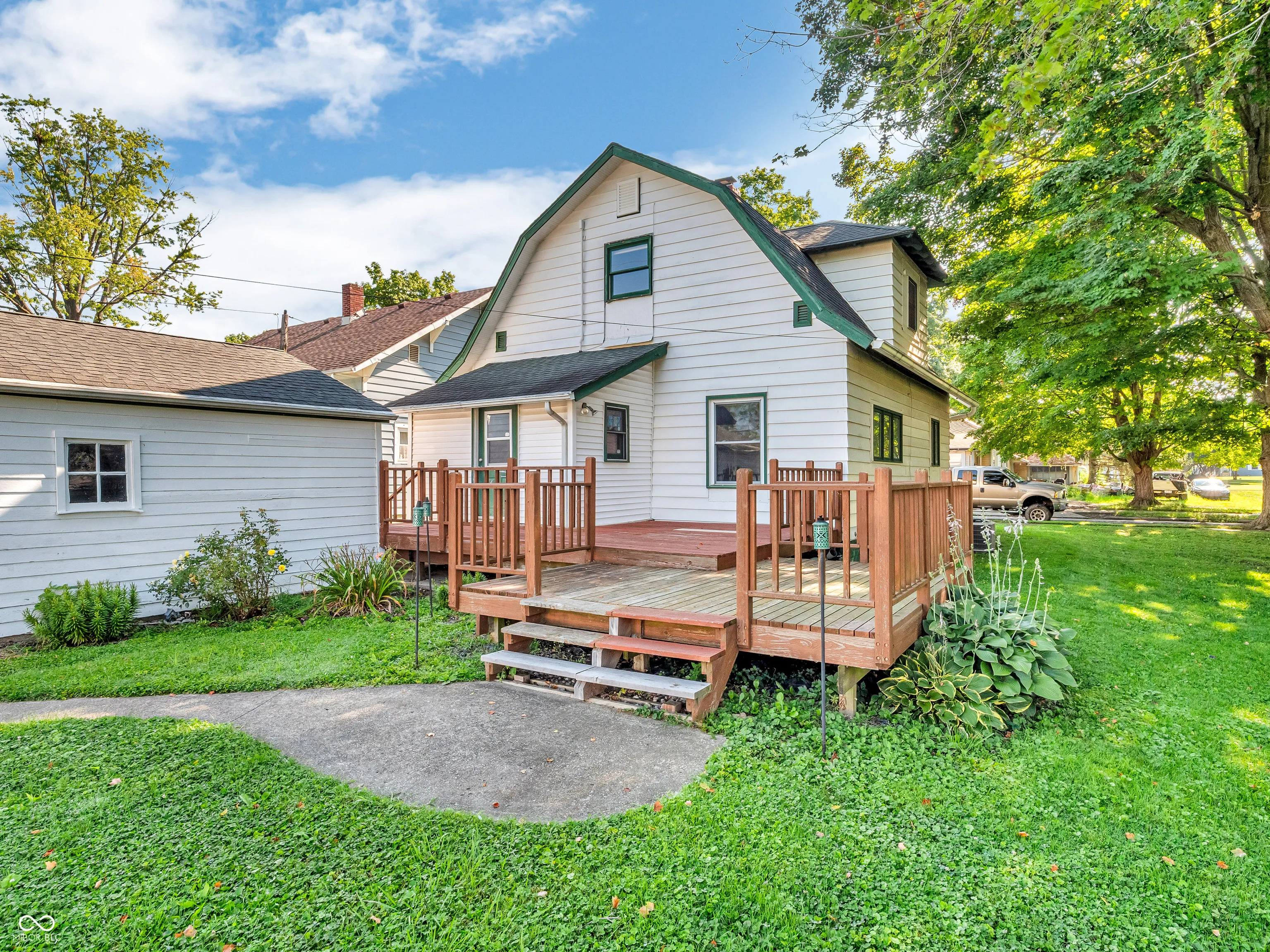 Nestled at 211 Dunn AVE, this inviting home stands ready to welcome you. The kitchen, a culinary dream, features shaker cabinets and a stylish backsplash that complement the stainless-steel refrigerator, year old dishwasher, and a breakfast bar creates a perfect space for meal preparation. New central air and furnace in 2022. Water softener new in 2023. In the upstairs bathroom, a double vanity offers both convenience and a touch of elegance. Beyond the interior, a porch offers a charming space to enjoy the outdoors, and a multi-level deck provides a perfect spot for relaxation. The property further benefits from a large 1 car garage & shed, offering practical storage solutions. 1560 square feet of living space. This residence, offering 2 bedrooms and 1 full and 1 half bathrooms, is a charming blend of the past and the present.