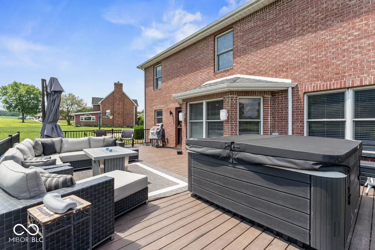 Custom all-brick home on a generous lot (.86 acres) in the Shenandoah School District. With 2,852 sq. ft. on the main & upper levels plus a finished basement, this home offers plenty of room for family, guests, and home-based work. You begin by greeting your family & guests at the front door with sidelights and a transom window for some added sunshine. Inside, the home office features 15lite French doors & picture framed trimmed walls. The family/hearth room offers a neutral color, a gas fireplace and a wonderful place for entertaining. A spacious dining area opens to the kitchen, where continuous flooring flows throughout the lower & upper levels. The kitchen includes a Gas double-range oven, refrigerator, dishwasher, abundant cabinetry, a tile backsplash that rises to the ceiling behind the range hood, and granite countertops. A flexible front room can serve as a reading room or a living room. The large primary bedroom offers ample floor space and multiple windows; the en-suite includes dual sinks, a full shower, freestanding tub, and separate water closet and clothes closet. Other bedrooms have roomy closets and wood-toned floors. Your laundry room is located on the mail level. The finished basement provides space for a workout area, home theater area & half bath. Outside, your TREX deck with lush landscaping that surrounds it; creates a calm, private retreat space to unwind from your day and enjoy your very own hot tub! A 2 car attached garage makes this home complete. All appliances stay; Water Softener is rented. Hot tub & playset convey with the home.