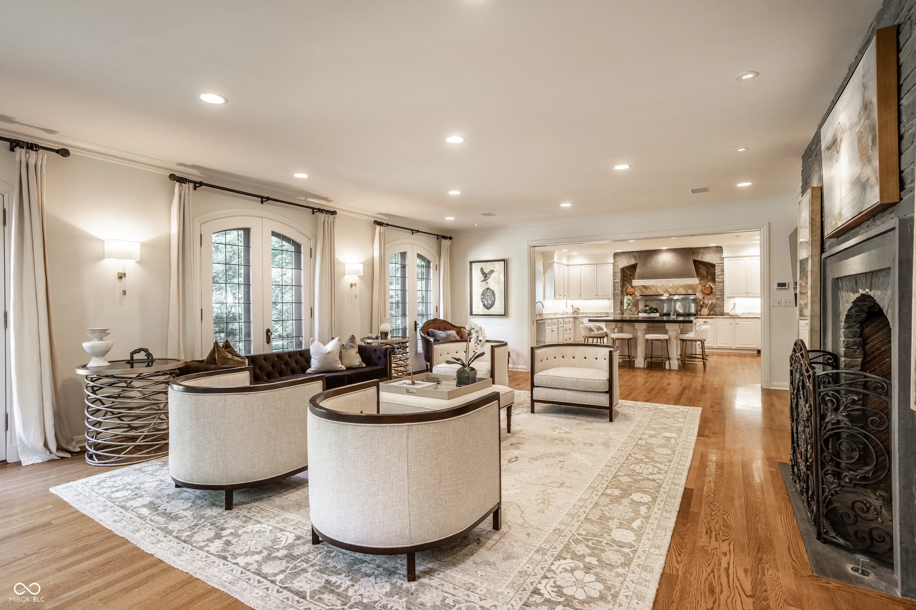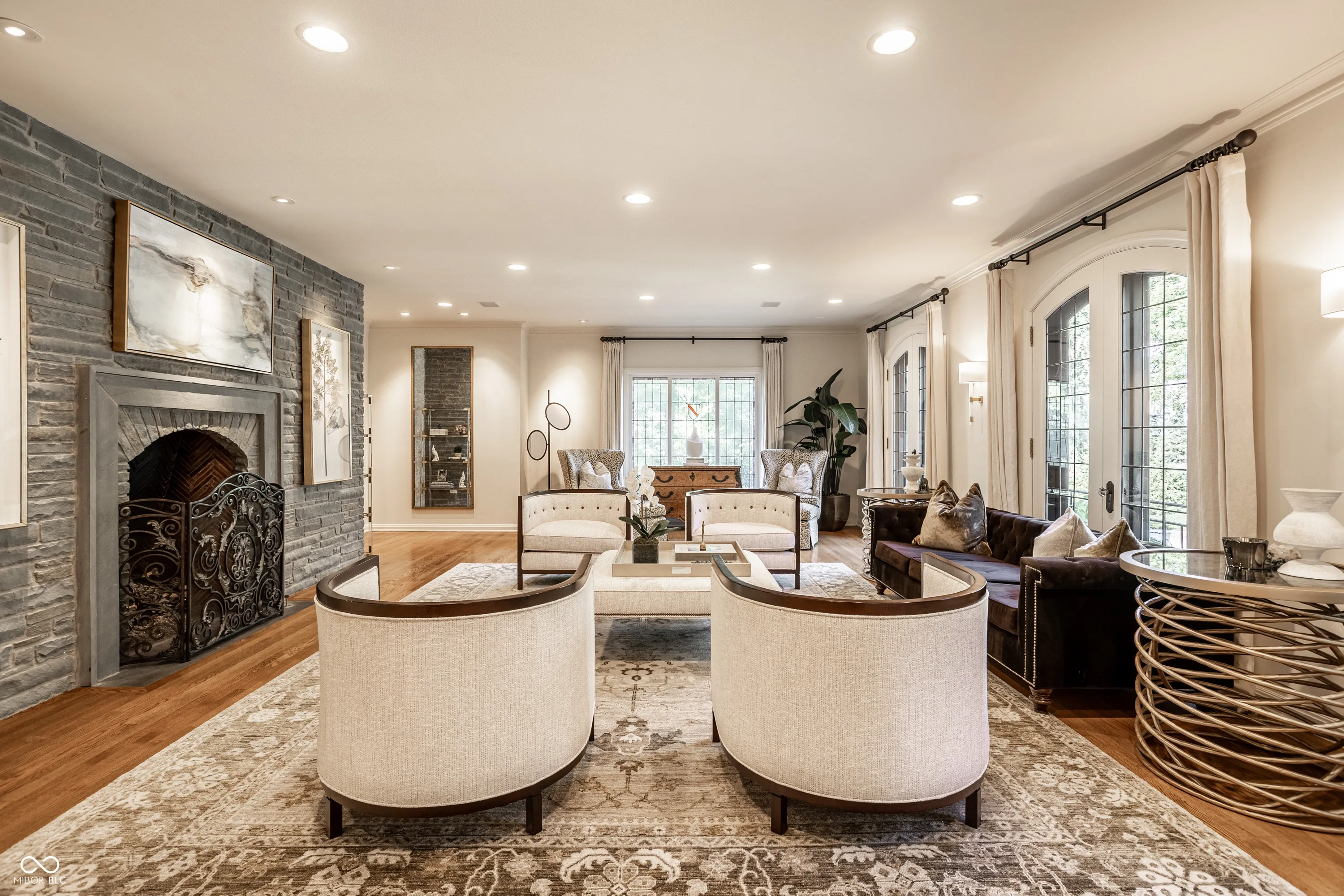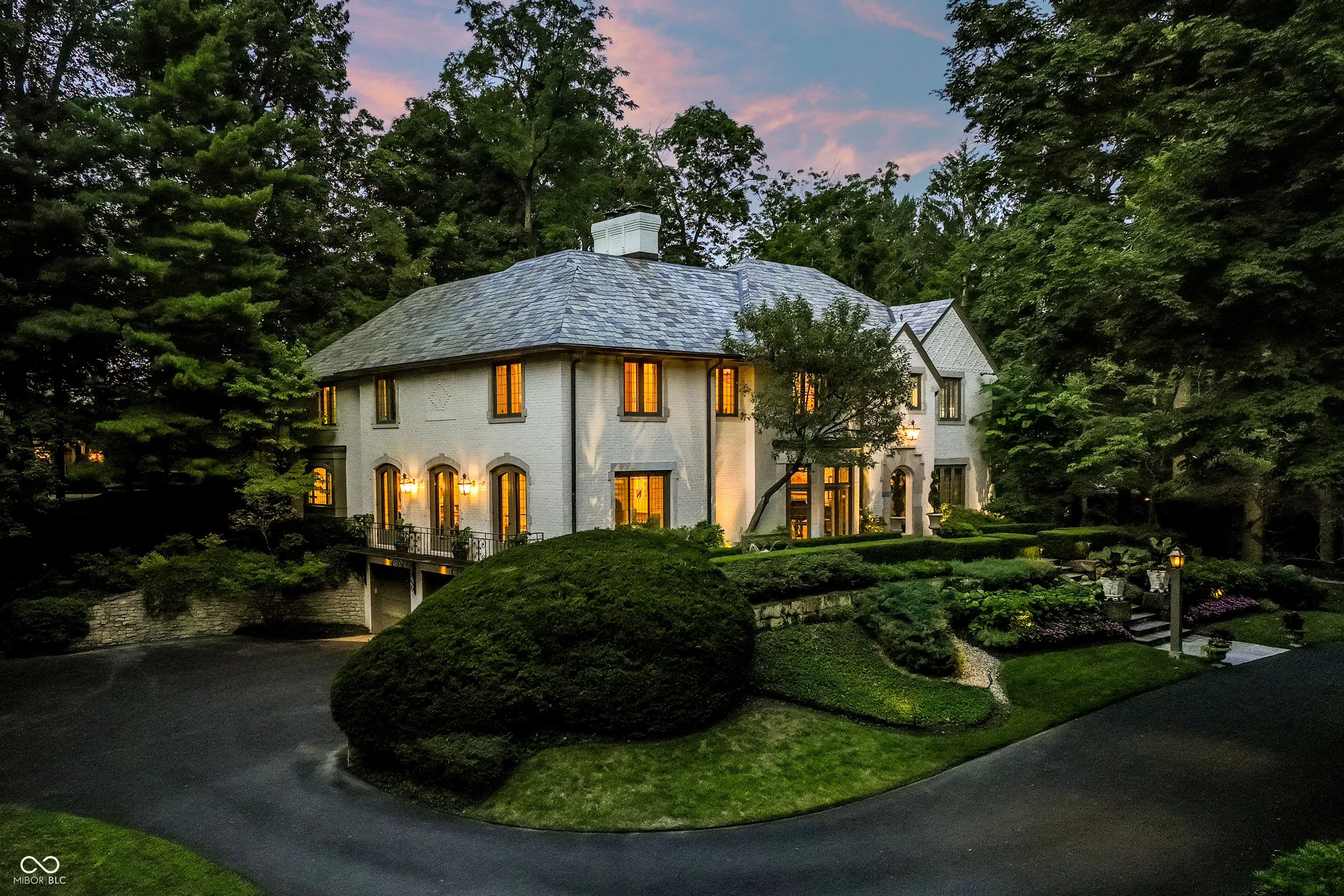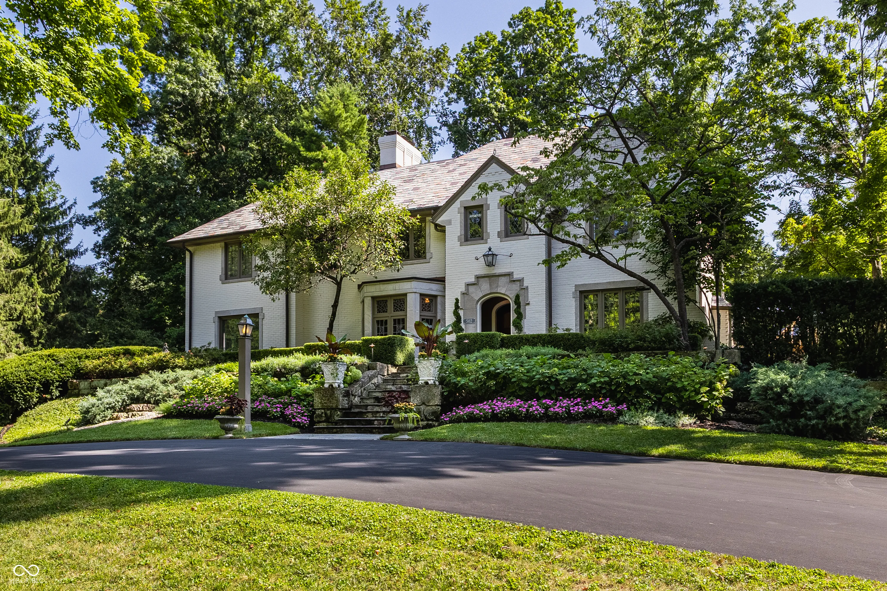 Elevated on a lush 1.10-acre stunning corner lot in the Town of Williams Creek, this neighborhood favorite 1934 classic is beautifully reimagined for modern living. Located in one of Indianapolis’s most desirable neighborhoods, Williams Creek offers a rare blend of historic charm, mature trees, and quiet streets. The home blends historic character including original hardwoods, leaded glass windows, and Tudor-arched doorways with refined, designer-driven updates. The layout features plenty of room to entertain or relax, including a stylish great room which opens to the chef’s kitchen with Wolf & Sub-Zero appliances, separate formal living and dining room, a cozy den with marble cabinetry and smart shades. The home has two flexible office spaces & four spacious en-suite bedrooms including a serene primary suite with spa-like bathroom with walk-in tiled shower, huge dual walk-in closets. The lower level offers a cozy theater room with a gas fireplace, entertaining kitchen, and dedicated gym. Outdoors, a fully transformed and tranquil retreat includes a complete outdoor kitchen with Alfresco grill, covered lounge with fireplace and mounted TV, bar seating, covered hot tub with private dressing room, meandering creek-like water feature, and Indiana limestone hardscaping. Updated mechanicals including HVAC, smart systems, and commercial-grade Wi-Fi make this home truly turnkey. This rare opportunity in a prime Indianapolis location will not last long!
