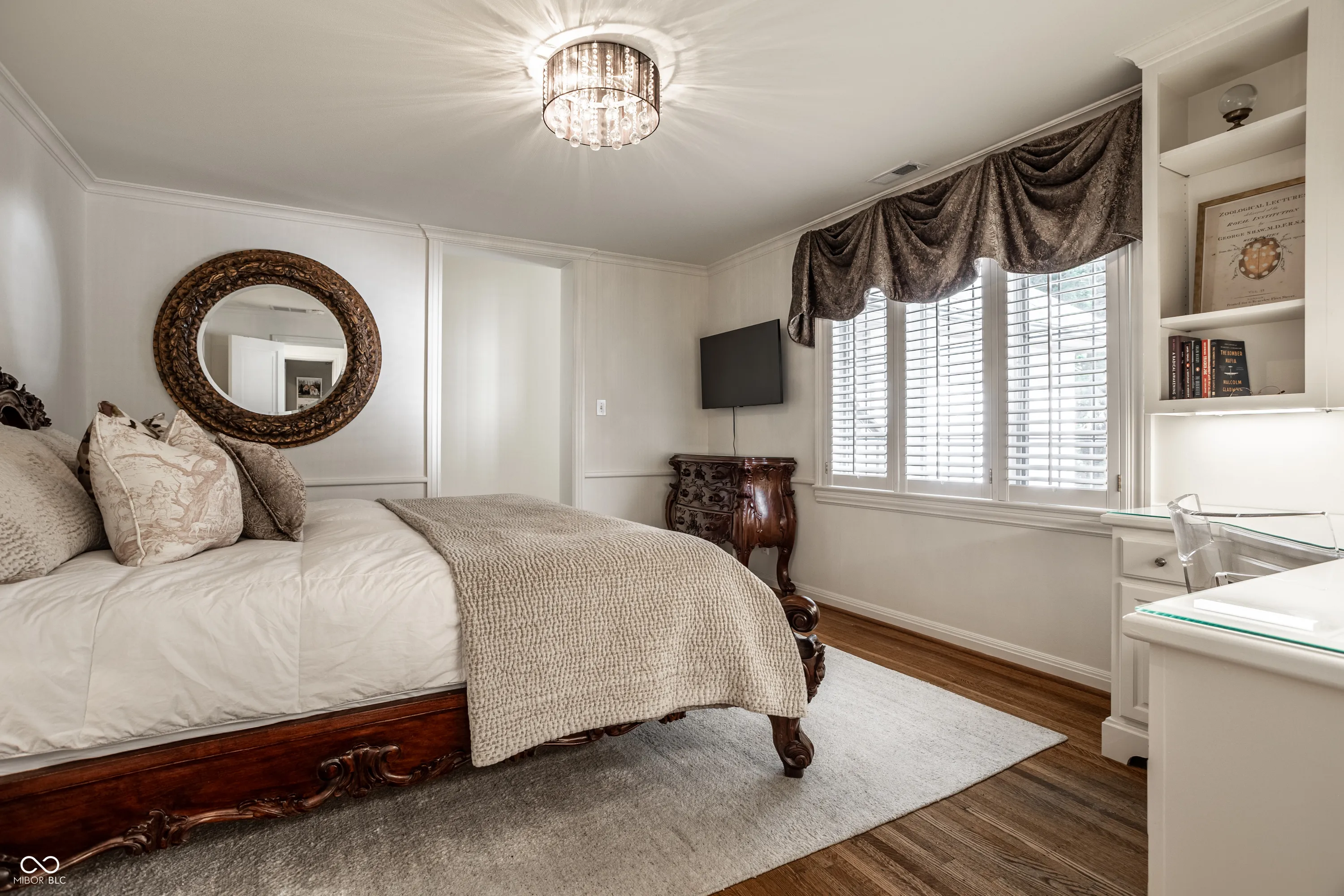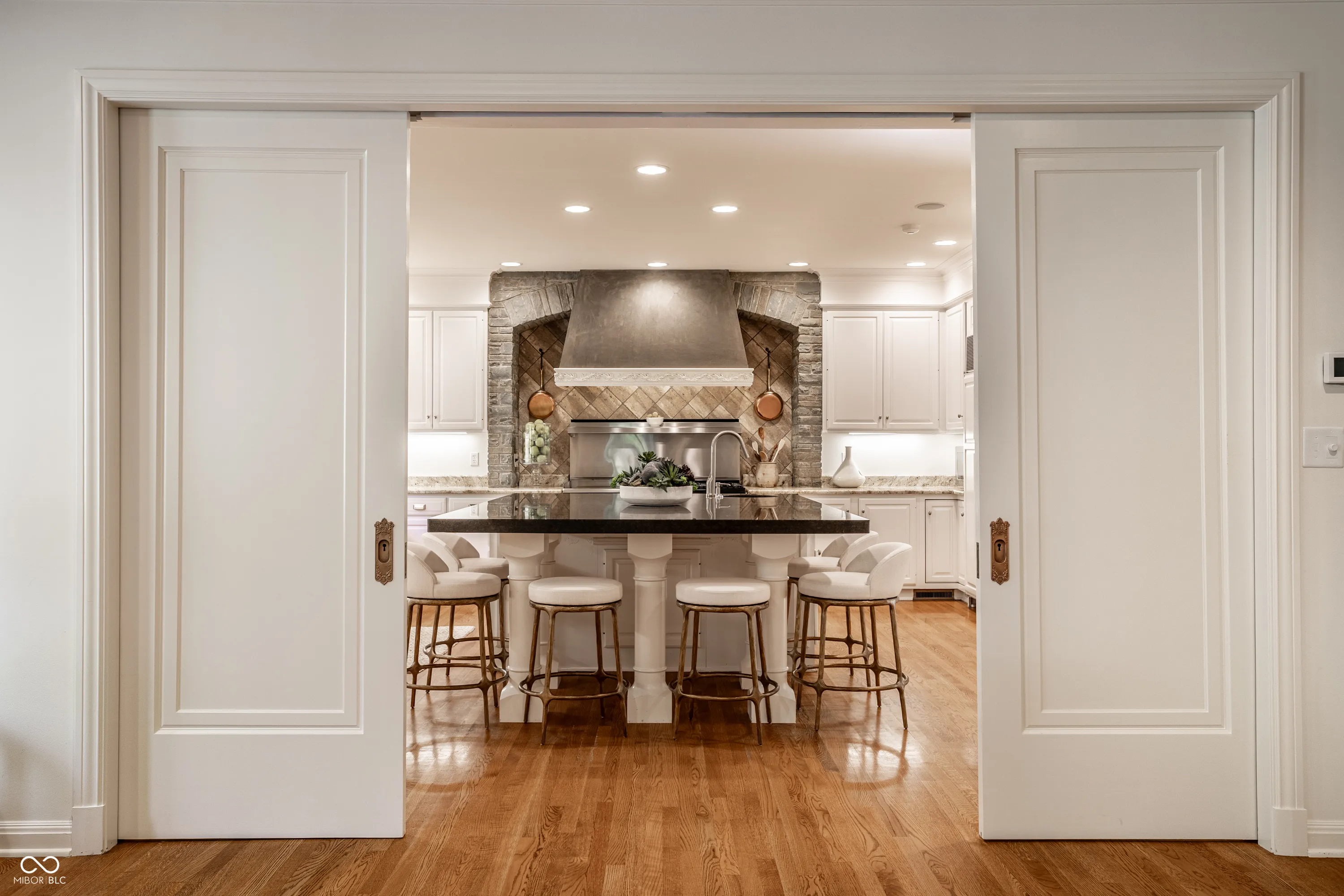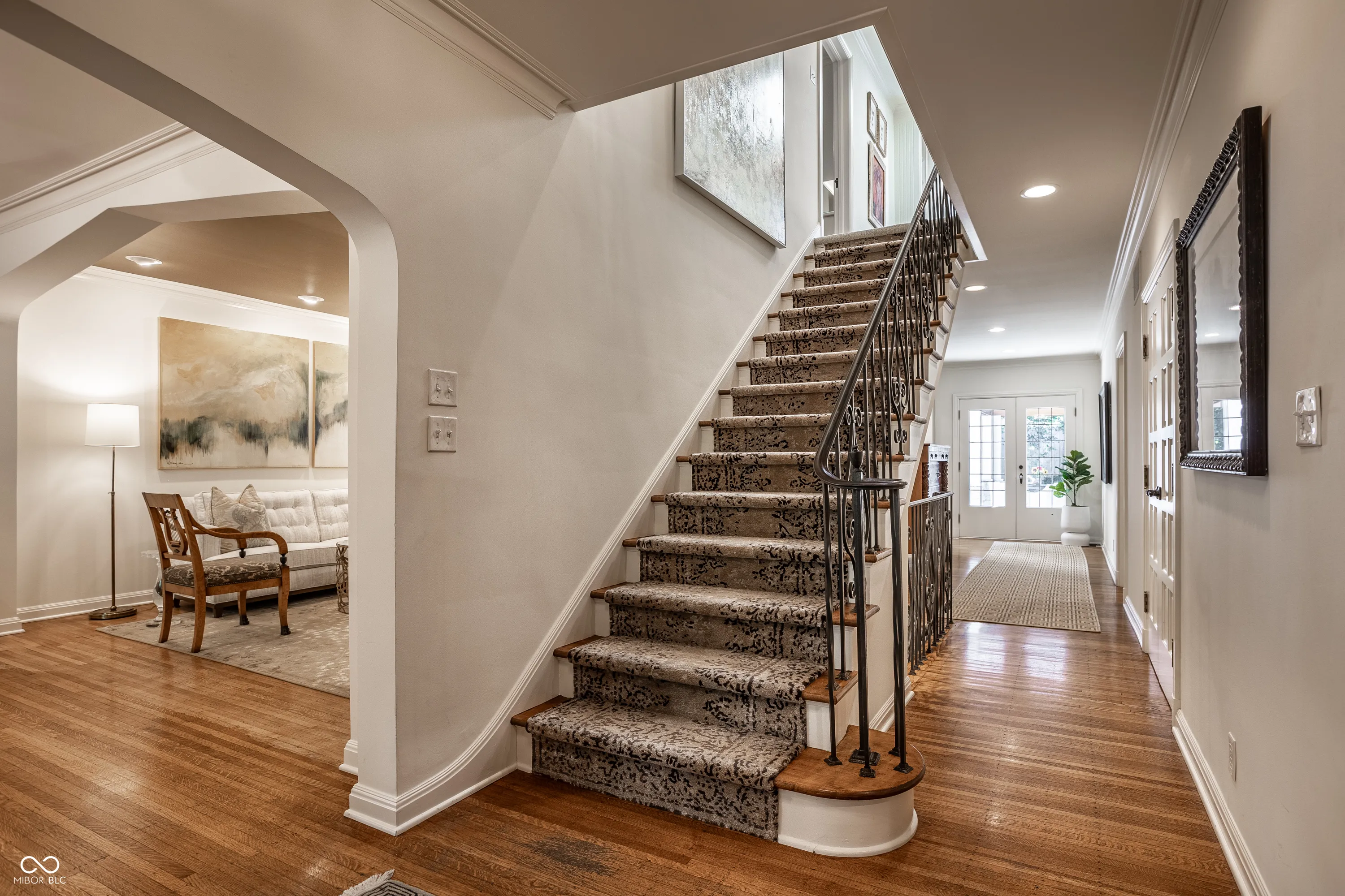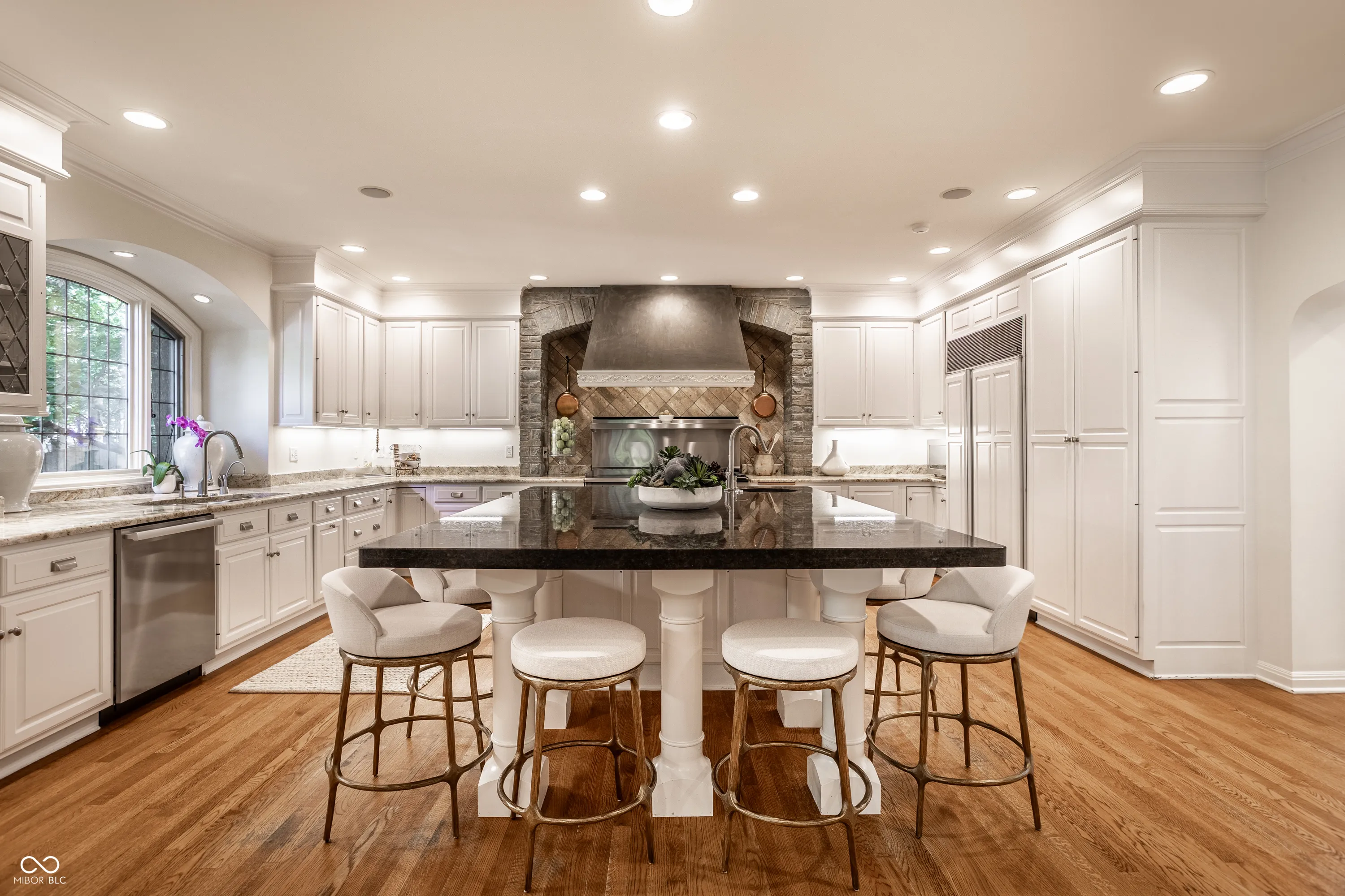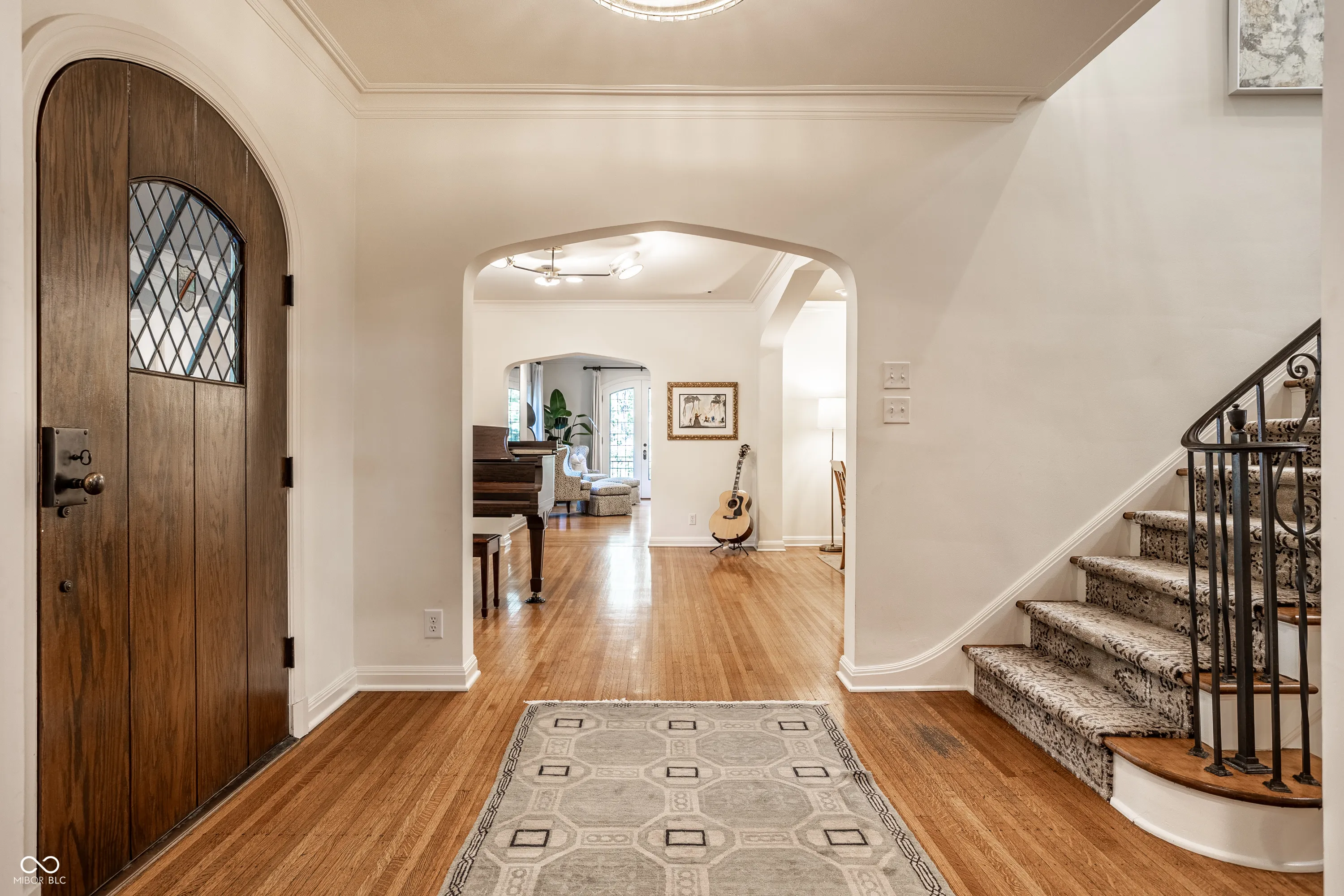Elevated on a lush 1.10-acre stunning corner lot in the Town of Williams Creek, this neighborhood favorite 1934 classic is beautifully reimagined for modern living. Located in one of Indianapolis’s most desirable neighborhoods, Williams Creek offers a rare blend of historic charm, mature trees, and quiet streets. The home blends historic character including original hardwoods, leaded glass windows, and Tudor-arched doorways with refined, designer-driven updates. The layout features plenty of room to entertain or relax, including a stylish great room which opens to the chef’s kitchen with Wolf & Sub-Zero appliances, separate formal living and dining room, a cozy den with marble cabinetry and smart shades. The home has two flexible office spaces & four spacious en-suite bedrooms including a serene primary suite with spa-like bathroom with walk-in tiled shower, huge dual walk-in closets. The lower level offers a cozy theater room with a gas fireplace, entertaining kitchen, and dedicated gym. Outdoors, a fully transformed and tranquil retreat includes a complete outdoor kitchen with Alfresco grill, covered lounge with fireplace and mounted TV, bar seating, covered hot tub with private dressing room, meandering creek-like water feature, and Indiana limestone hardscaping. Updated mechanicals including HVAC, smart systems, and commercial-grade Wi-Fi make this home truly turnkey. This rare opportunity in a prime Indianapolis location will not last long!