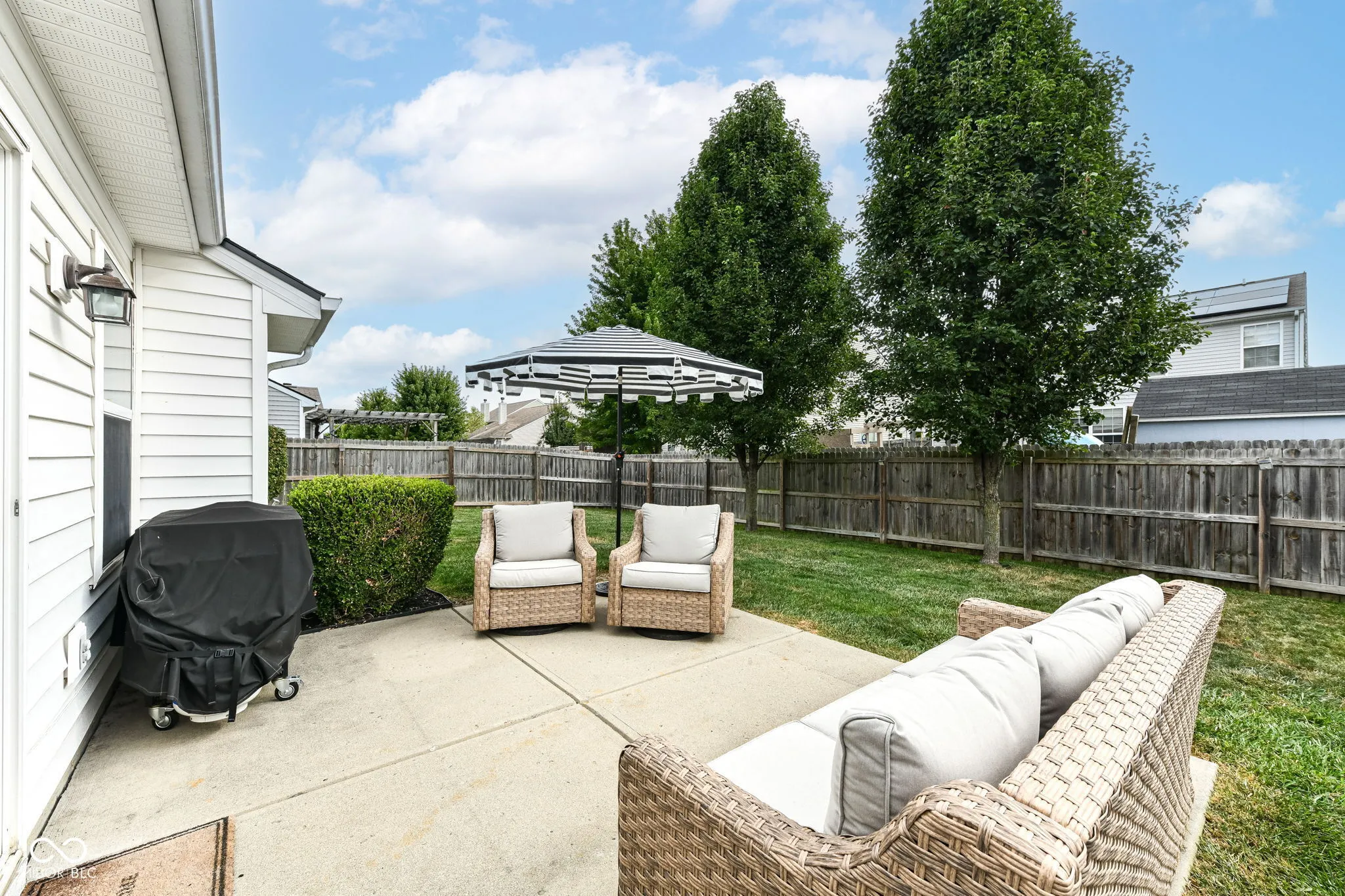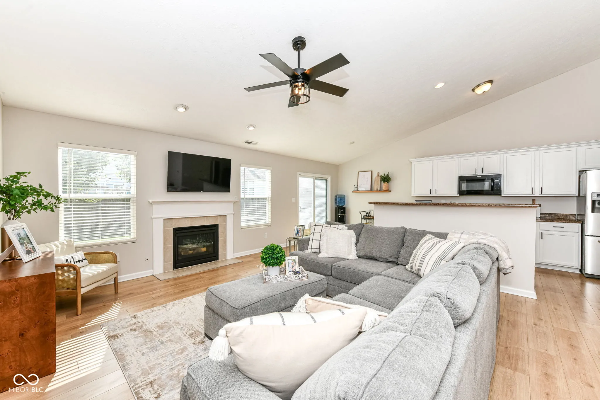Meticulously maintained 3 bedroom 2 bath home with an amazing location. Living room is a welcoming space, featuring a gas log fireplace that promises cozy evenings and a vaulted ceiling that enhances the sense of spaciousness. Kitchen showcasing white cabinetry that offers ample storage and a touch of timeless elegance. Kitchen overhang is perfect for meal preparation or casual dining. Formal dining area offers an additional eating and entertaining space. The primary bedroom is a private retreat with its ensuite bathroom, creating a personal oasis for relaxation. Updated bathroom is complete with a double vanity, soaker tub and walk in shower. Secondary bedrooms are well sized, neatly decorated and offer great storage. The property includes an open floor plan, over sized laundry room, and fenced backyard, each contributing to a comfortable and convenient lifestyle. The outdoor living space and patio invite you to enjoy the fresh air and sunshine, extending your living area. Recent updates include ( 2023 ) Roof, Water Heater, Water Softener, Kitchen and Bathroom Cabinets Painted, Upgraded interior/ exterior Lighting & Landscaping. ( 2024) Interior Paint, Guest Vanity, Lighting and Mirrors, New Laminate. (2025 ) – HVAC system update