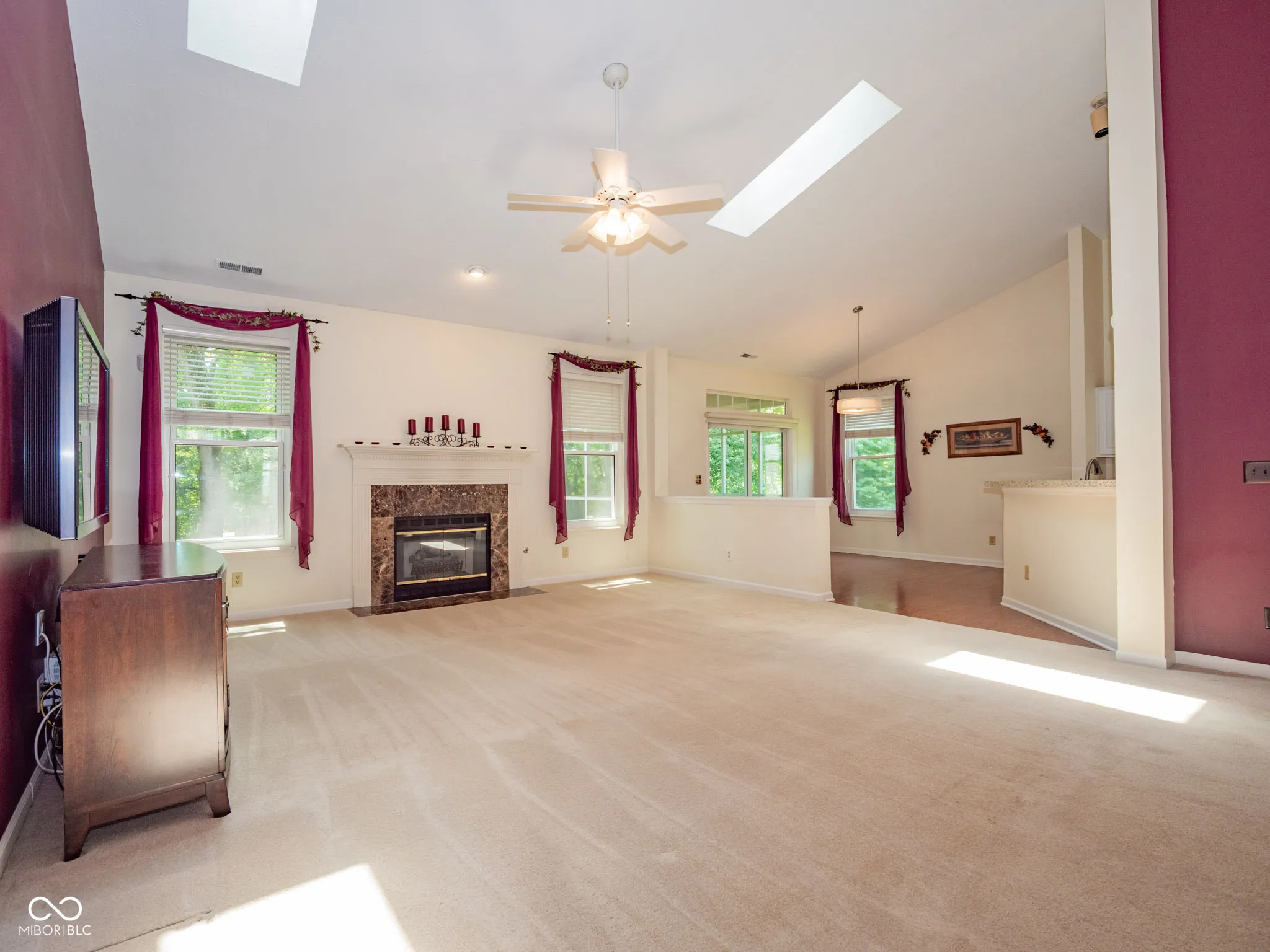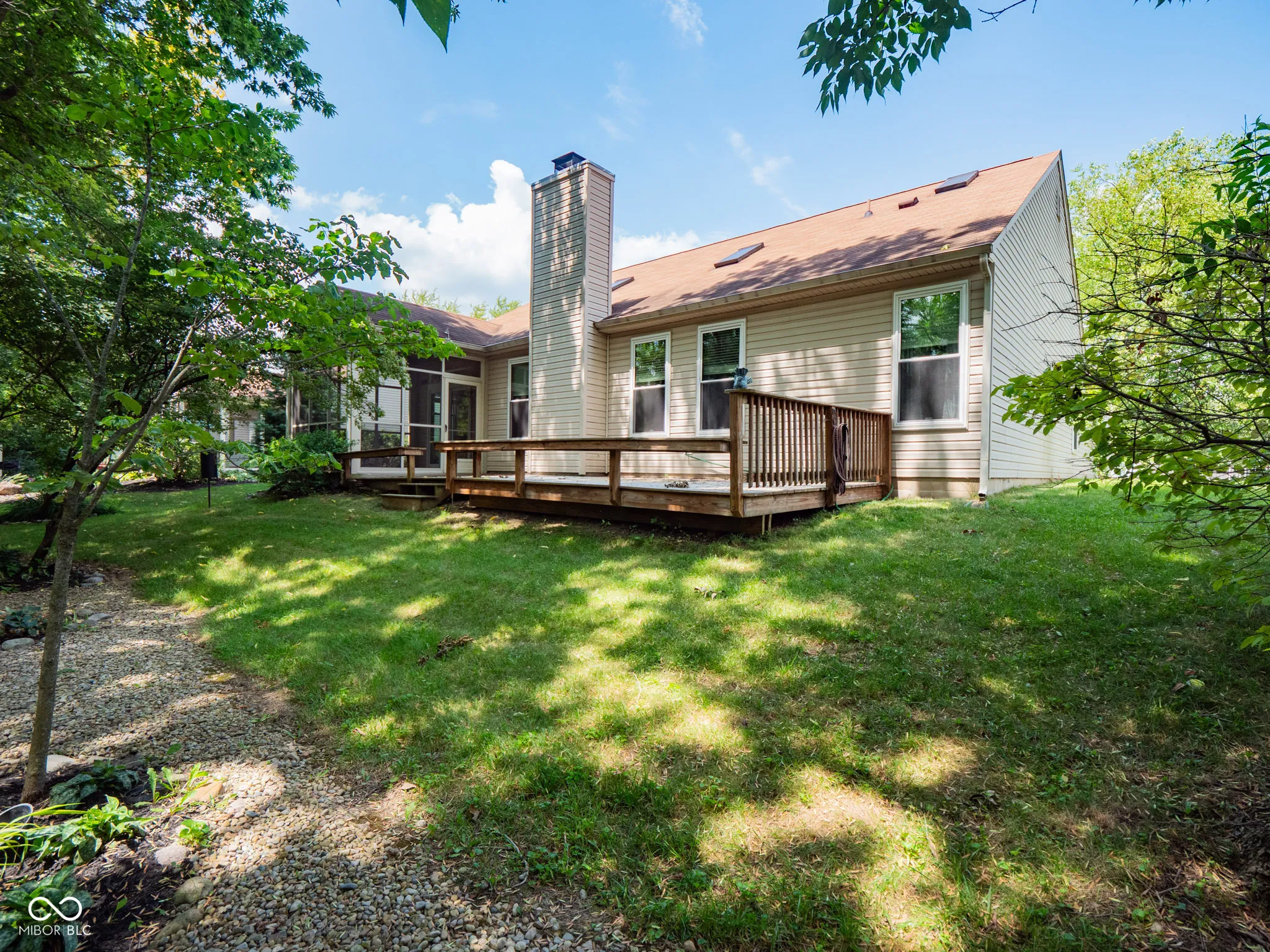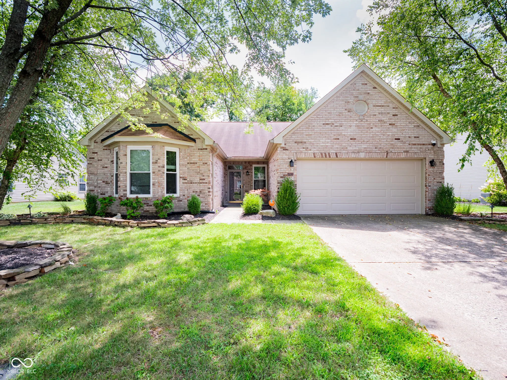Welcome to this lovely 3Bd/2Ba/1,890 Sq Ft Ranch Home located only 1.5 miles from Geist Reservoir! So many special touches & updates inside & out including professionally landscaped flowerbeds with an incredible park-like, private backyard that backs up to a woods with creek & walking trails. Indoors you’ll enjoy the open concept floorplan with soaring ceilings & decorative shelves. A large & welcoming front entry opens to the formal dining room and flows into the spacious great room featuring cathedral ceilings w/two skylights & a marble, gas fireplace. Off the GR is the eat-in Breakfast Rm w/sliding glass doors leading to the deck & backyard. The kitchen features a breakfast bar, solid surface countertops, professionally refinished cabinet doors & new appliances – all stay! The primary bedroom features cathedral ceilings & an attached en suite with yet another sky light & huge walk-in closet. You’ll love spending time in the sunroom complete with tile flooring & incredible views. UPDATES INCLUDE: New water softener & timer for landscaping lighting (2025); New garage door, refrigerator, microwave, GE washer & dryer, & mailbox w/post, (2024); Newer tankless water heater, A/C furnace w/ humidifier, gutters, & GE range w/dbl ovens. Additional updates include recently sealed back deck (2020) and attic insulated (2017). Neighborhood includes a community pool & many walking trails. Great location close to Geist Lake, restaurants, grocery stores, downtown McCordsville & Fortville & only a short drive to SR36 & I465/I70.