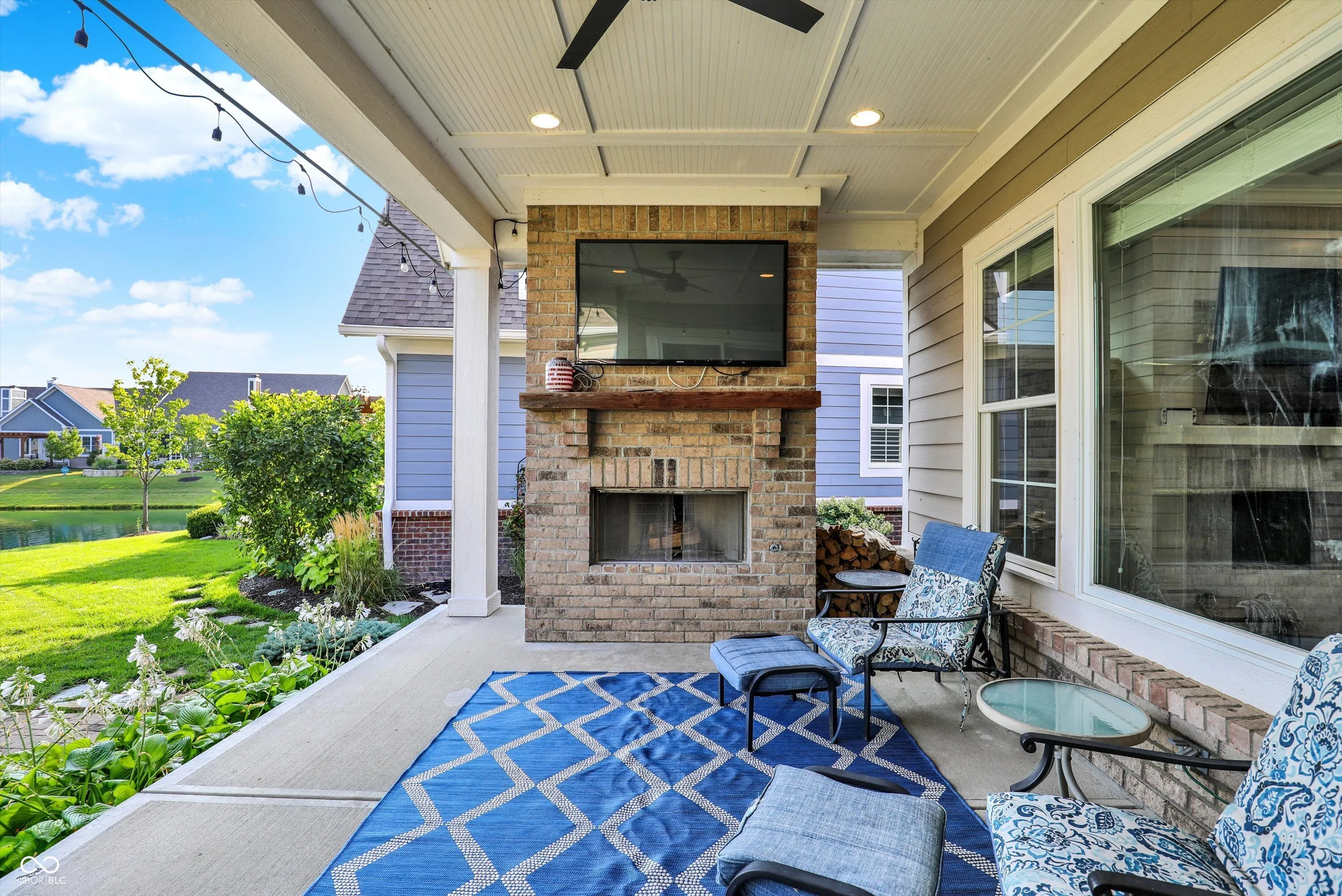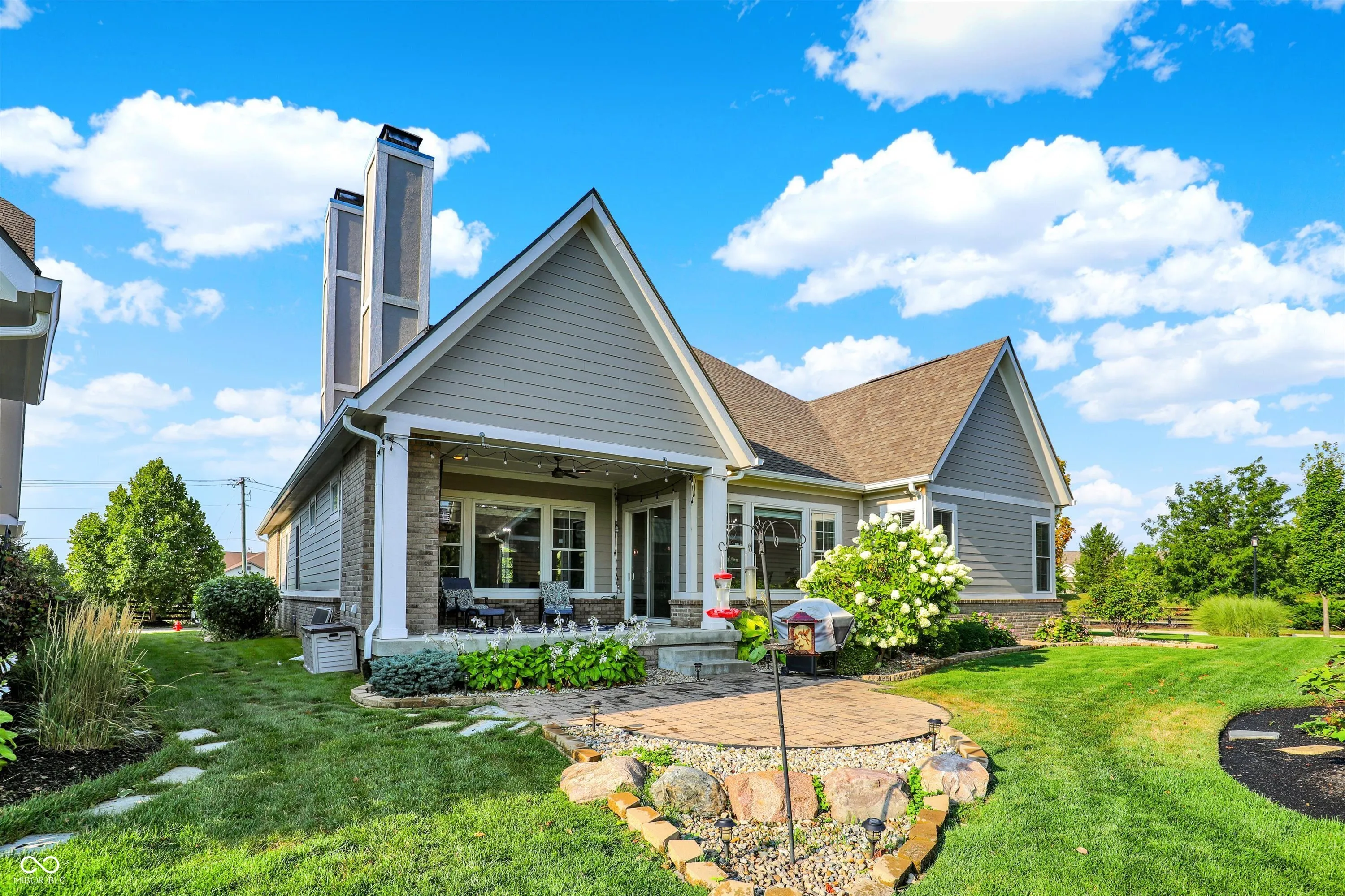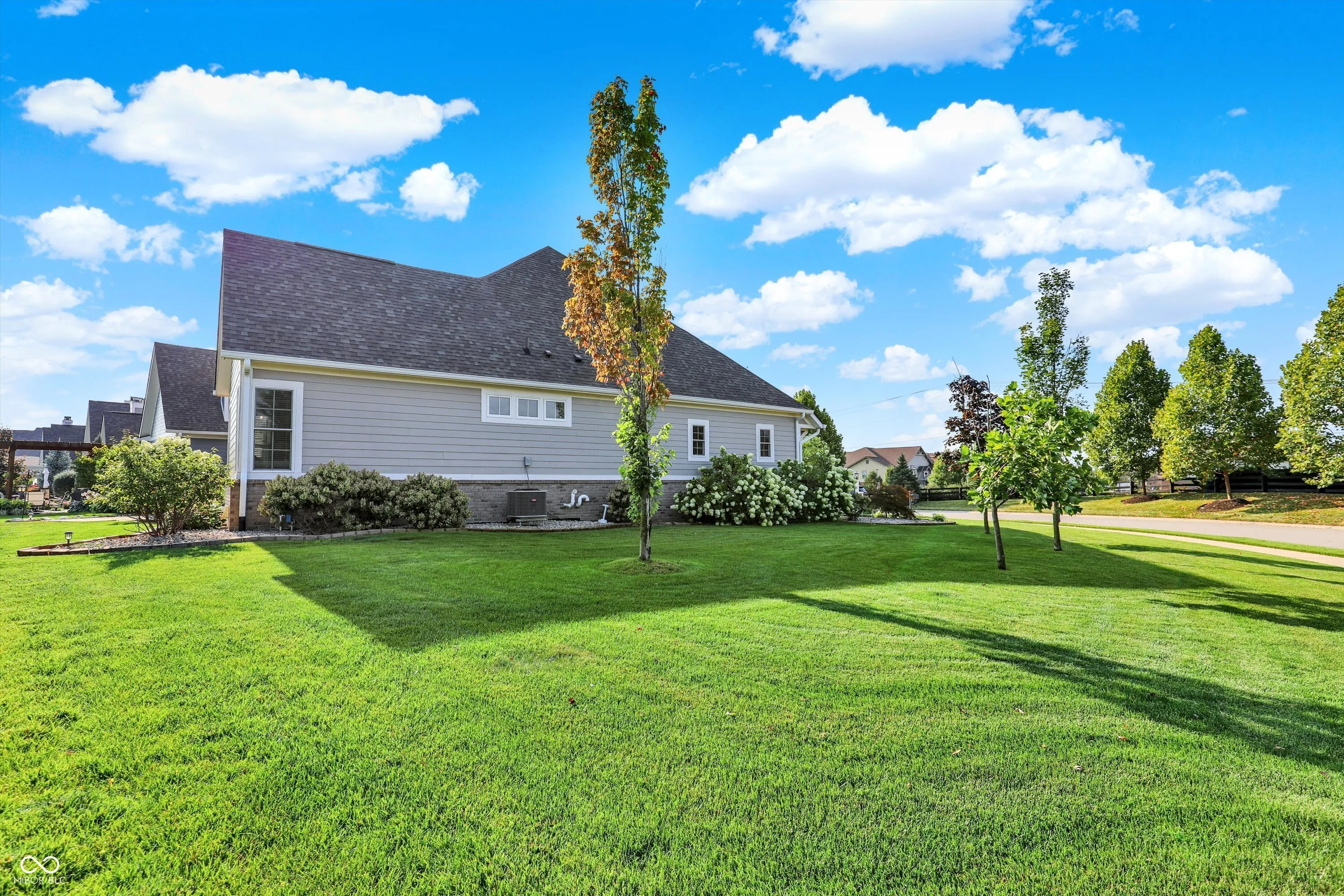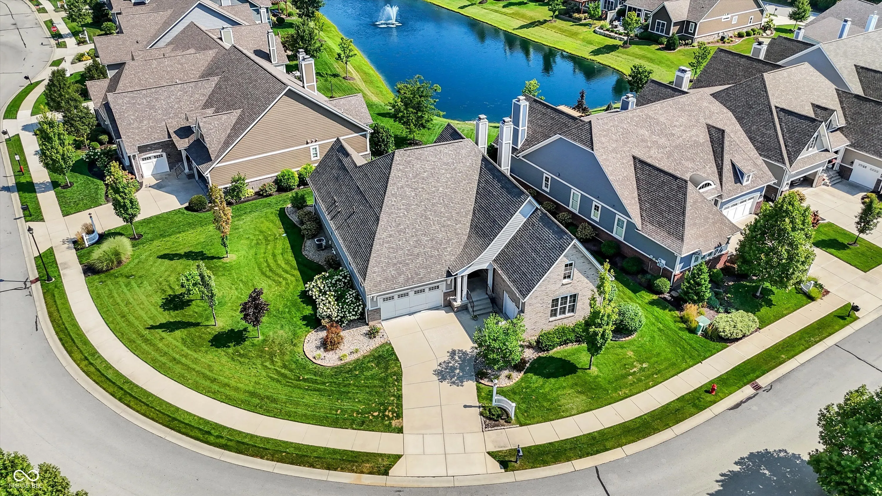 Experience luxury living in this stunning ranch-style home by Wedgewood Custom Builders, ideally situated in the prestigious Bridgewater Club. Boasting nearly 4,000 sq. ft. of finely crafted space, this home offers water views from the family room and dining area, creating a serene backdrop for everyday living. The open-concept layout showcases hardwood floors, raised ceilings, and a gourmet kitchen with a center island, breakfast bar, walk-in pantry, and built-in oven. The primary bedroom is conveniently located on the main floor, offering a spa-like ensuite with dual sinks and a walk-in closet. The finished basement features a spacious rec/play area, home theater, full bath, and a huge 27×15 space ready to be transformed into a 5th bedroom, gym, or game room. Notable upgrades include a whole-home tankless water heater, back-up sump pump, and an irrigation system. Relax on the covered patio with a gas fireplace, mounted TV, and peaceful pond views, perfect for morning coffee or evening gatherings. A 3rd car garage is ideal for your golf cart or hobby vehicle. Home has hookup for electric vehicle. Enjoy world-class amenities including golf, tennis, pool, clubhouse, fitness center, and walking trails. Located in the highly rated Westfield-Washington school district and minutes from shopping, dining, and major highways, this property offers unmatched comfort and convenience. Don’t miss your chance to own this exceptional home in one of Carmel’s most sought-after communities.