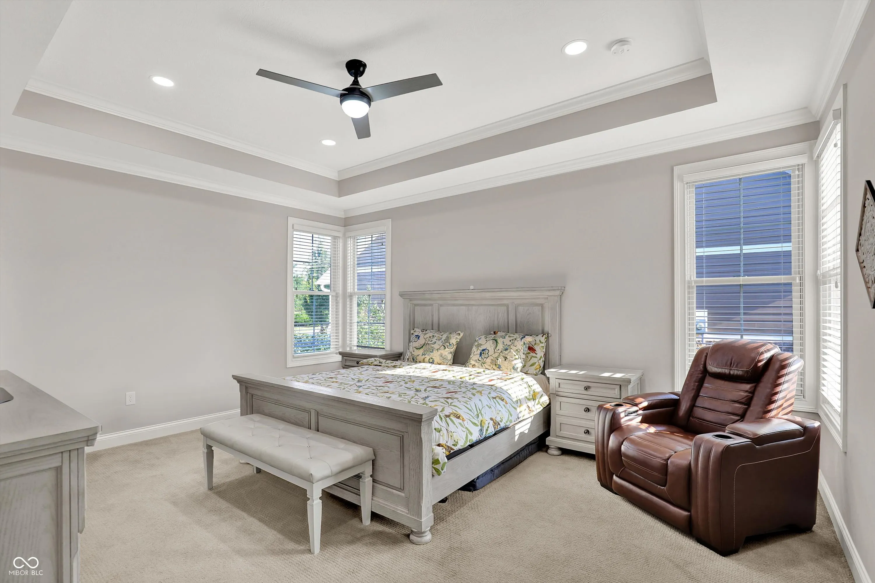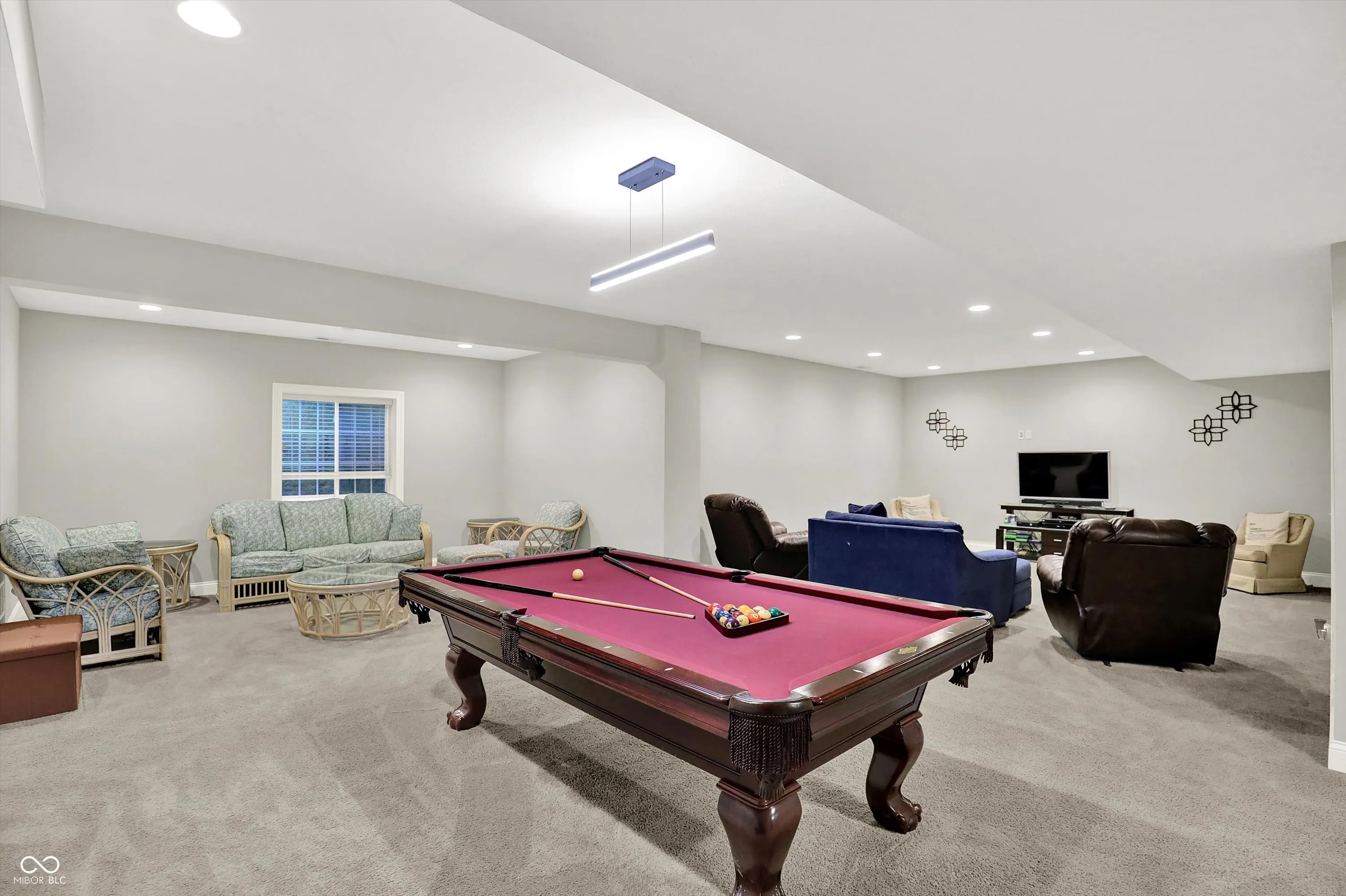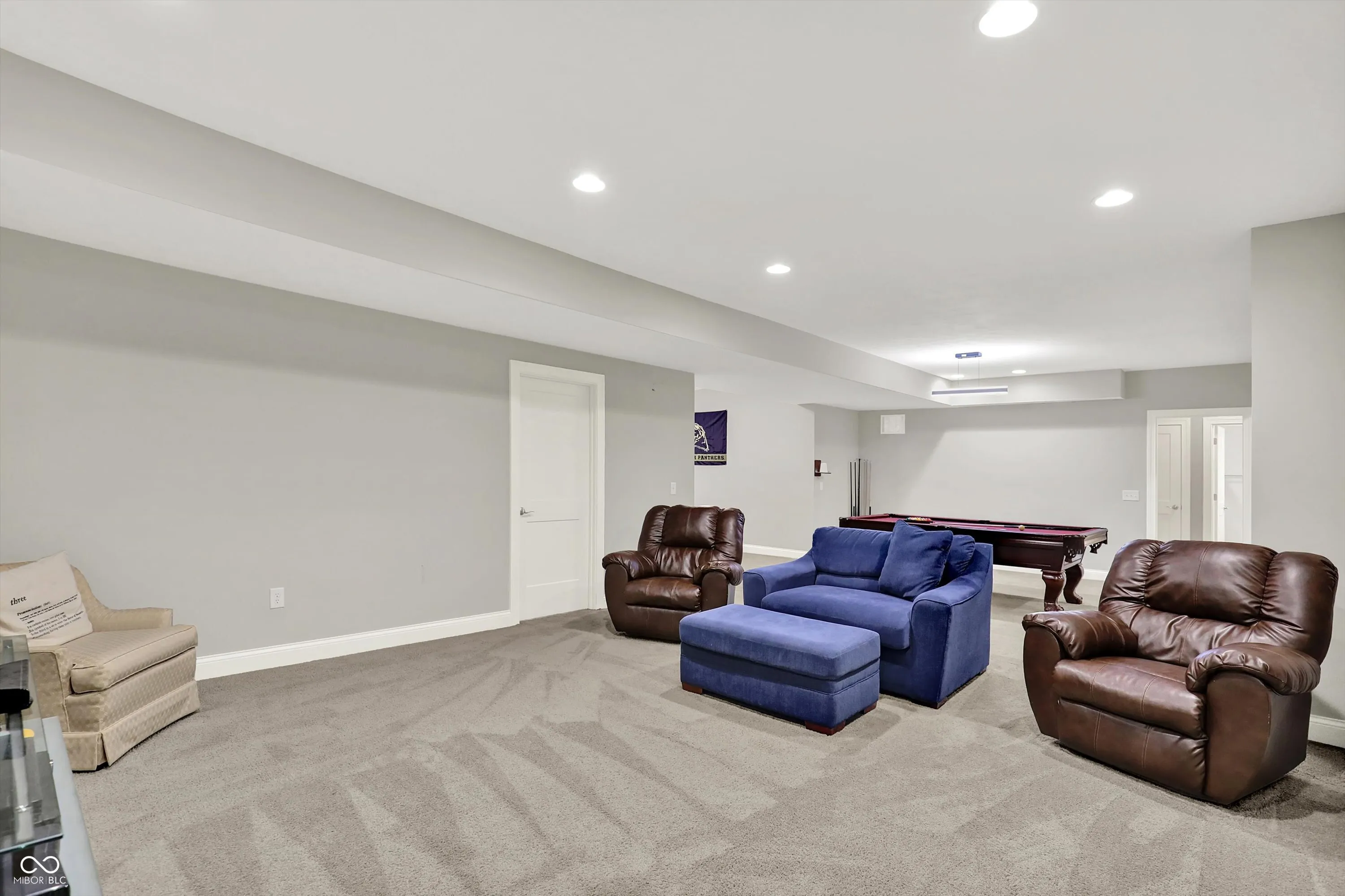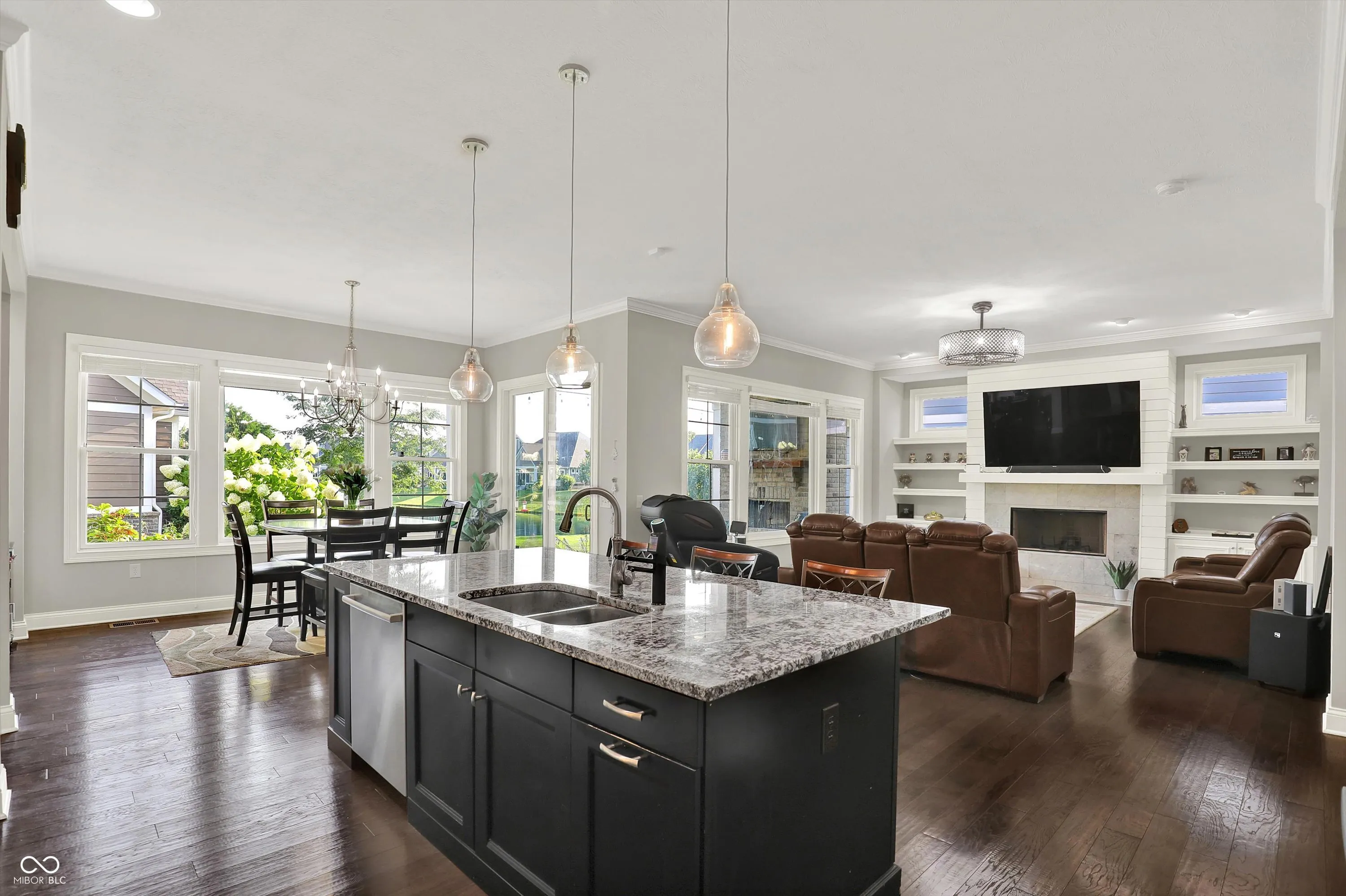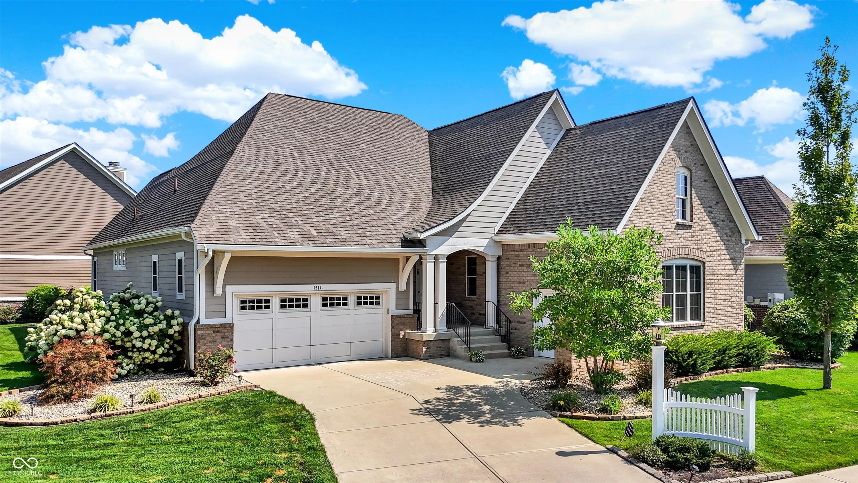 Experience luxury living in this stunning ranch-style home by Wedgewood Custom Builders, ideally situated in the prestigious Bridgewater Club. Boasting nearly 4,000 sq. ft. of finely crafted space, this home offers water views from the family room and dining area, creating a serene backdrop for everyday living. The open-concept layout showcases hardwood floors, raised ceilings, and a gourmet kitchen with a center island, breakfast bar, walk-in pantry, and built-in oven. The primary bedroom is conveniently located on the main floor, offering a spa-like ensuite with dual sinks and a walk-in closet. The finished basement features a spacious rec/play area, home theater, full bath, and a huge 27×15 space ready to be transformed into a 5th bedroom, gym, or game room. Notable upgrades include a whole-home tankless water heater, back-up sump pump, and an irrigation system. Relax on the covered patio with a gas fireplace, mounted TV, and peaceful pond views, perfect for morning coffee or evening gatherings. A 3rd car garage is ideal for your golf cart or hobby vehicle. Home has hookup for electric vehicle. Enjoy world-class amenities including golf, tennis, pool, clubhouse, fitness center, and walking trails. Located in the highly rated Westfield-Washington school district and minutes from shopping, dining, and major highways, this property offers unmatched comfort and convenience. Don’t miss your chance to own this exceptional home in one of Carmel’s most sought-after communities.